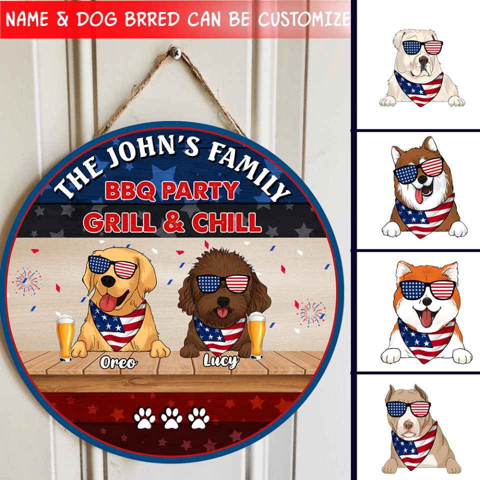 Welcome To The Family 4th Of July BBG Party Grill & Chill - Personalized Door Sign, Gift For Dog Lover