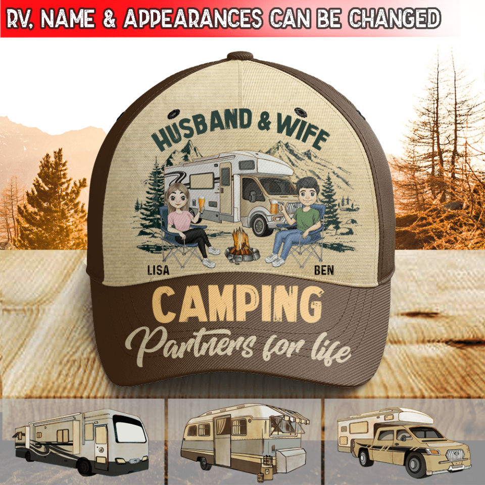 Husband & Wife Camping Partners For Life - Personalized Cap