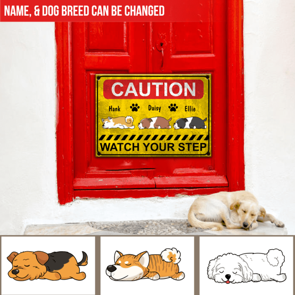 Caution! Watch Your Step Personalized Sleep Dog Metal Sign