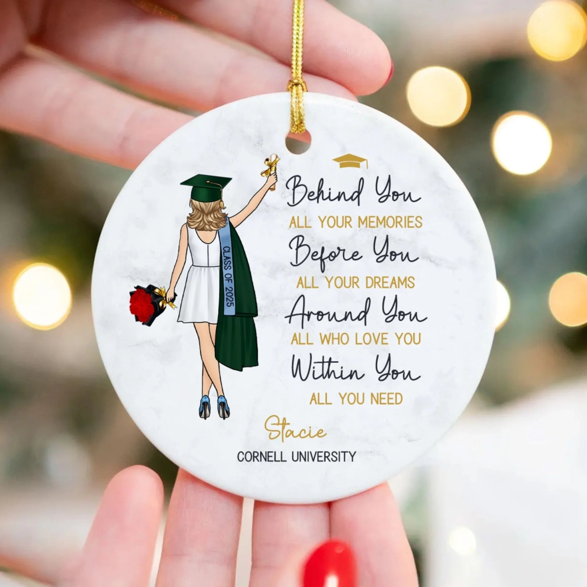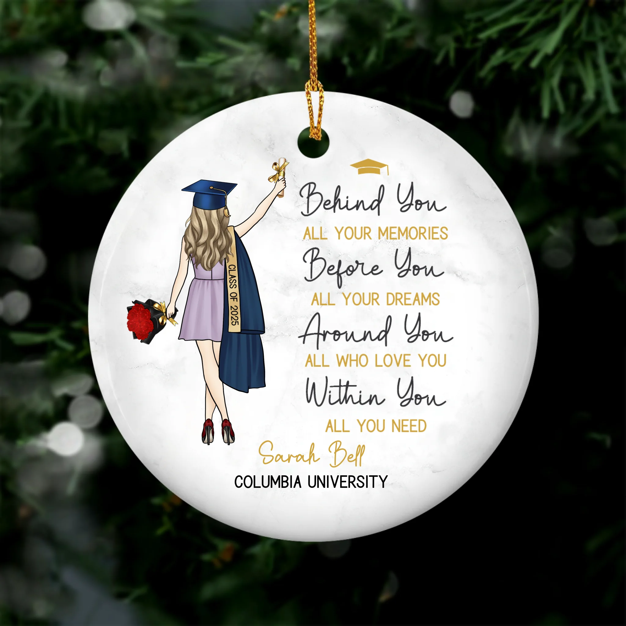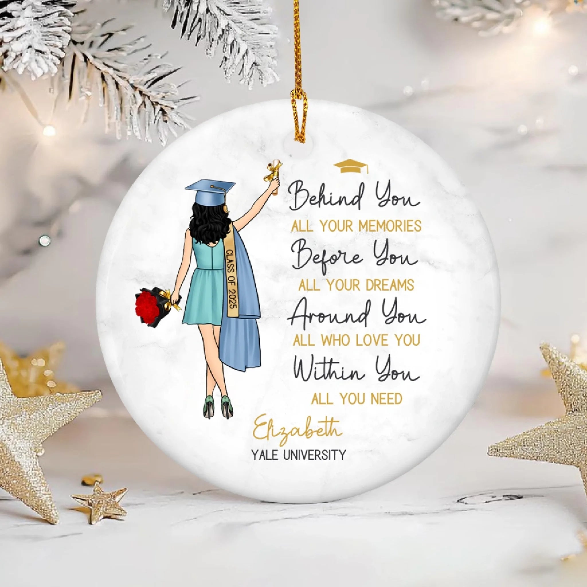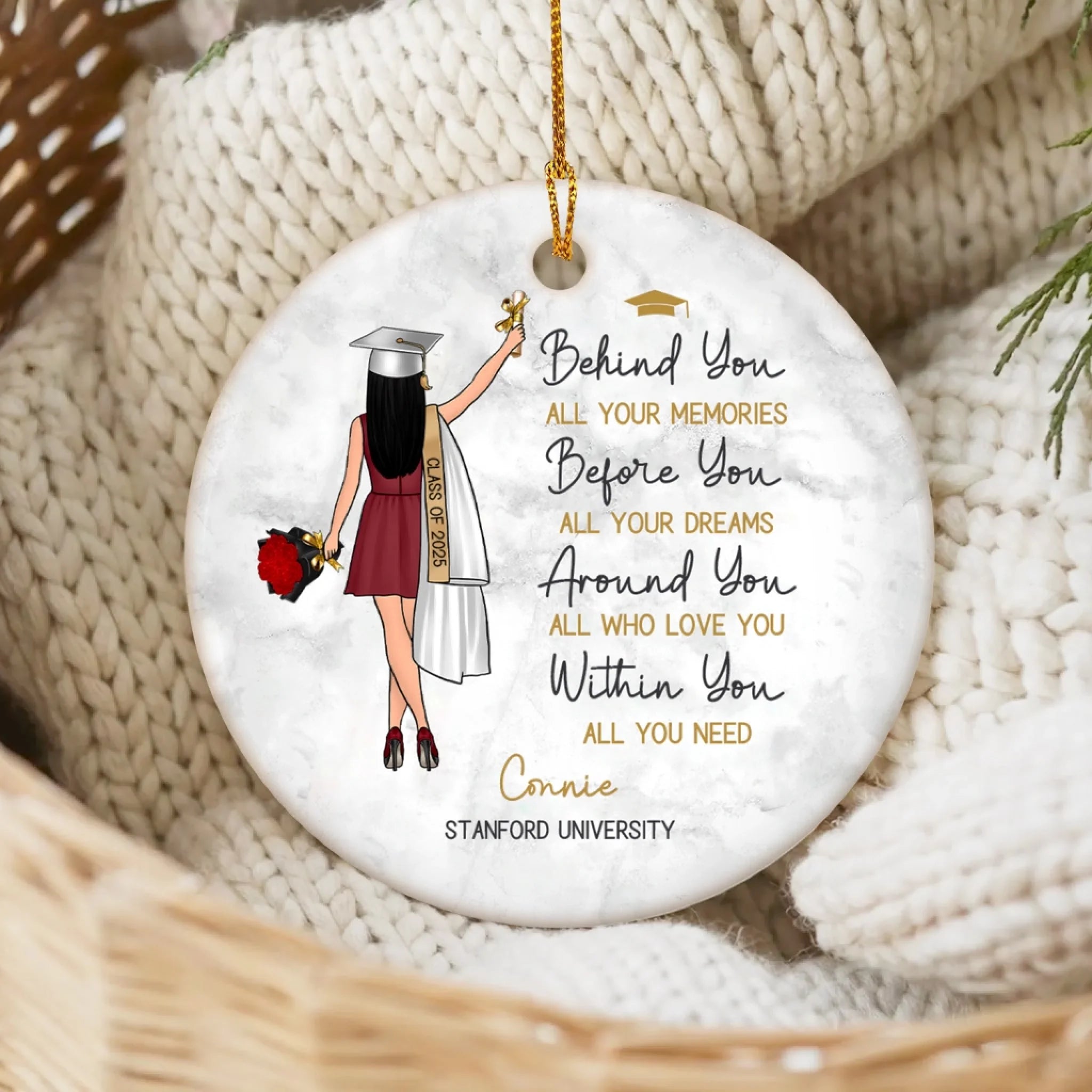 Behind You All Memories - Personalized Ceramic Ornament, Graduation Gift For Her, College, High School Graduation