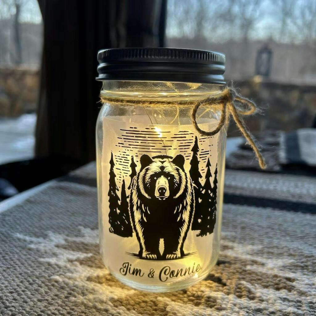 Grizzly Bear - Personalized Mason Jar Light, Gift For Camping Lovers - CF-MJL52