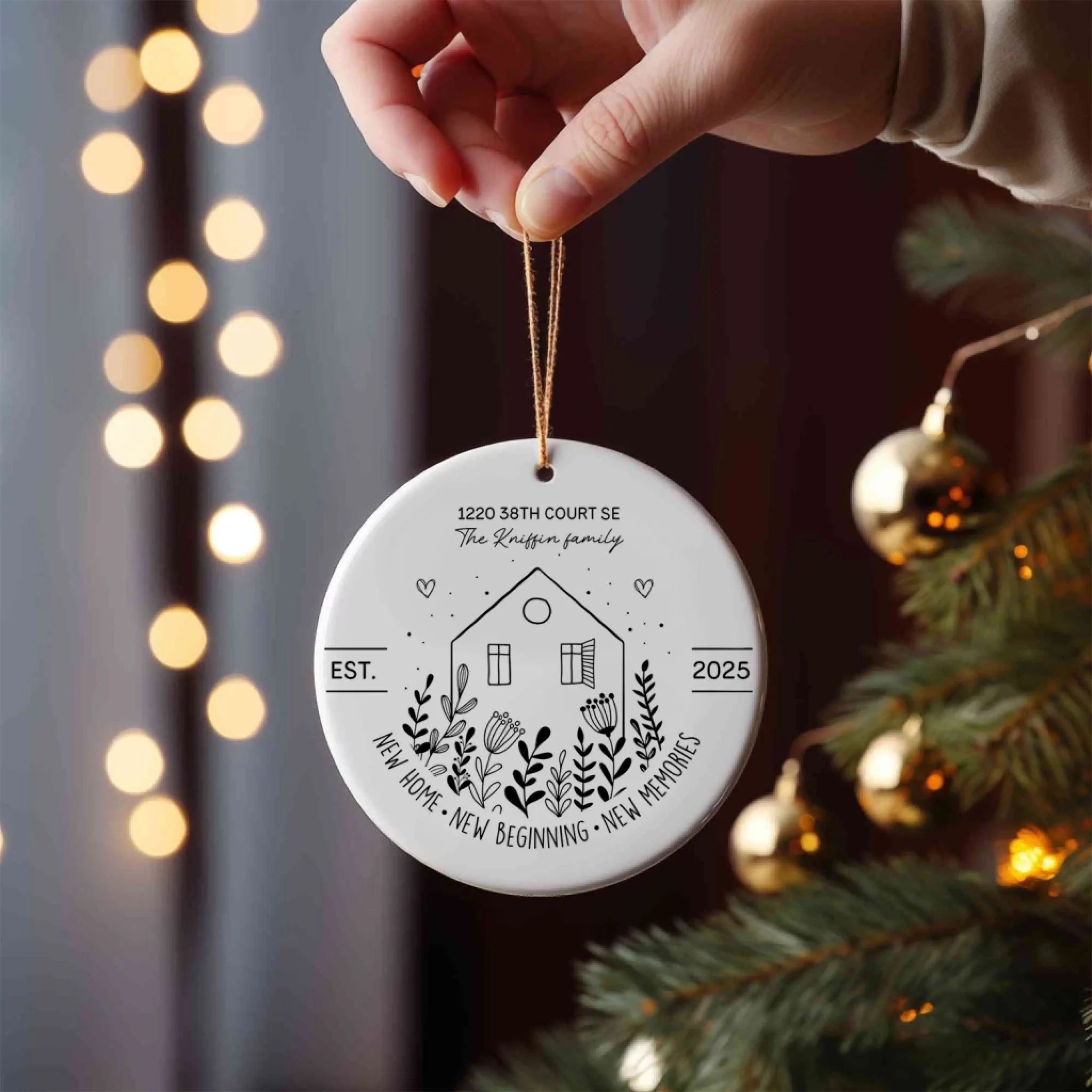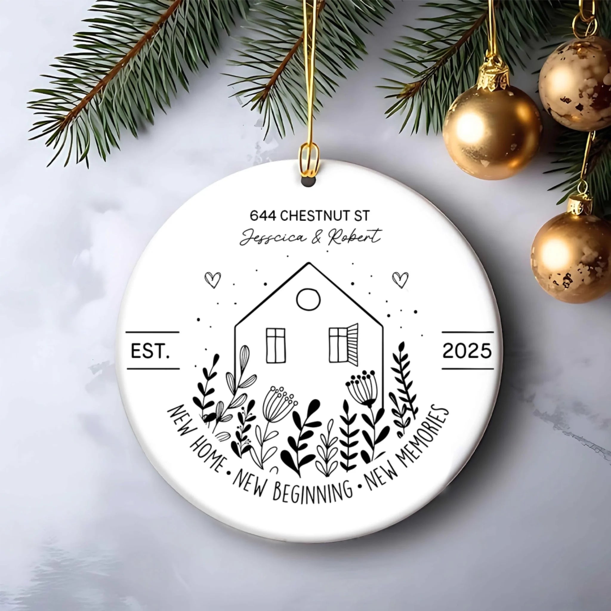 New Home, New Beginning, New Memories - Personalized Ceramic Ornament, Gift For Christmas