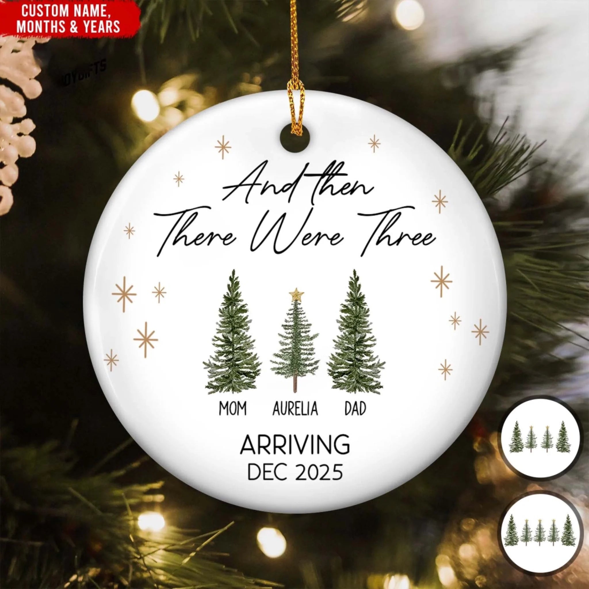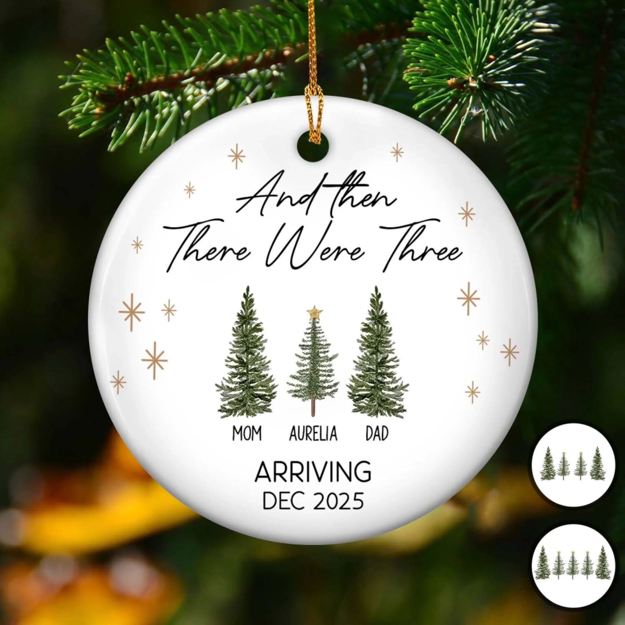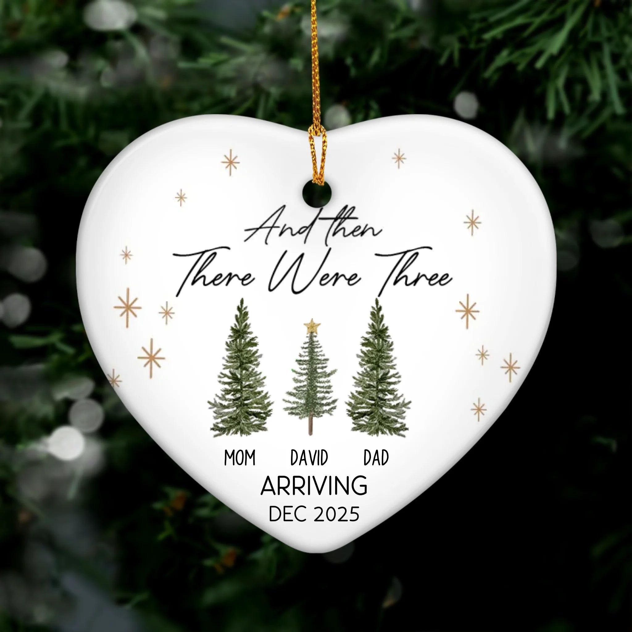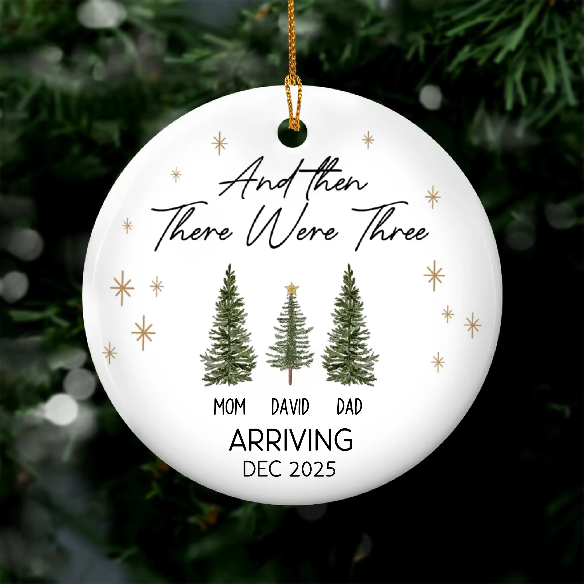 And Then There Were Three - Personalized Ceramic Ornament, Gift For Family