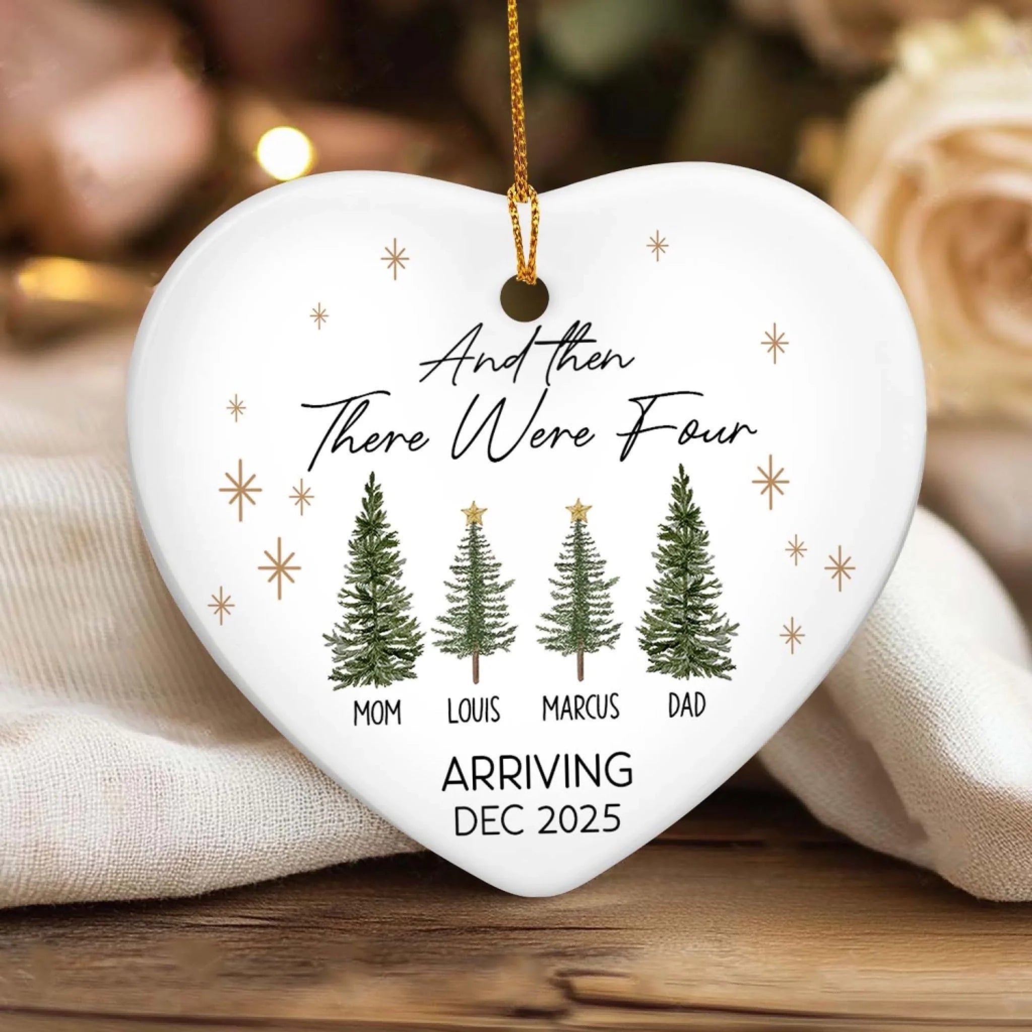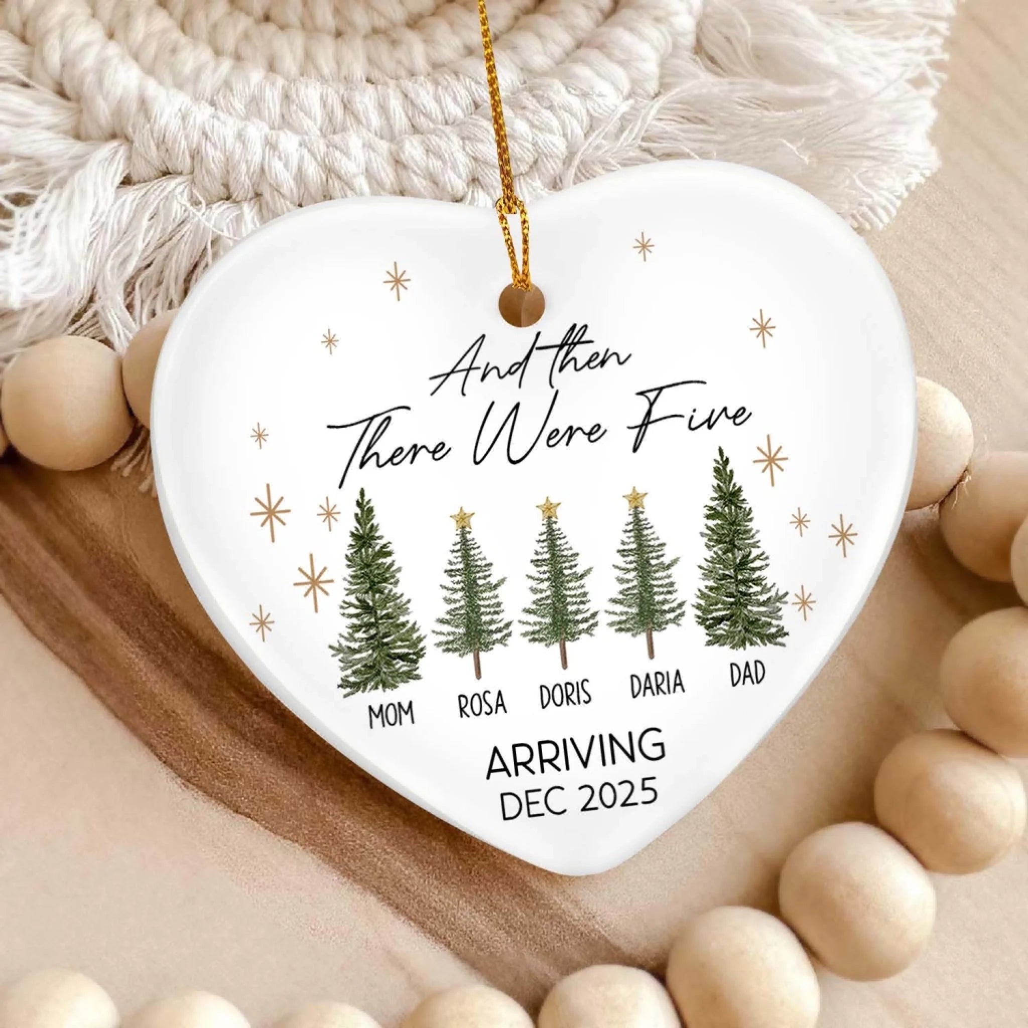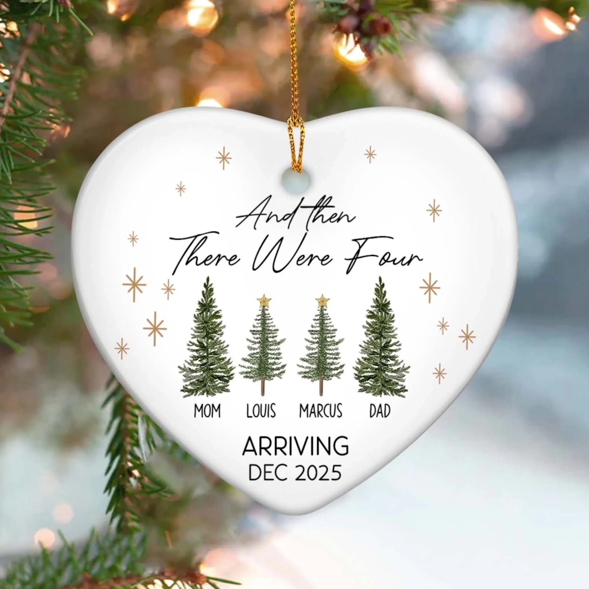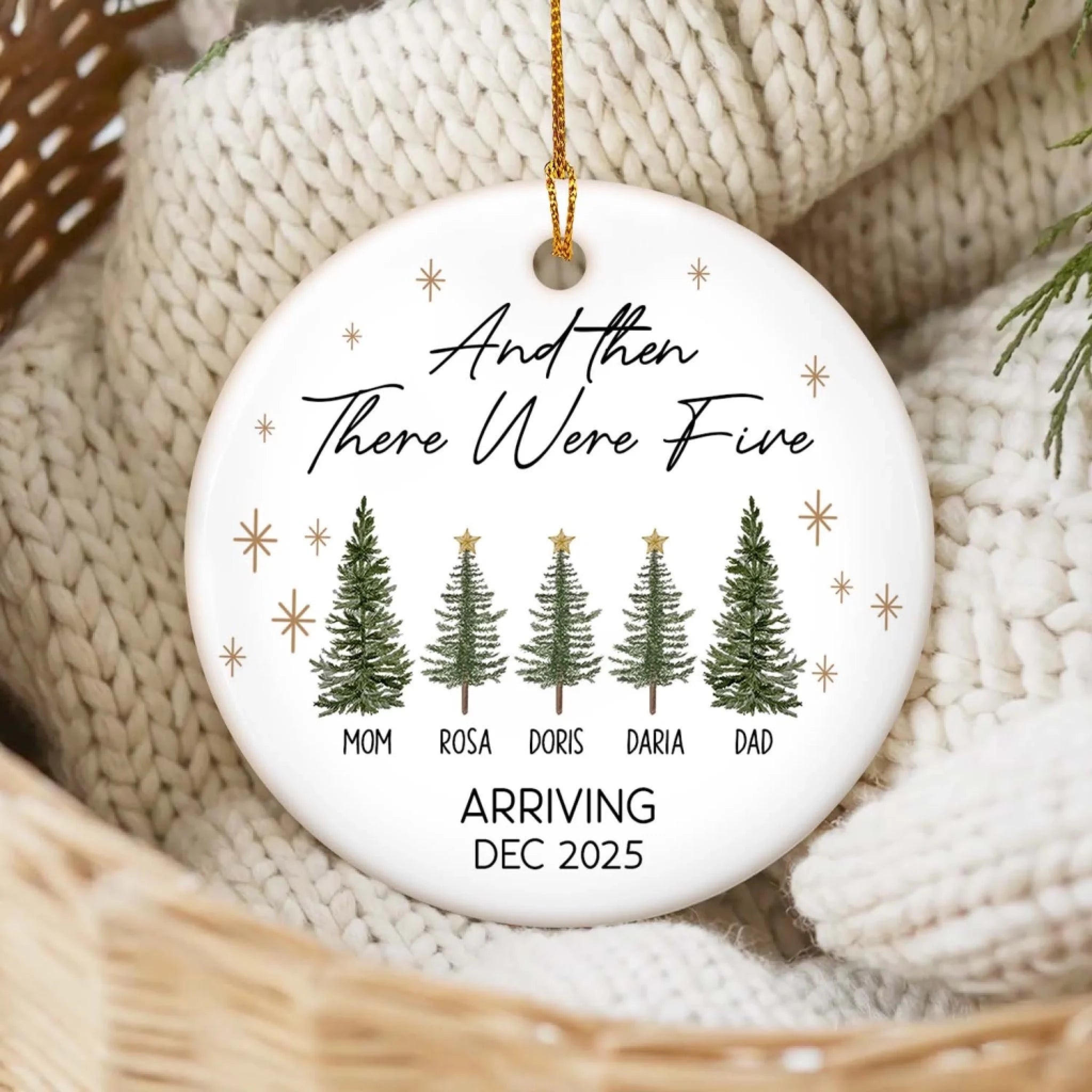 And Then There Were Three - Personalized Ceramic Ornament, Gift For Family