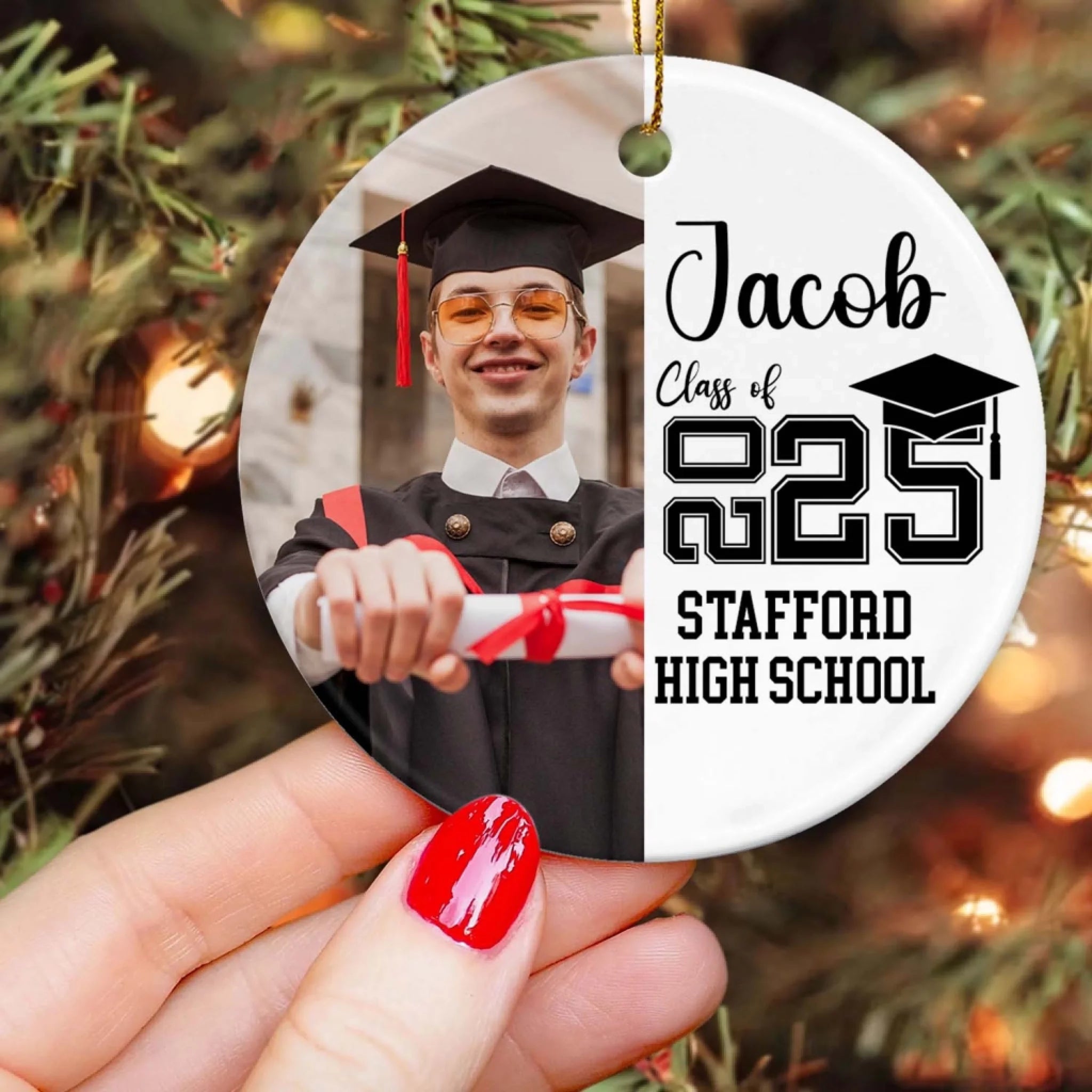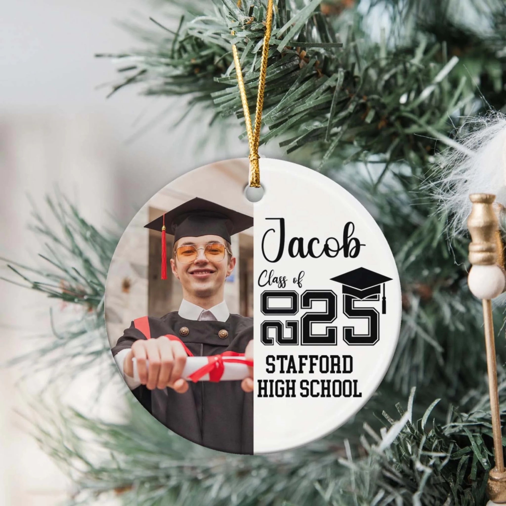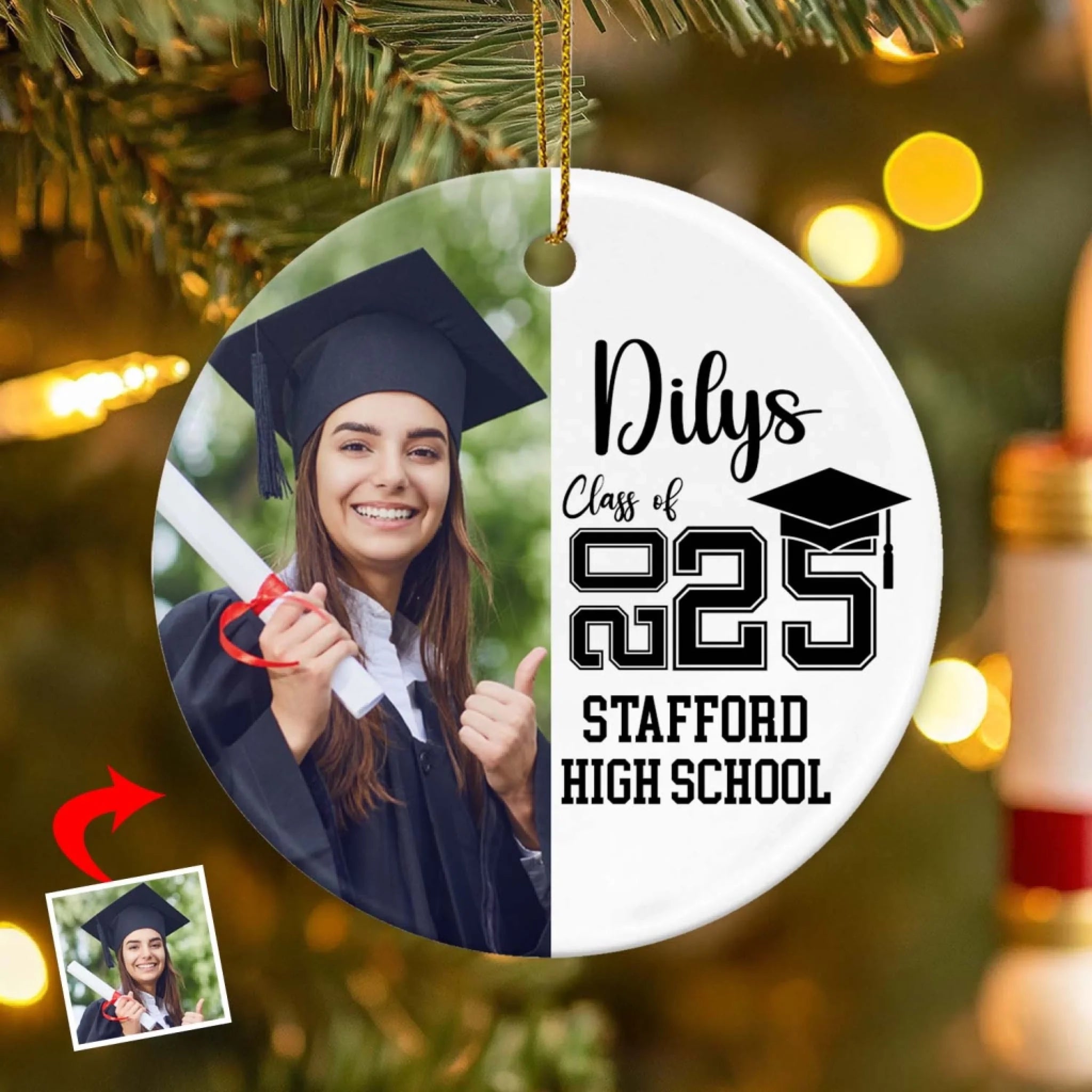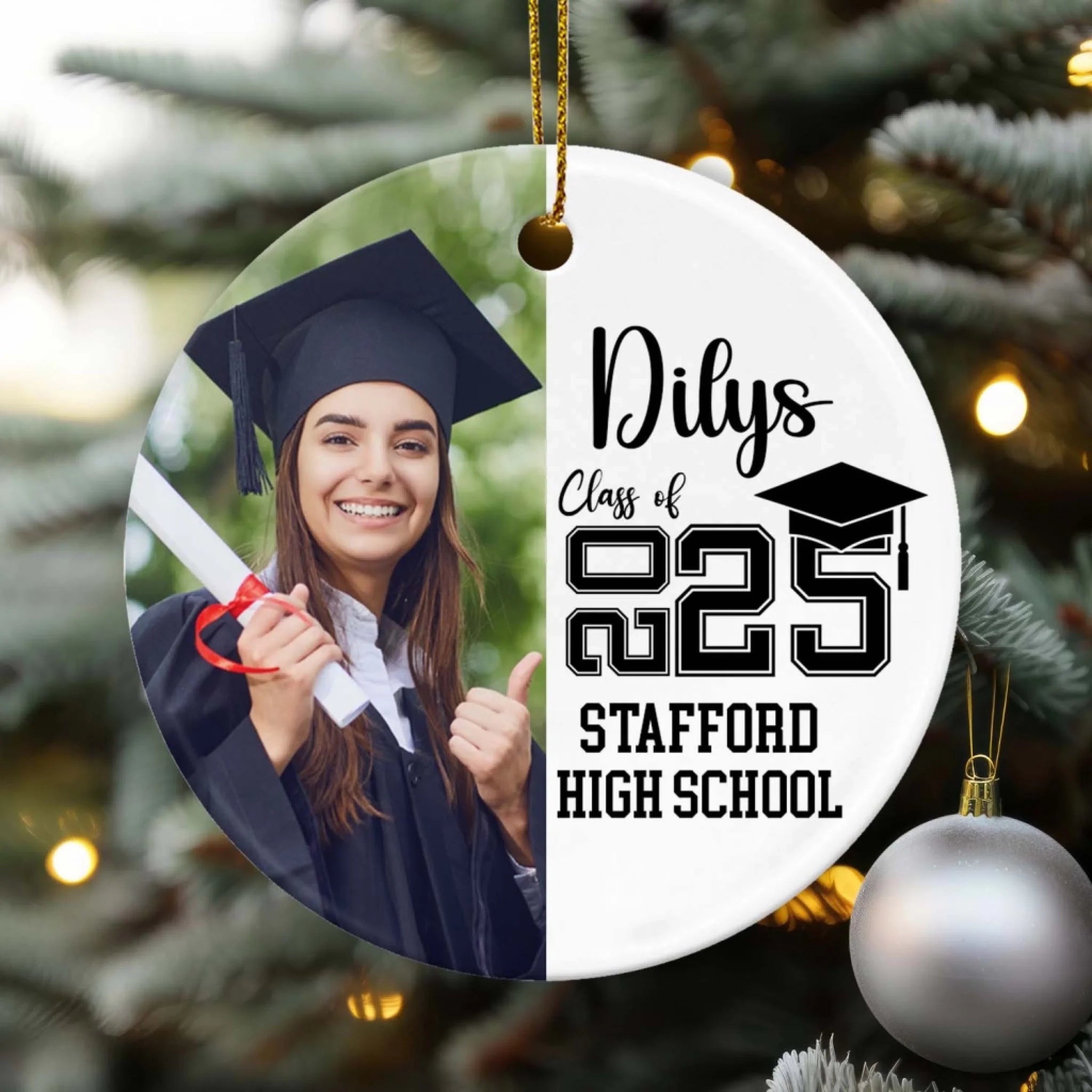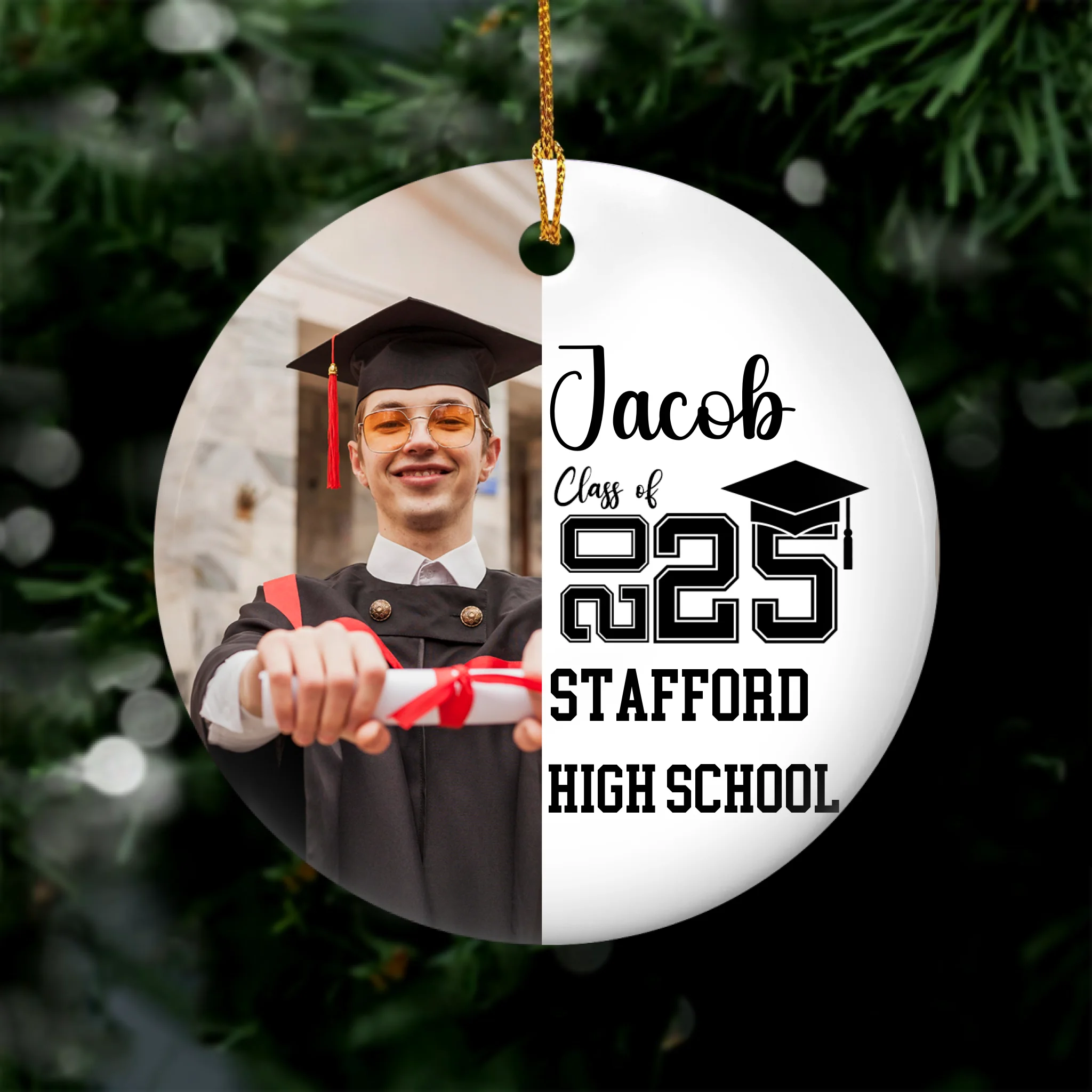 Class of The Year Custom Photo - Personalized Ceramic Ornament, Senior Christmas Gifts, College High School Grad Gift