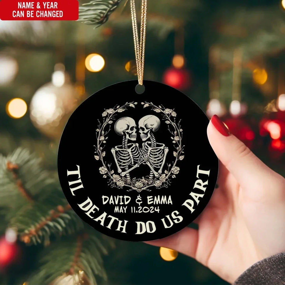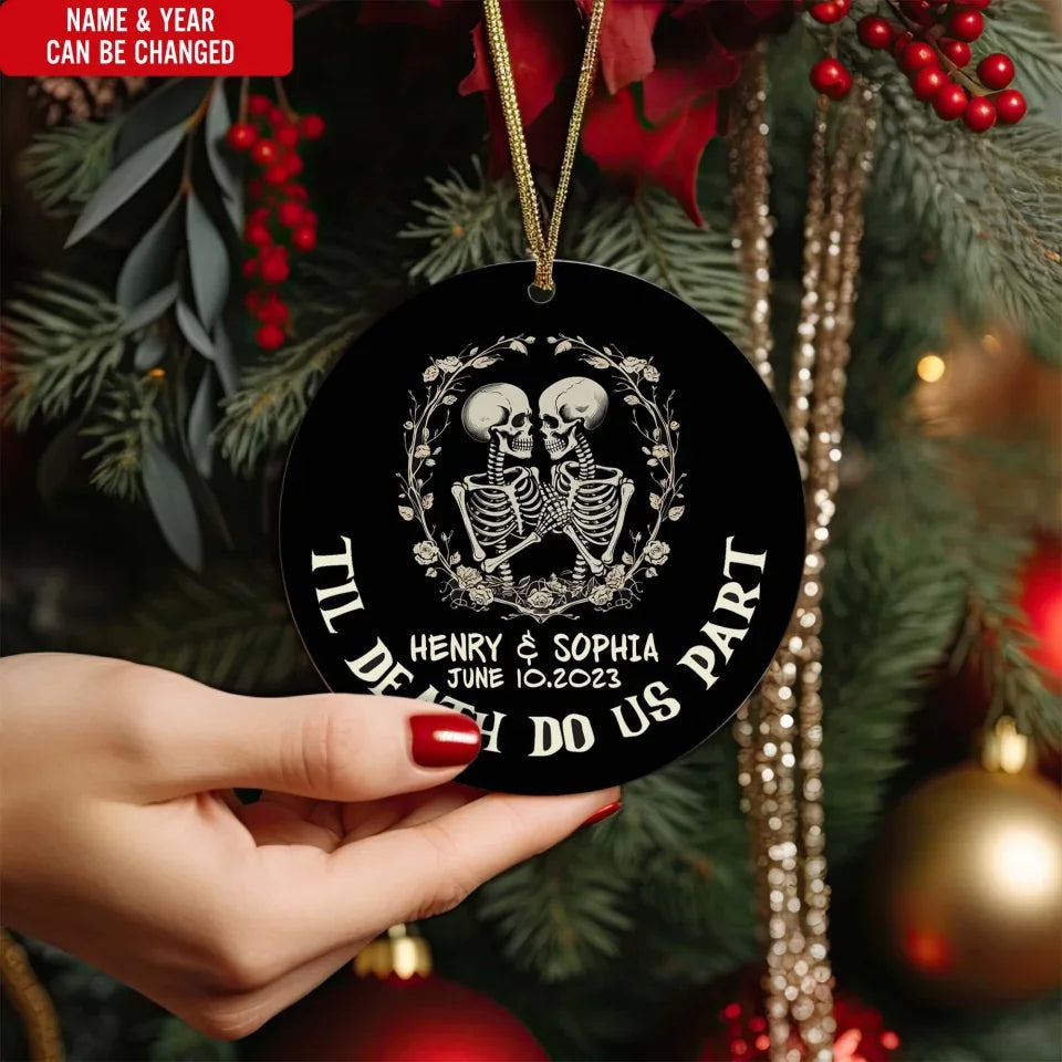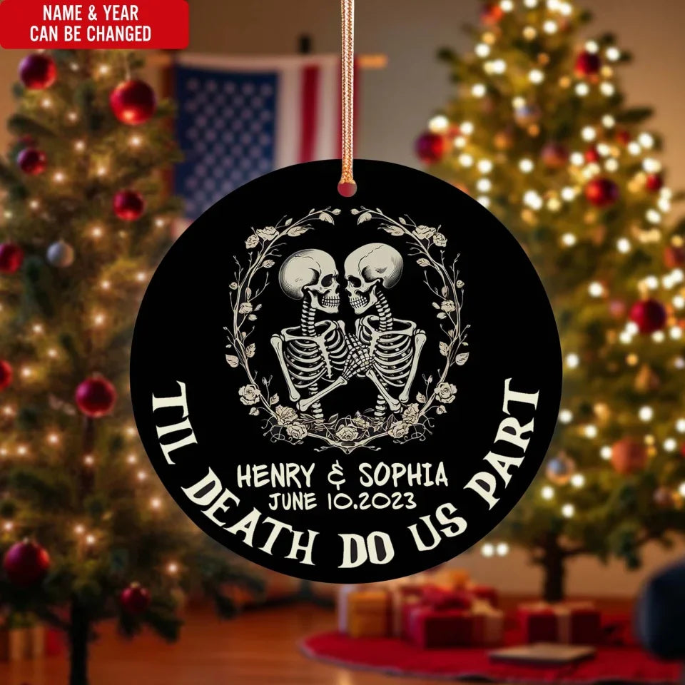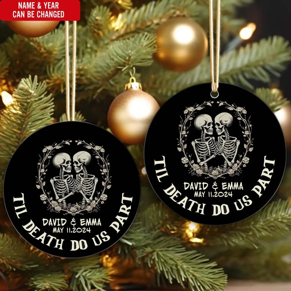 Till Death Do Us Part Skeleton Christmas Anniversary - Personalized Ceramic Ornament, Wedding Gift - ORN132UP