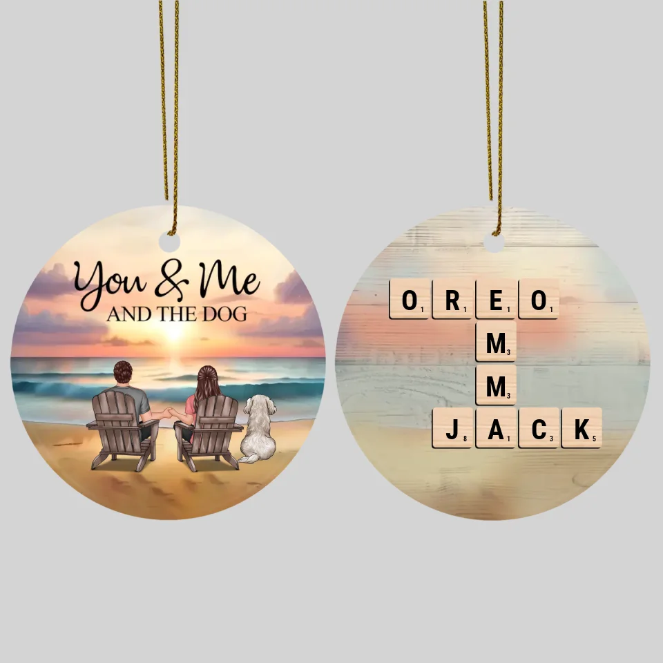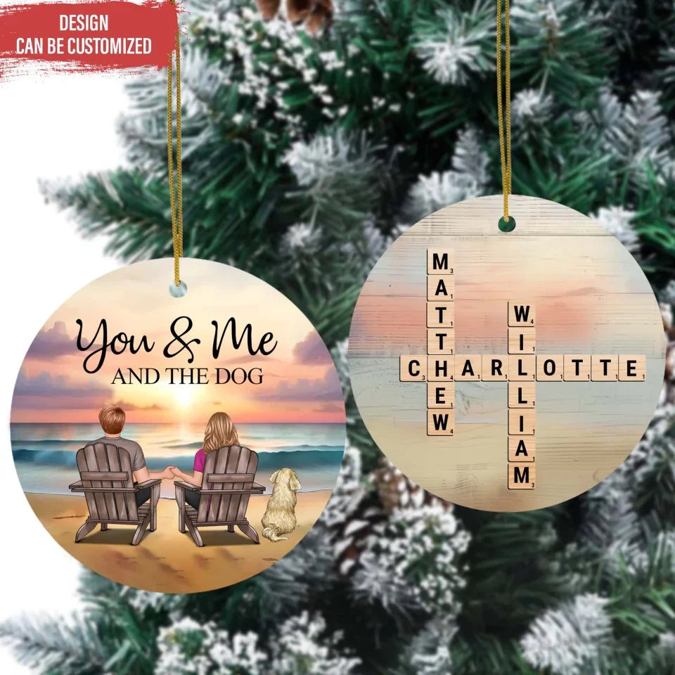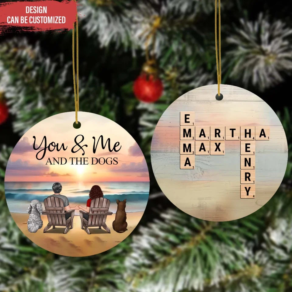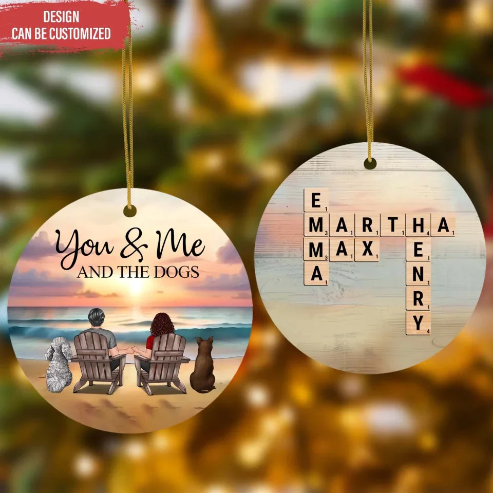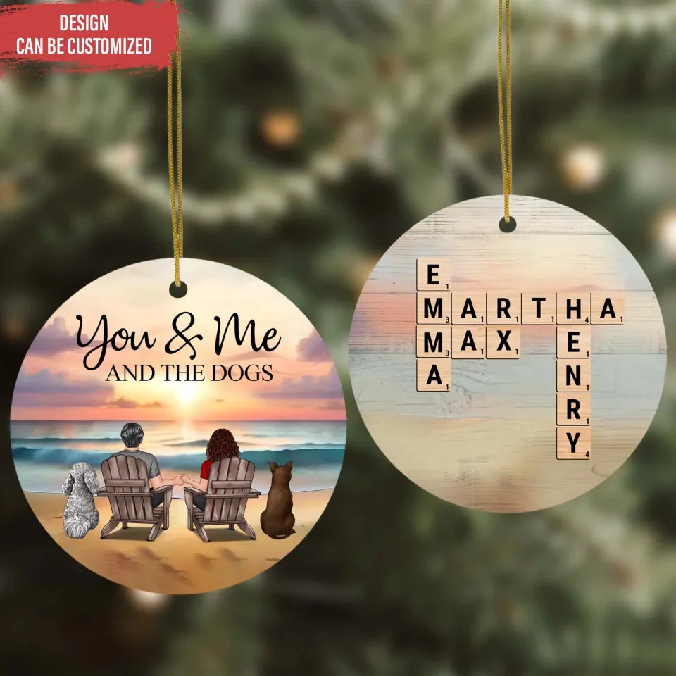 You and Me And The Dogs - Personalized Ceramic Ornament, Gift For Couple, Gift For Dog Lover - ORN413TL