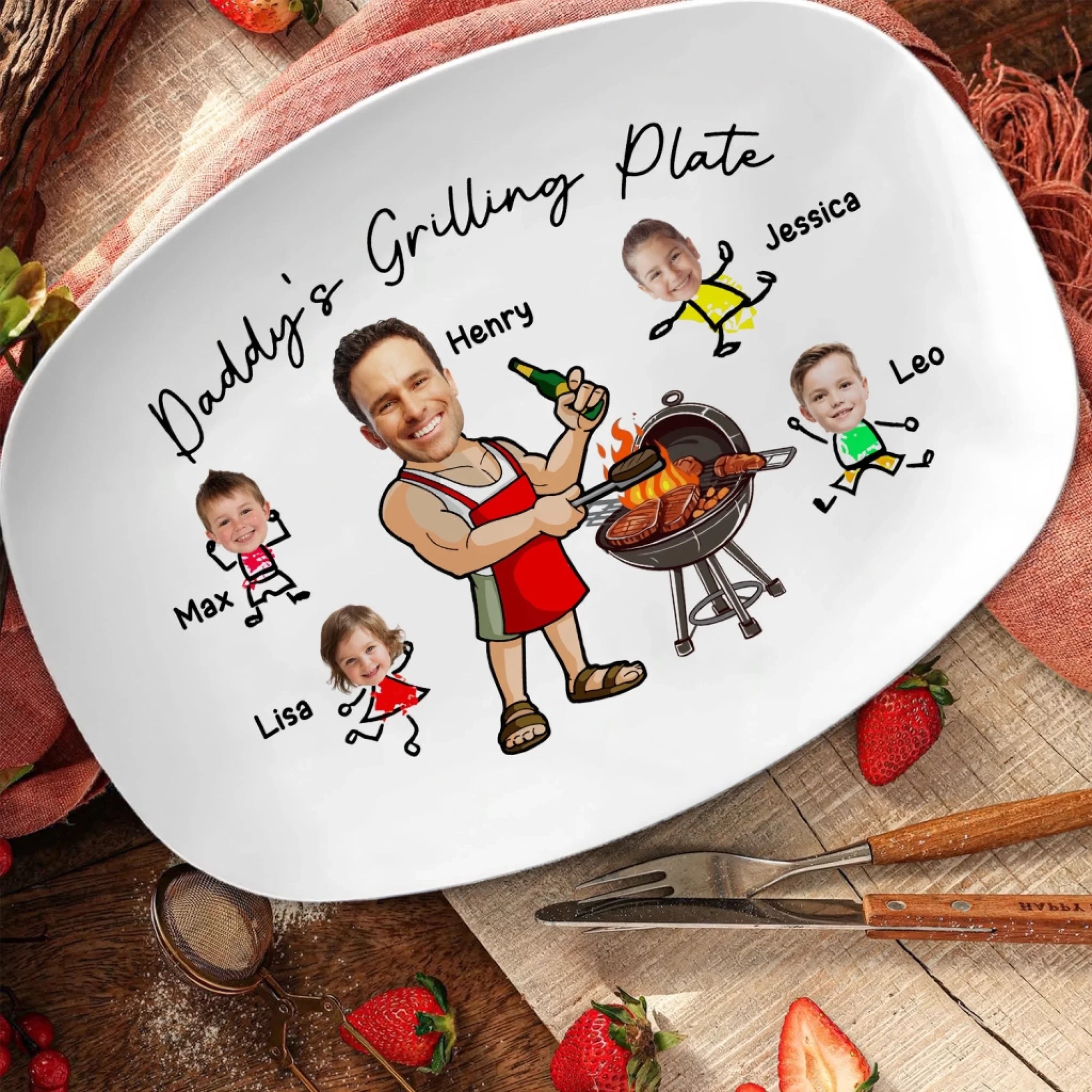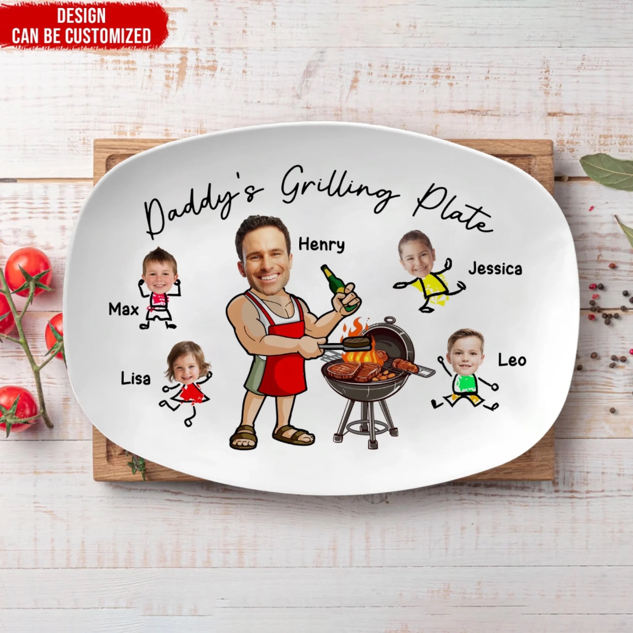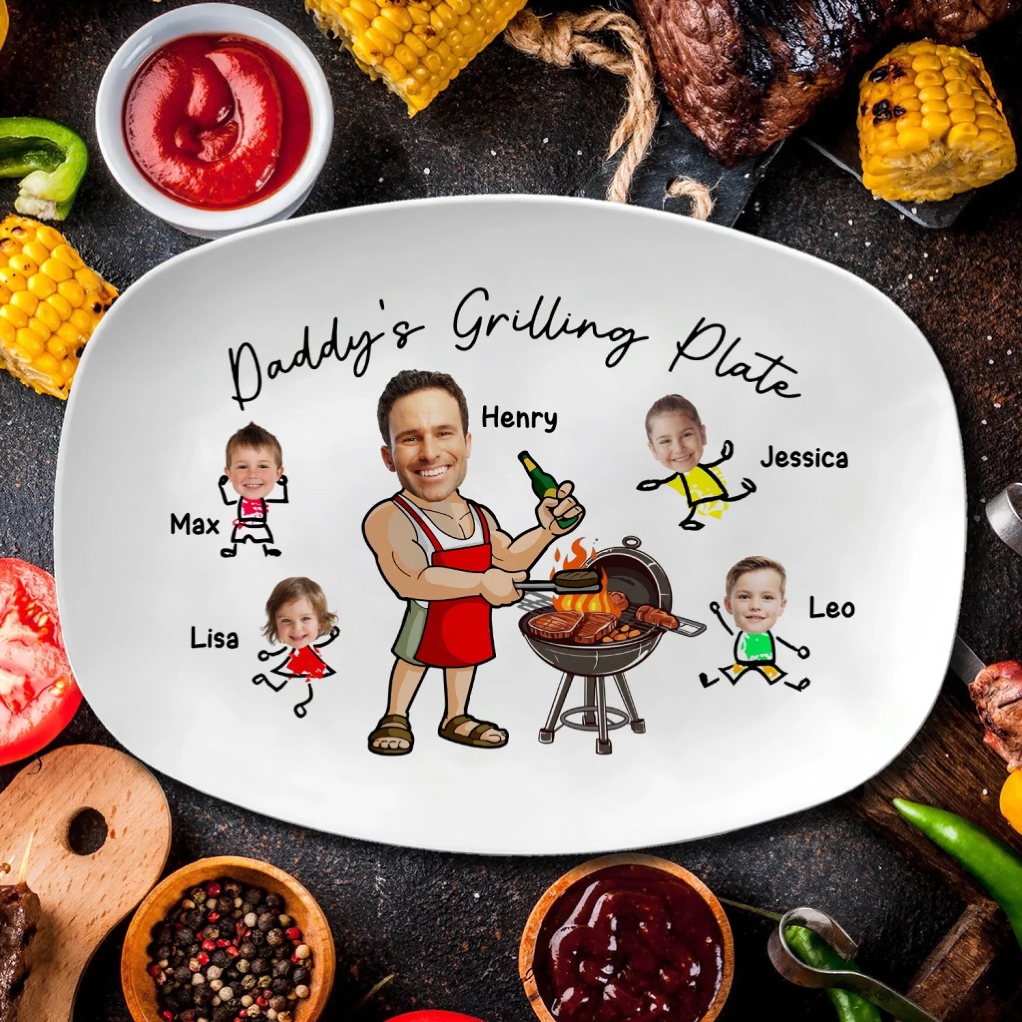 Daddy’s Grilling Plate - Personalized Platter, Gift for Dad/Grandpa, Dad’s Gift Idea