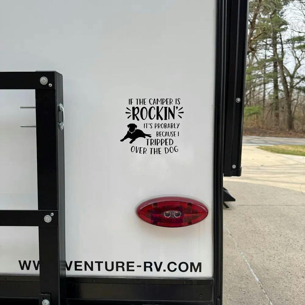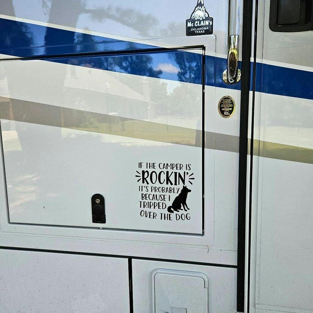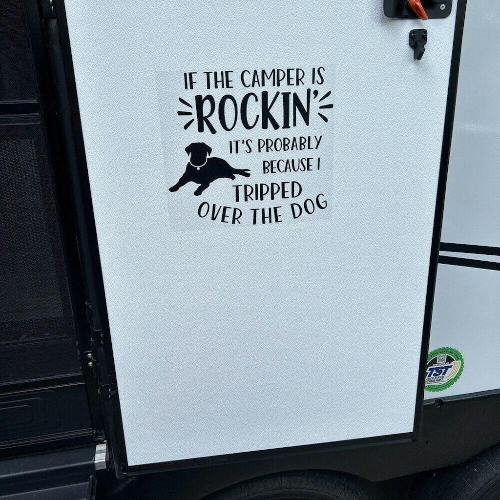 If The Camper is Rockin - Personalized Decal, Funny Campsite Decal, Custom Dog Camper Gift
