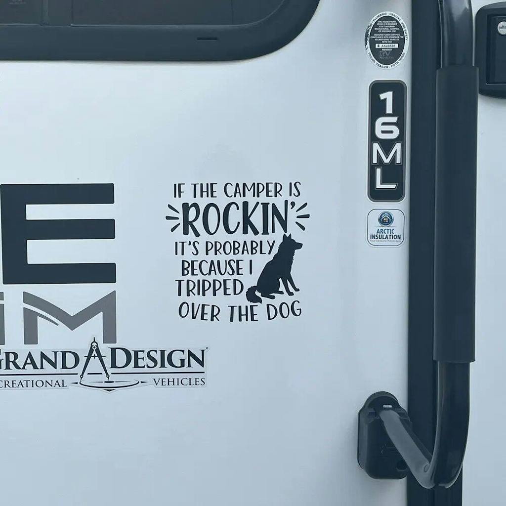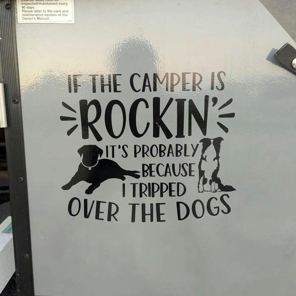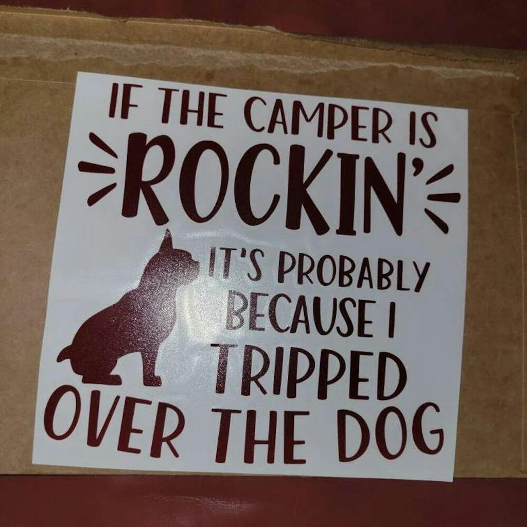 If The Camper is Rockin - Personalized Decal, Funny Campsite Decal, Custom Dog Camper Gift
