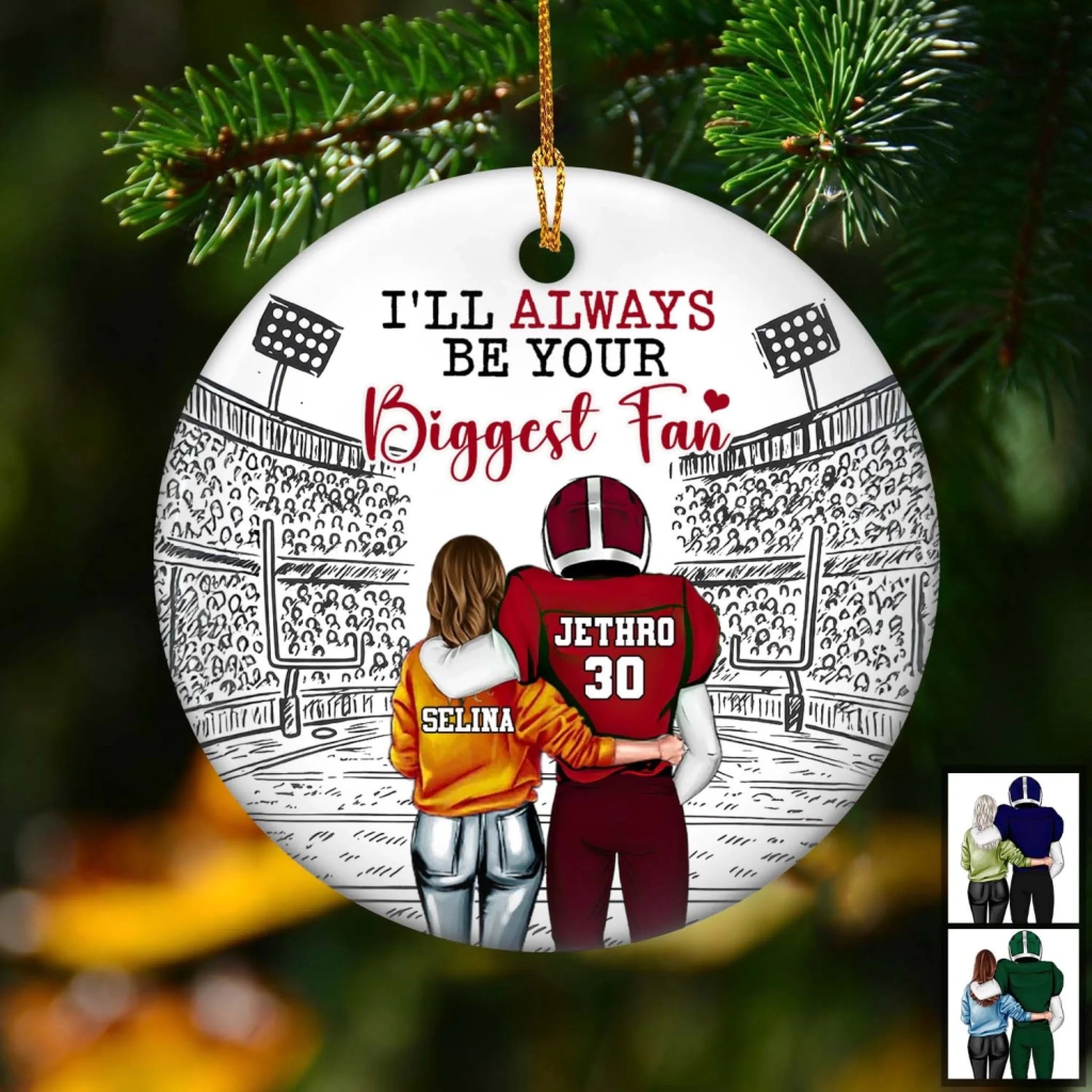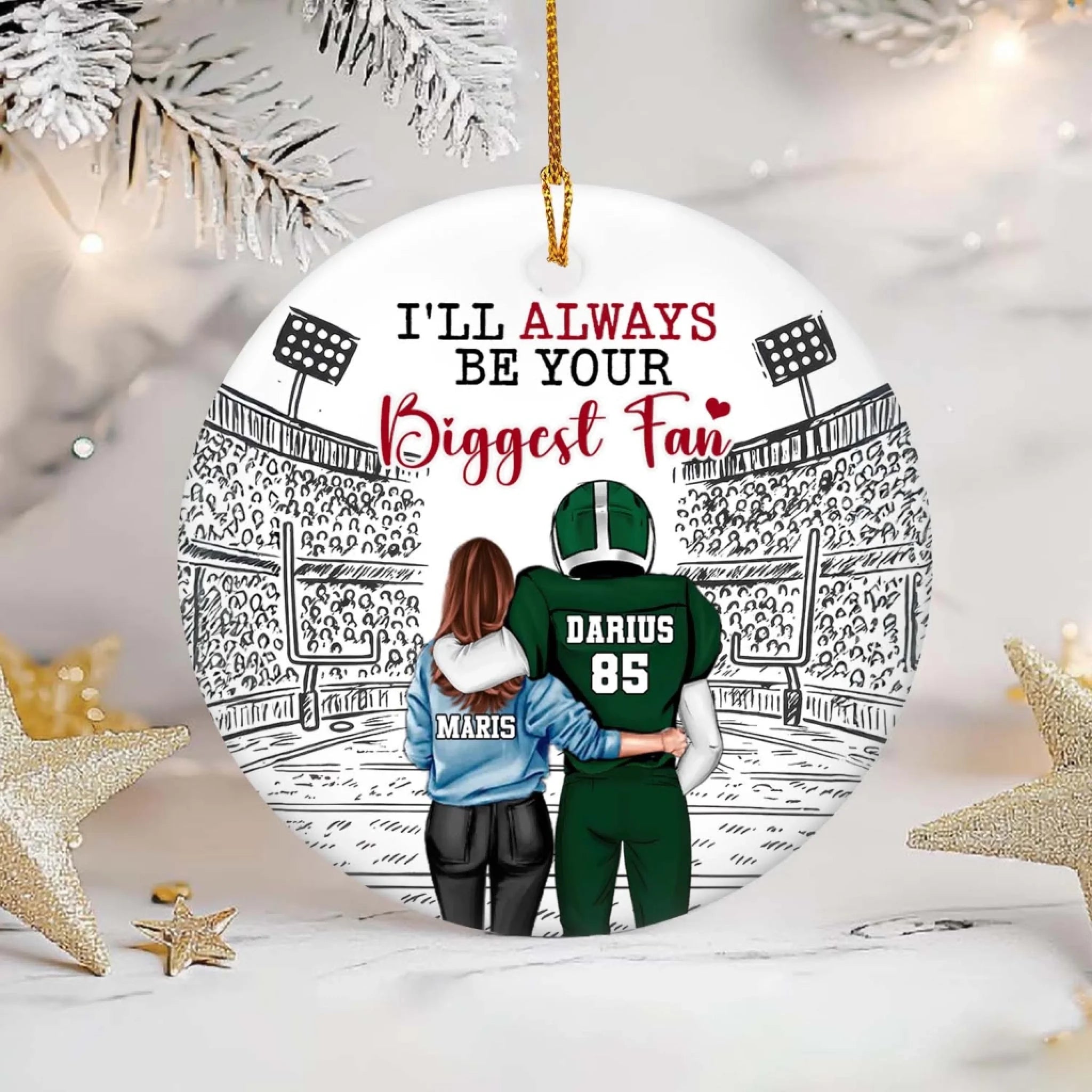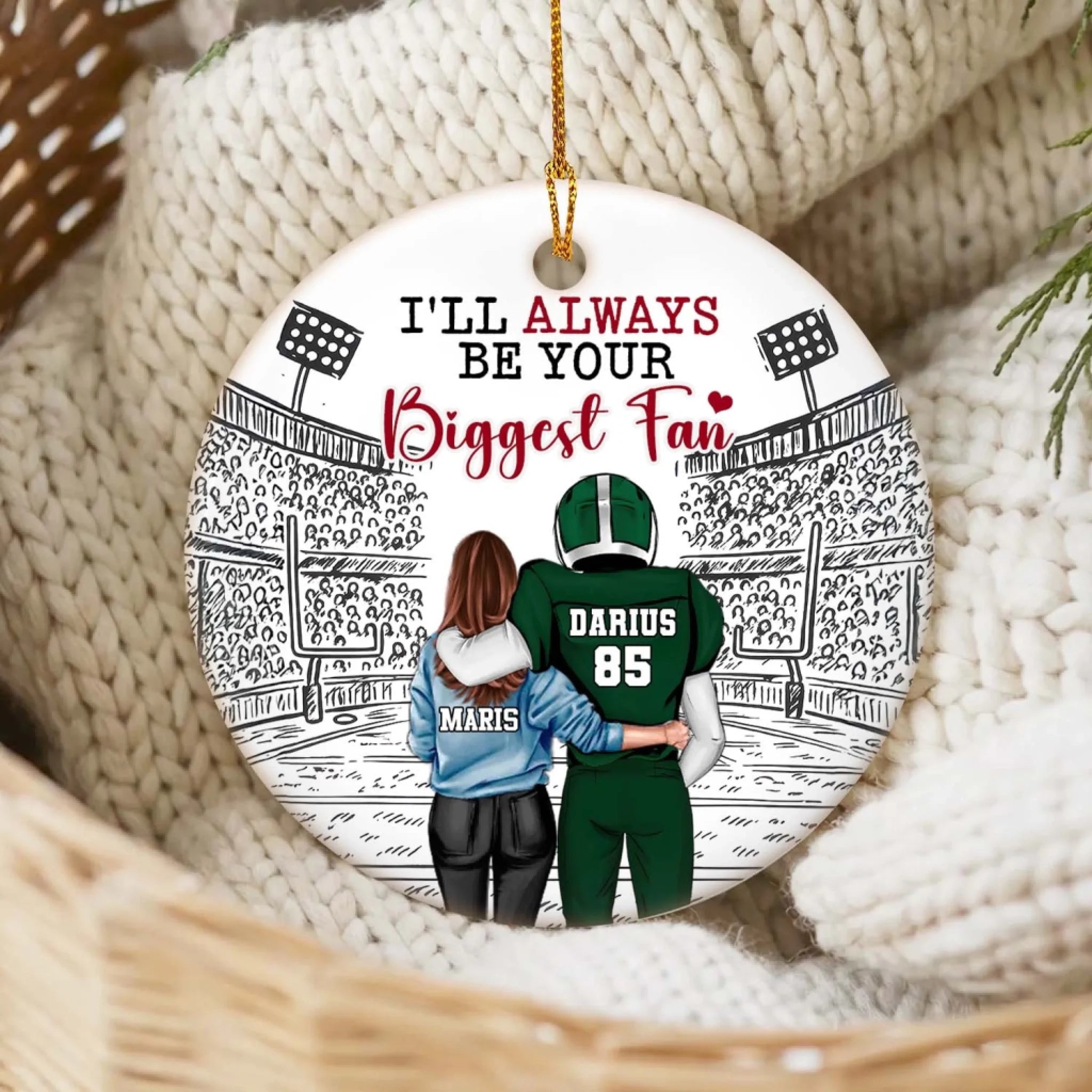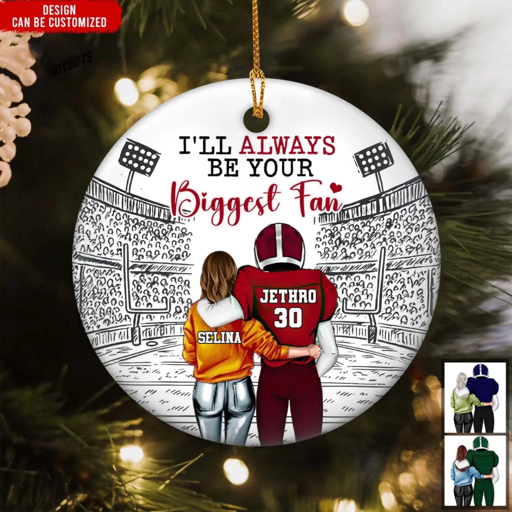 Football Biggest Fan - Personalized Ceramic Ornament, Football Fan Gift, Football mom, Football Grandma