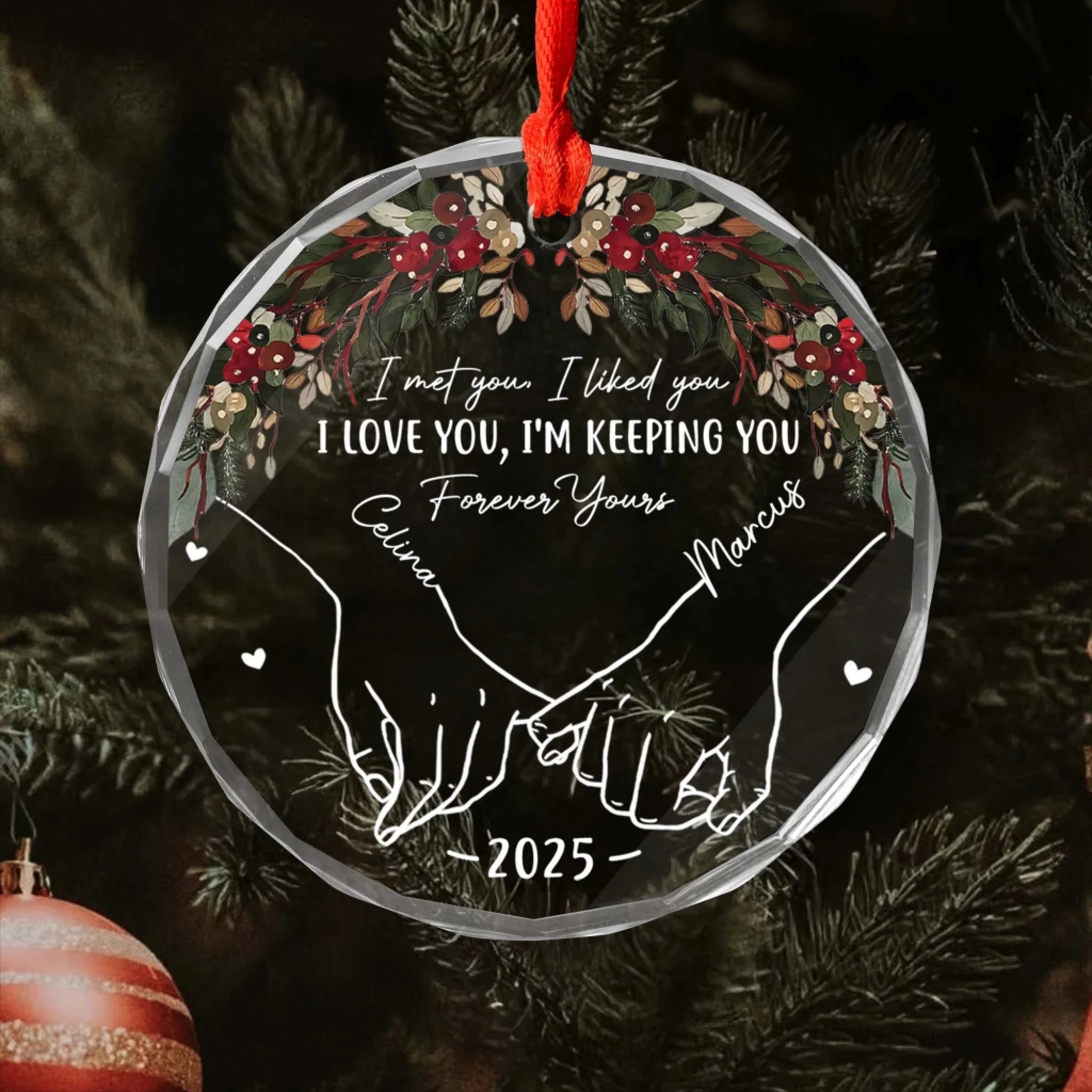 I Met You, I Liked You Couple - Personalized Glass Ornament, Gift For Couple