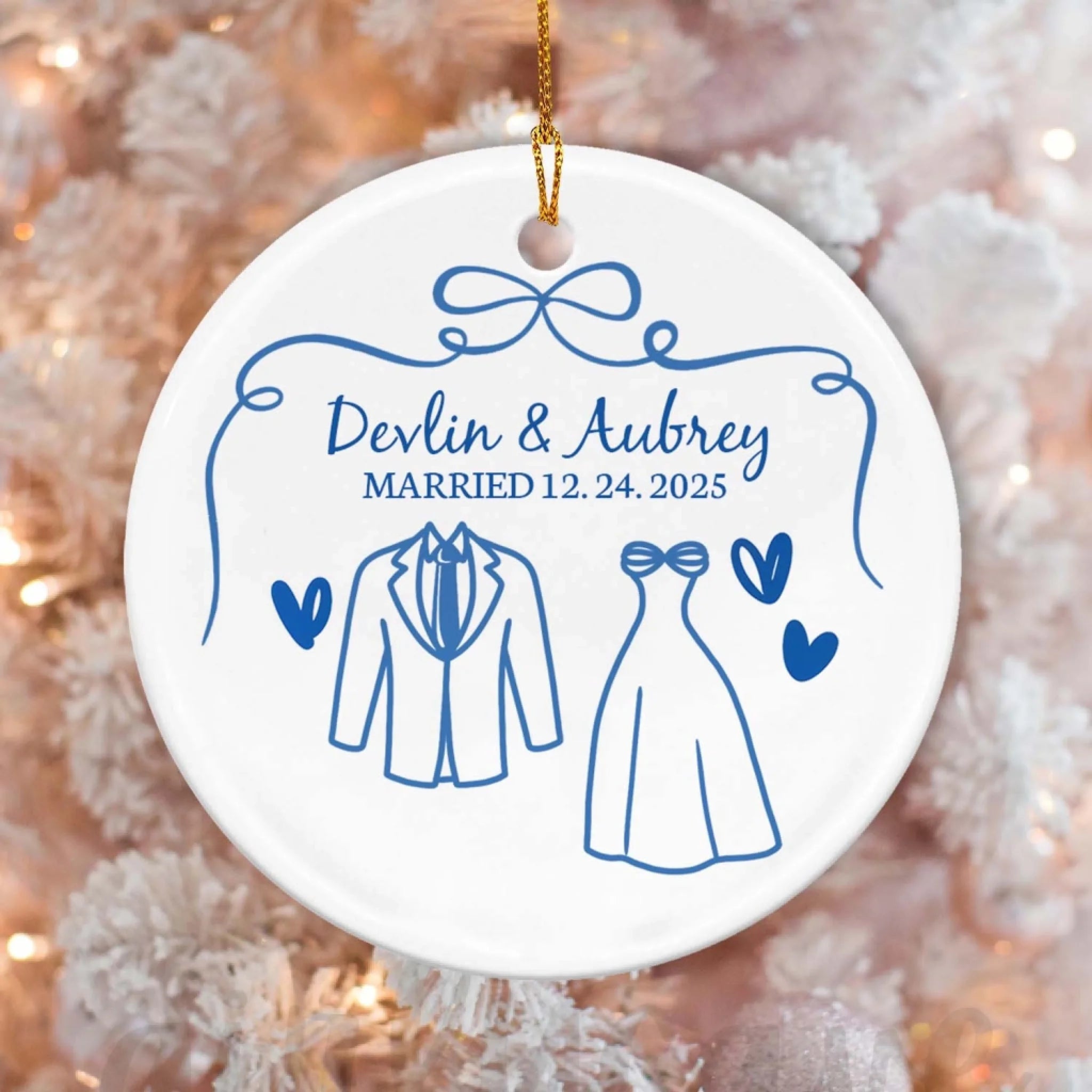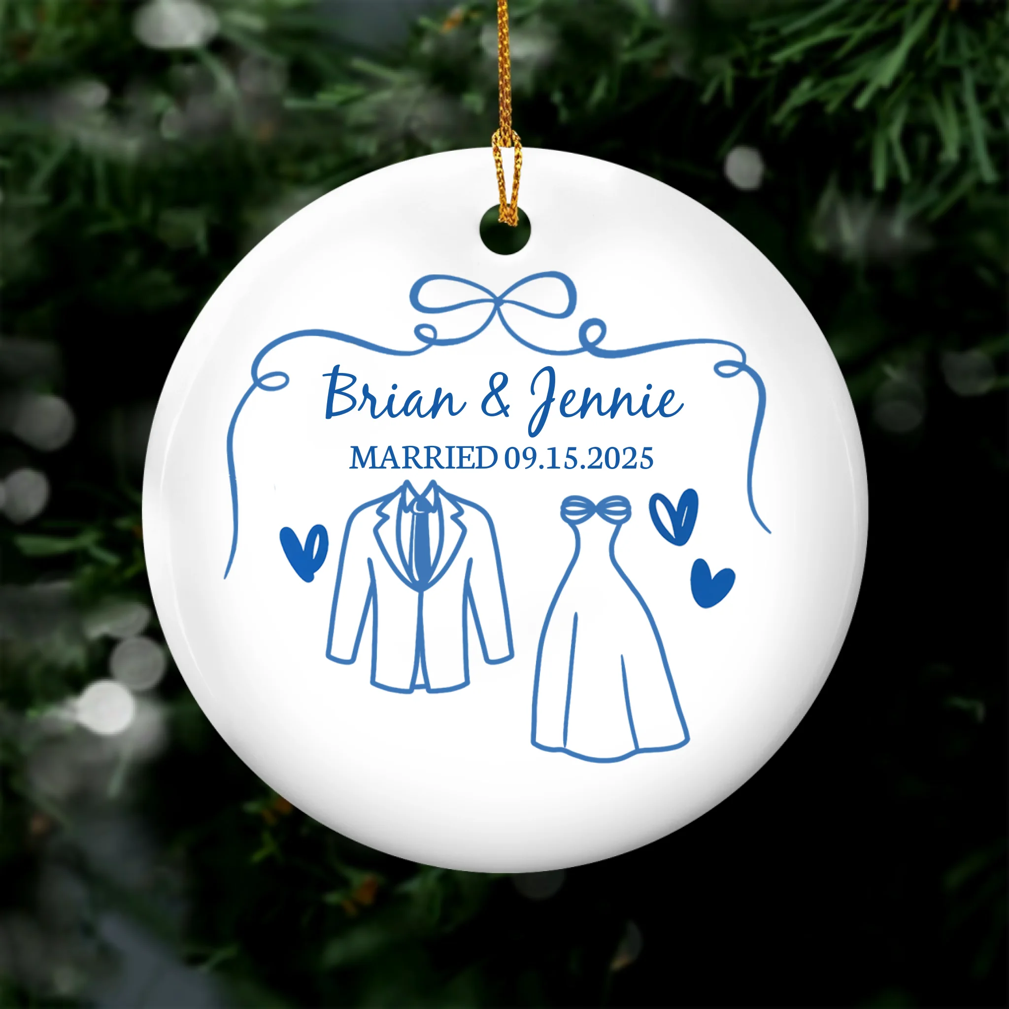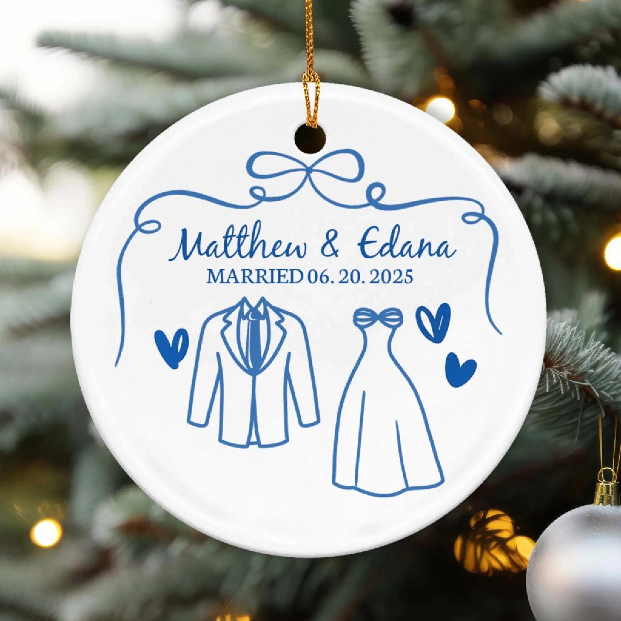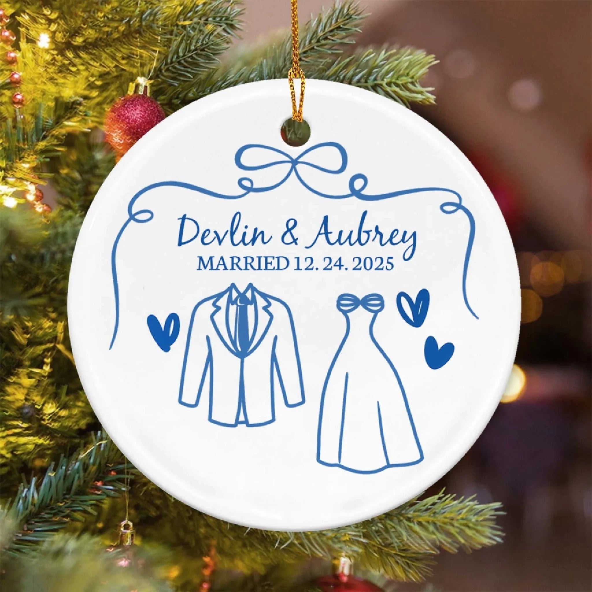 Mr & Mrs First Christmas Married - Personalized Ceramic Ornament, Gift For Couples