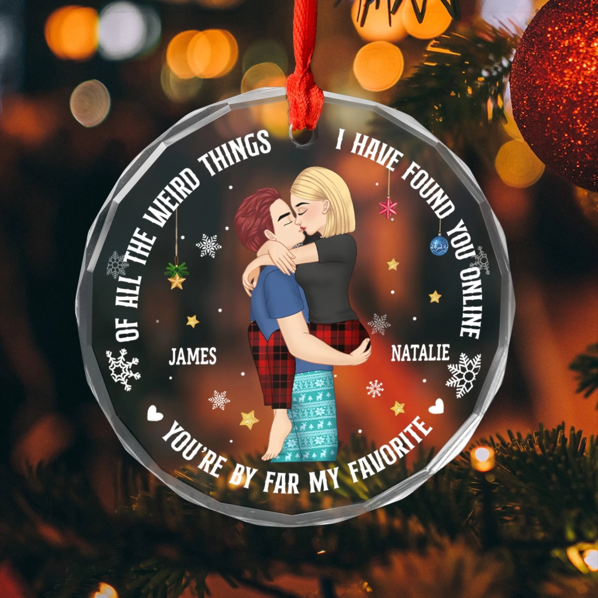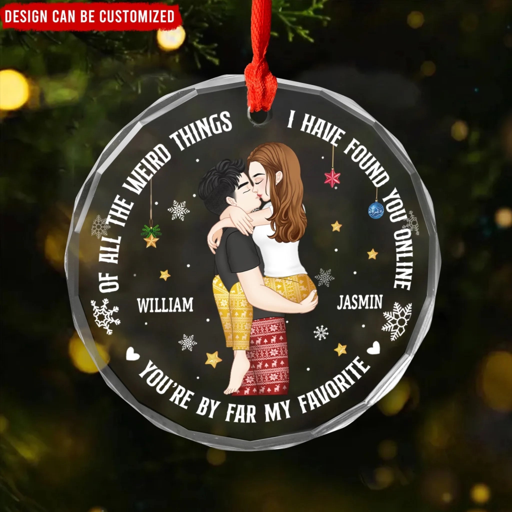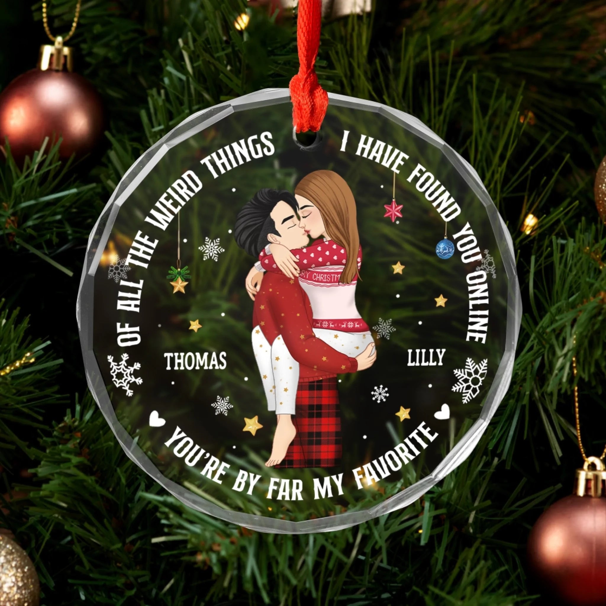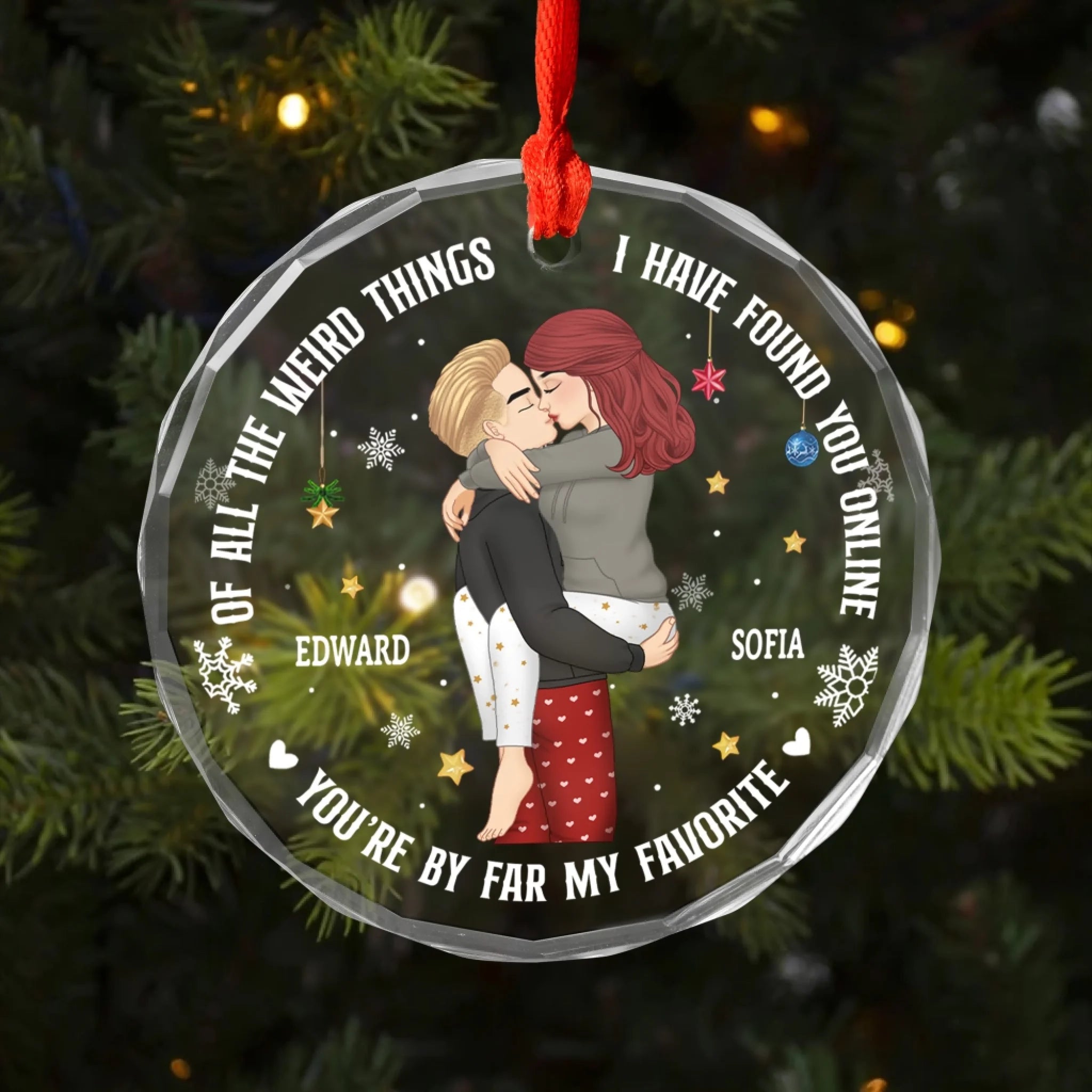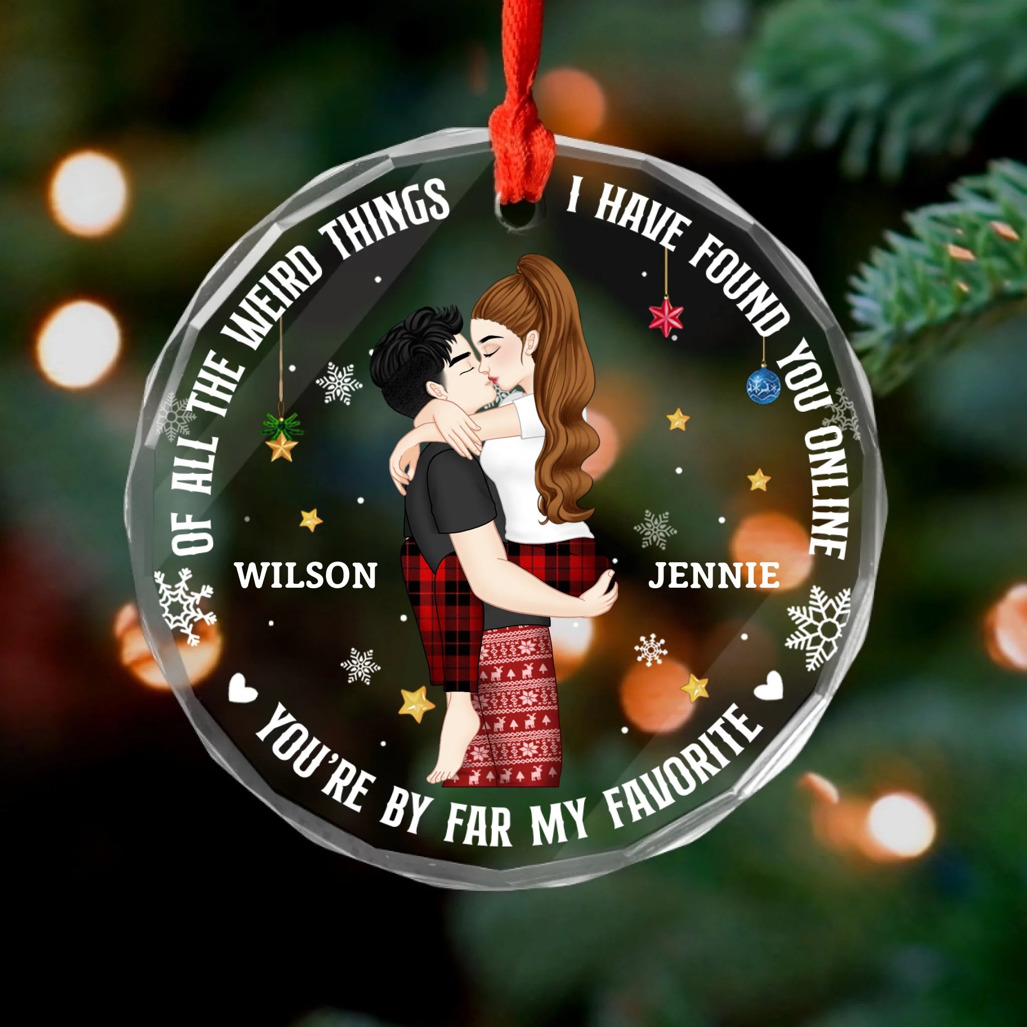You Are My Favorite By Far Kissing Couple - Personalized Glass Ornament, Couple Gift, Romantic Keepsake For Lovers