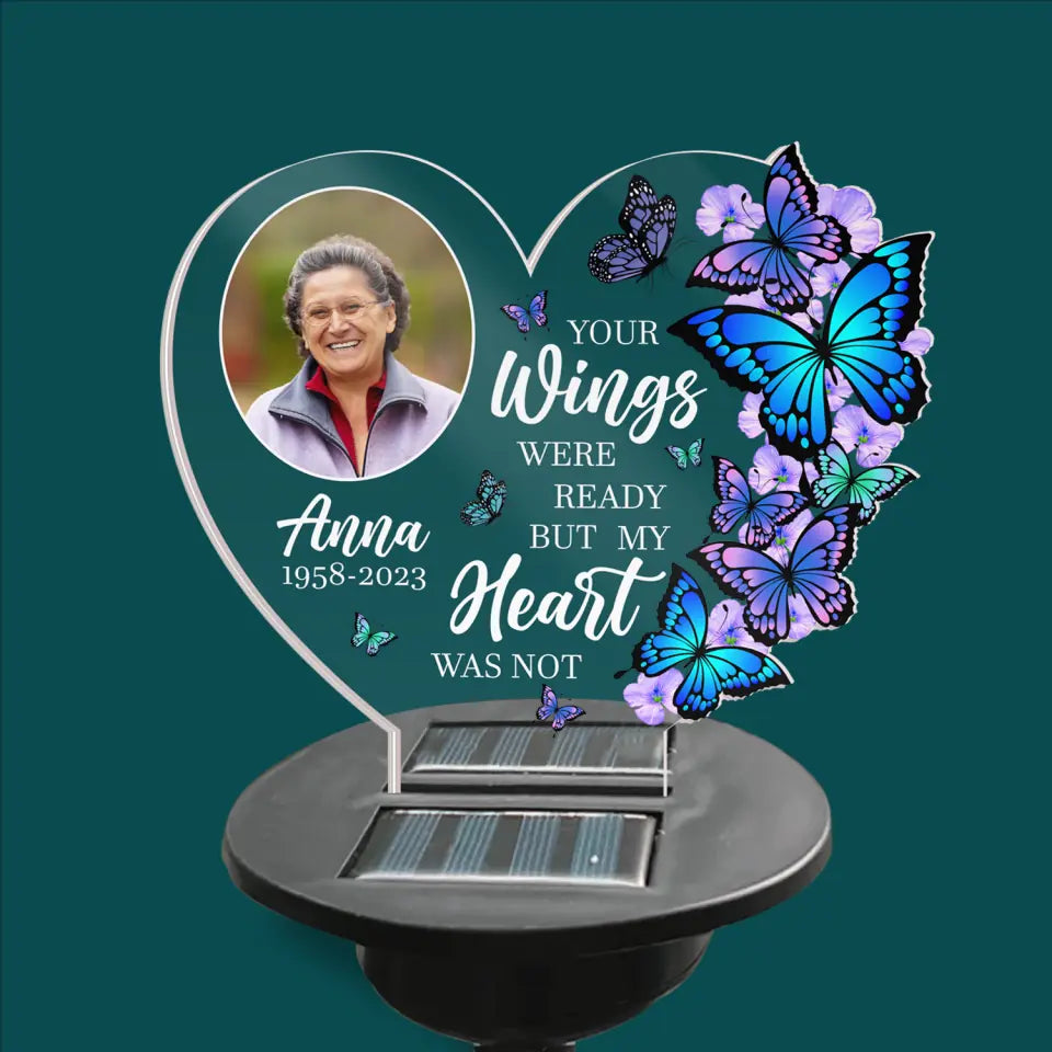 Your Wings Were Ready, But My Heart Was Not - Personalized Solar Light, Sympathy Gift For Loss of Loved One - SL25