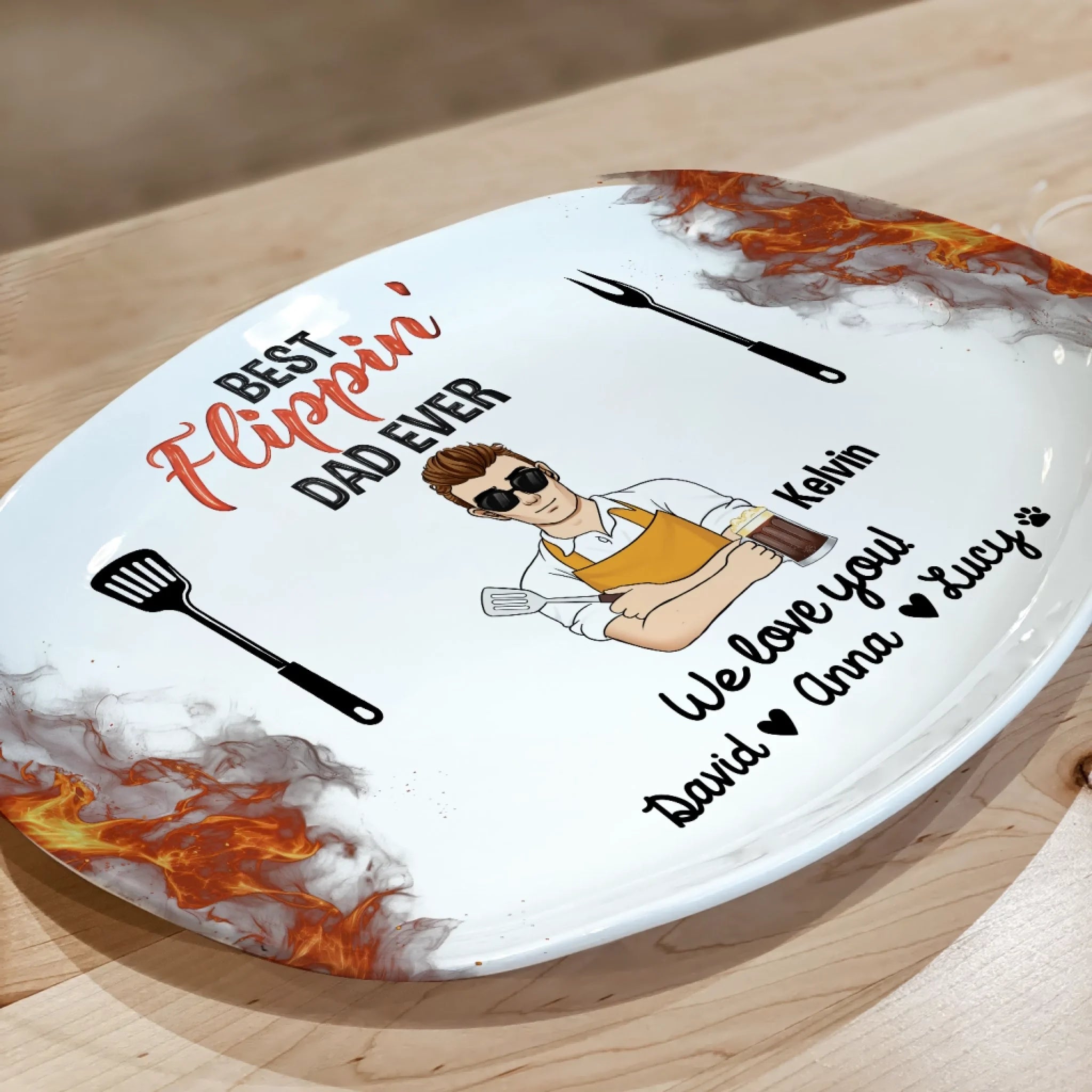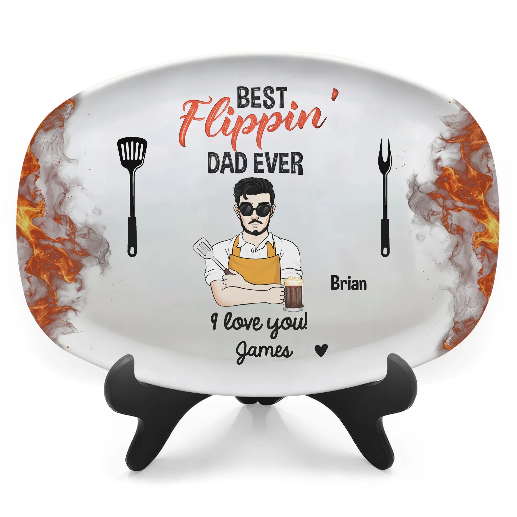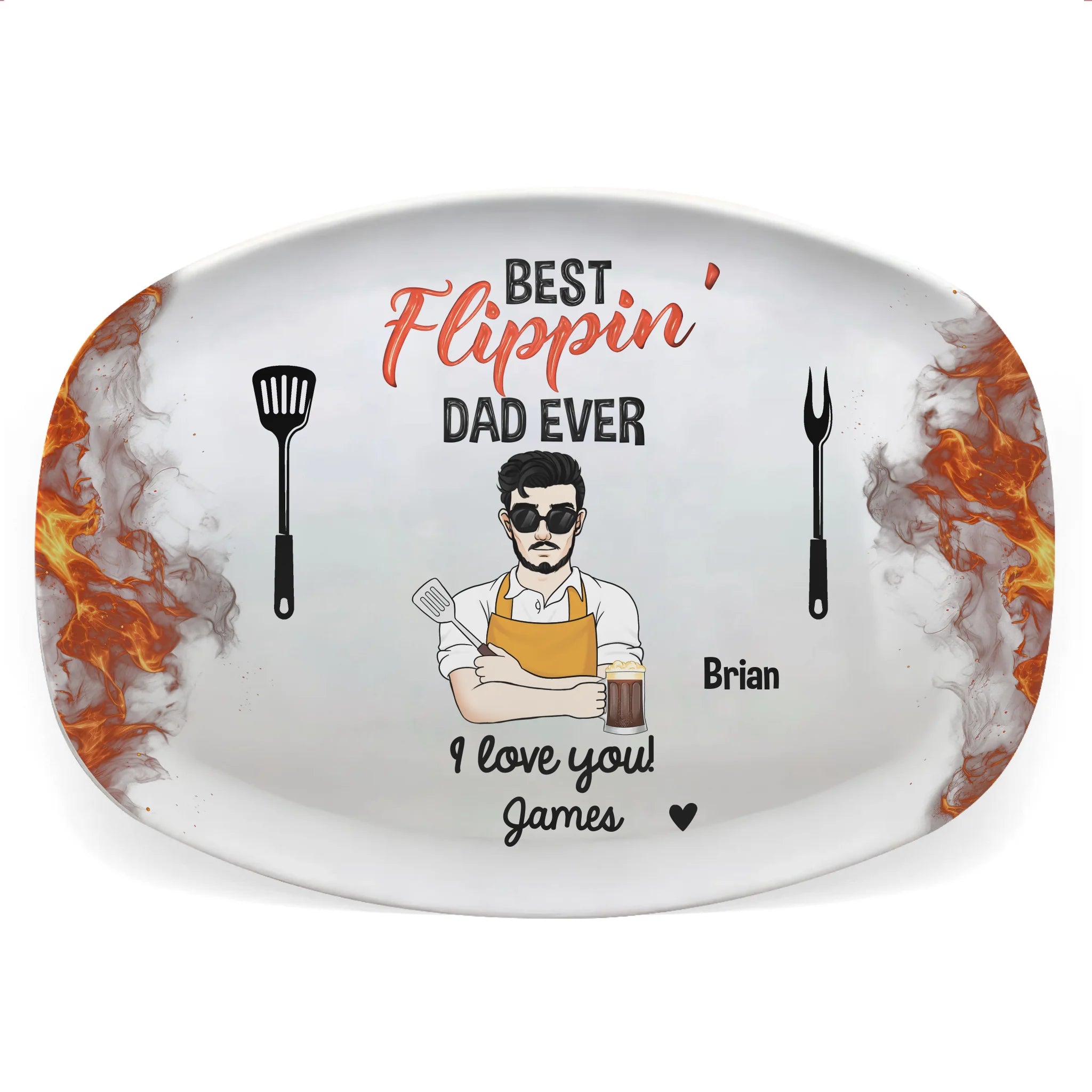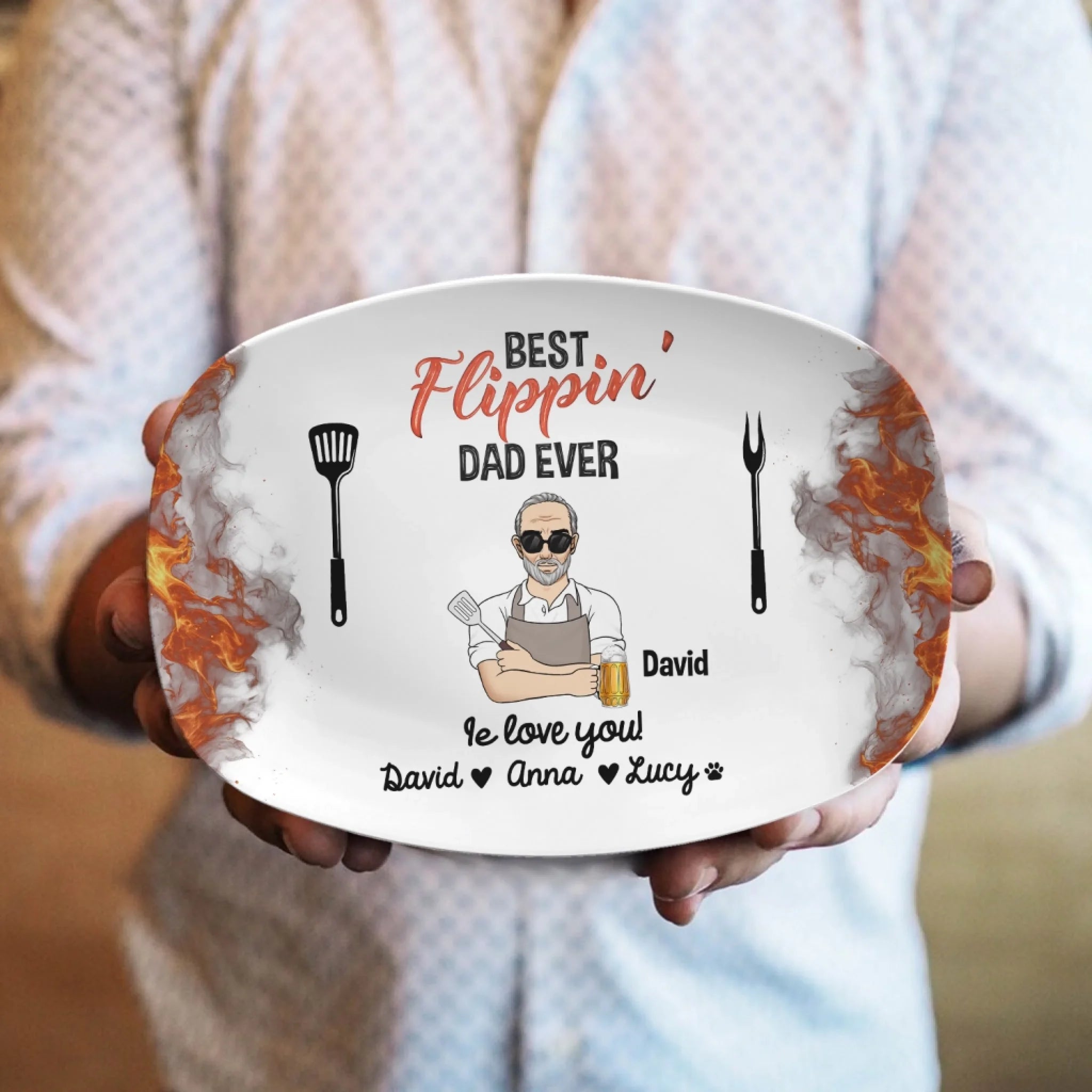 Best Flippin' Dad Ever - Personalized Platter, Funny Gift For Dad, Custom Dad's Grilling Plate
