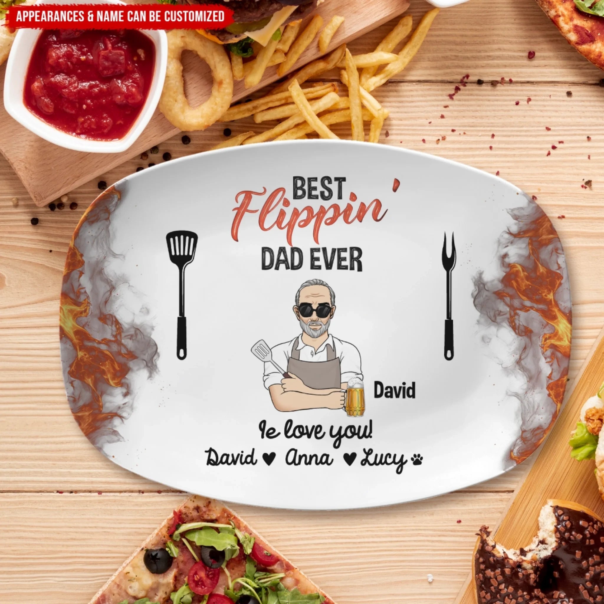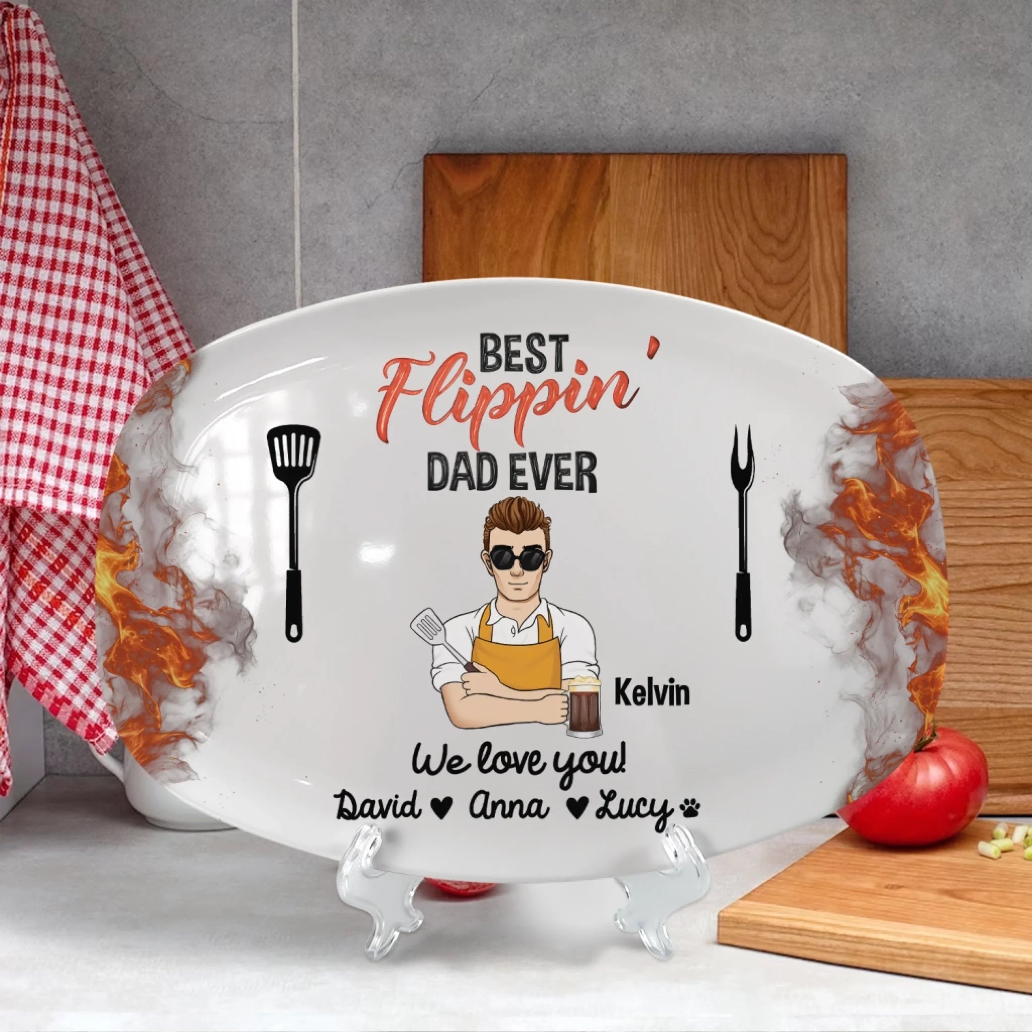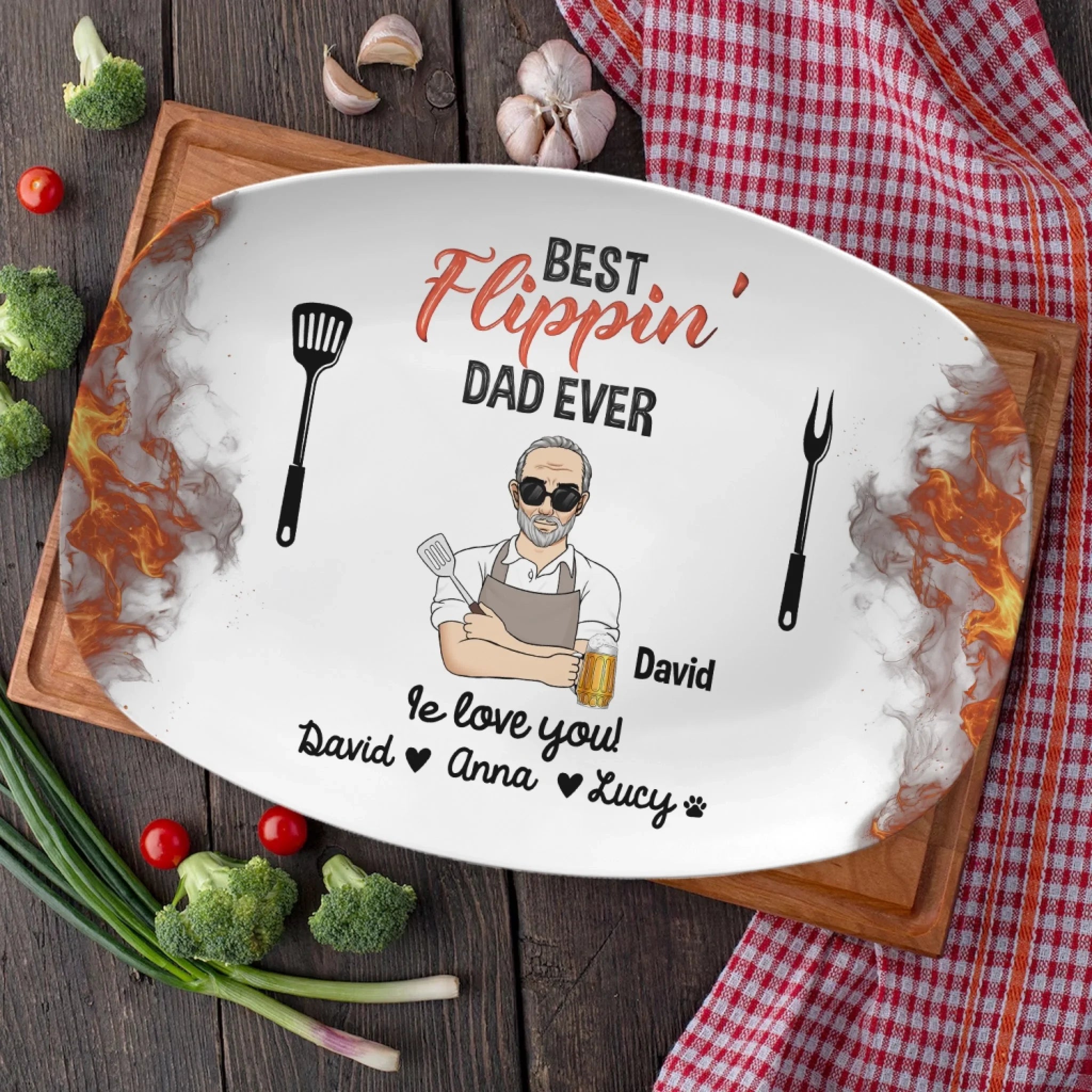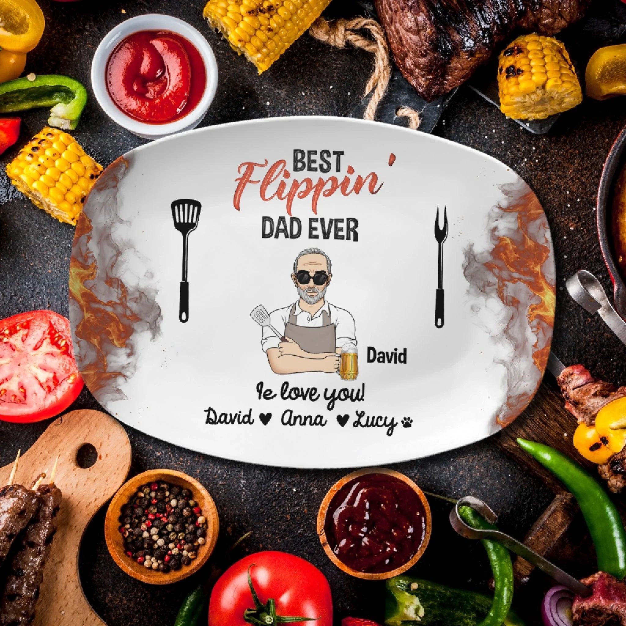 Best Flippin' Dad Ever - Personalized Platter, Funny Gift For Dad, Custom Dad's Grilling Plate