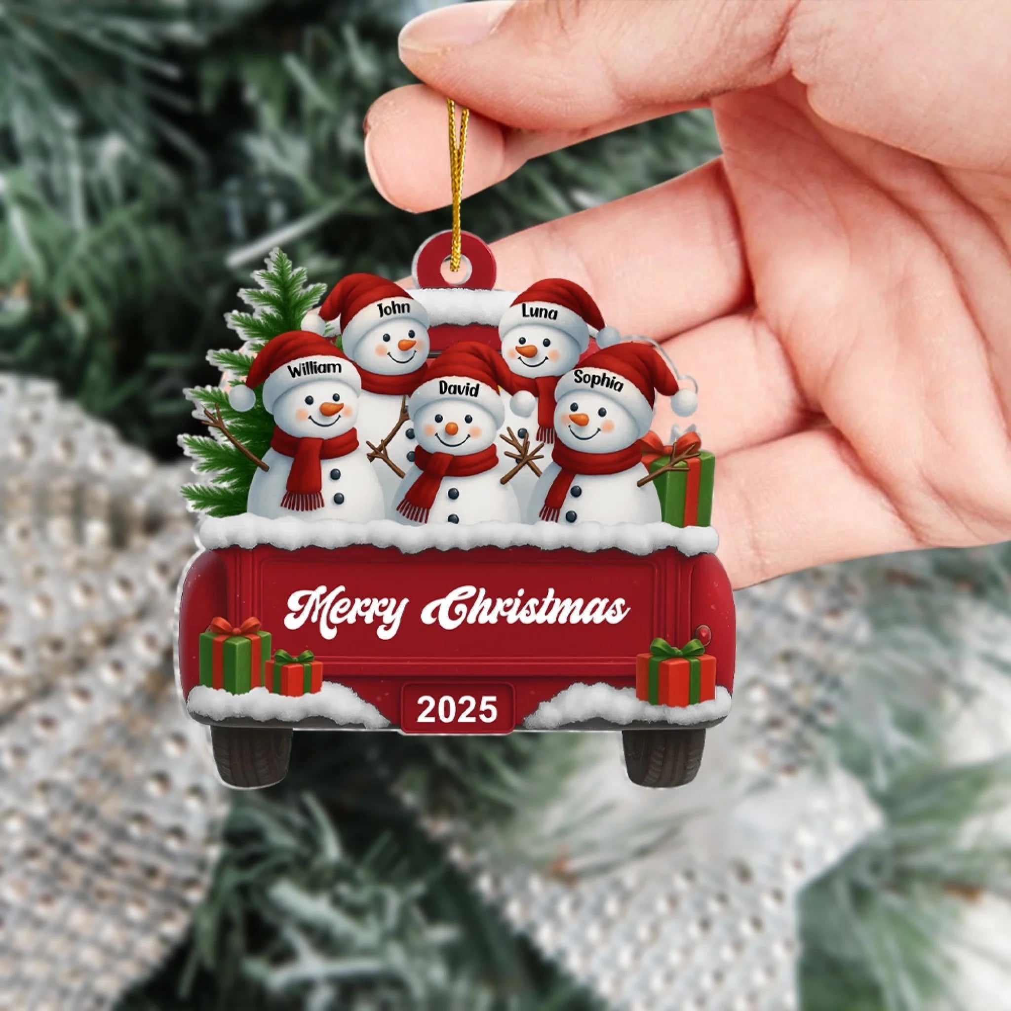 Festival Snowman Family - Personalized Acrylic Ornament, Family Ornament