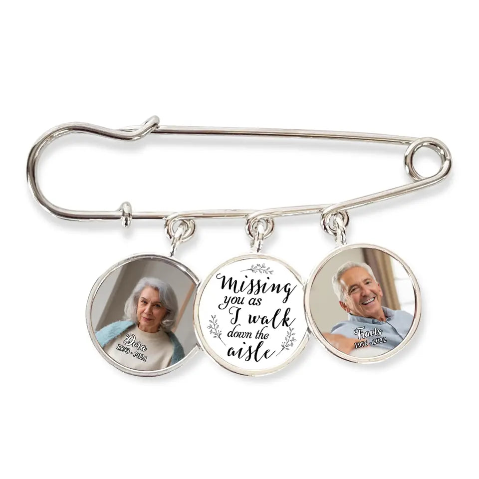 "Honor the memory of your beloved dog with our personalized lapel pin, featuring the heartfelt message 'Missing You As I Walk Down The Aisle .' This beautiful memorial gift is a touching tribute to your furry companion. Show your love and keep your spirit close with this personalized lapel pin. Explore our selection of thoughtful gifts for dog lovers today."