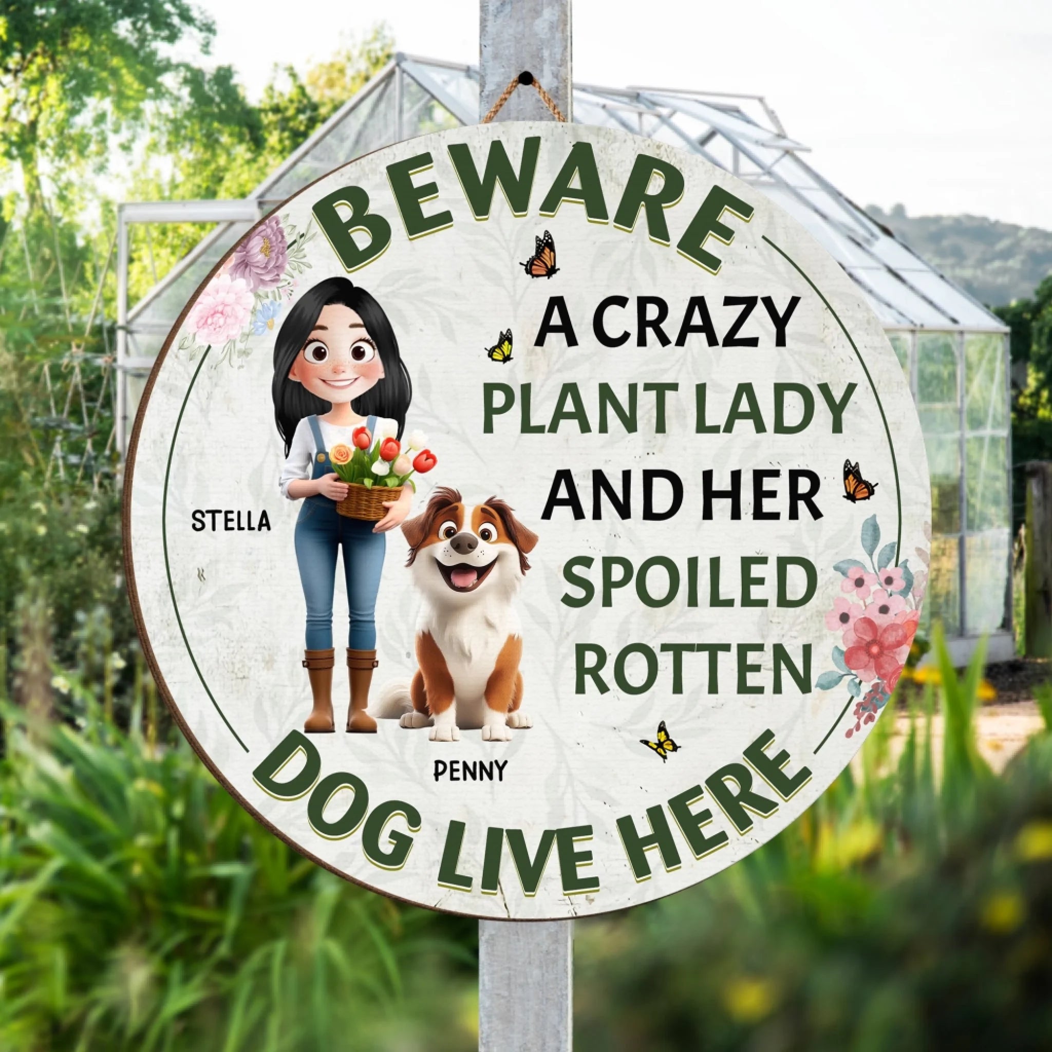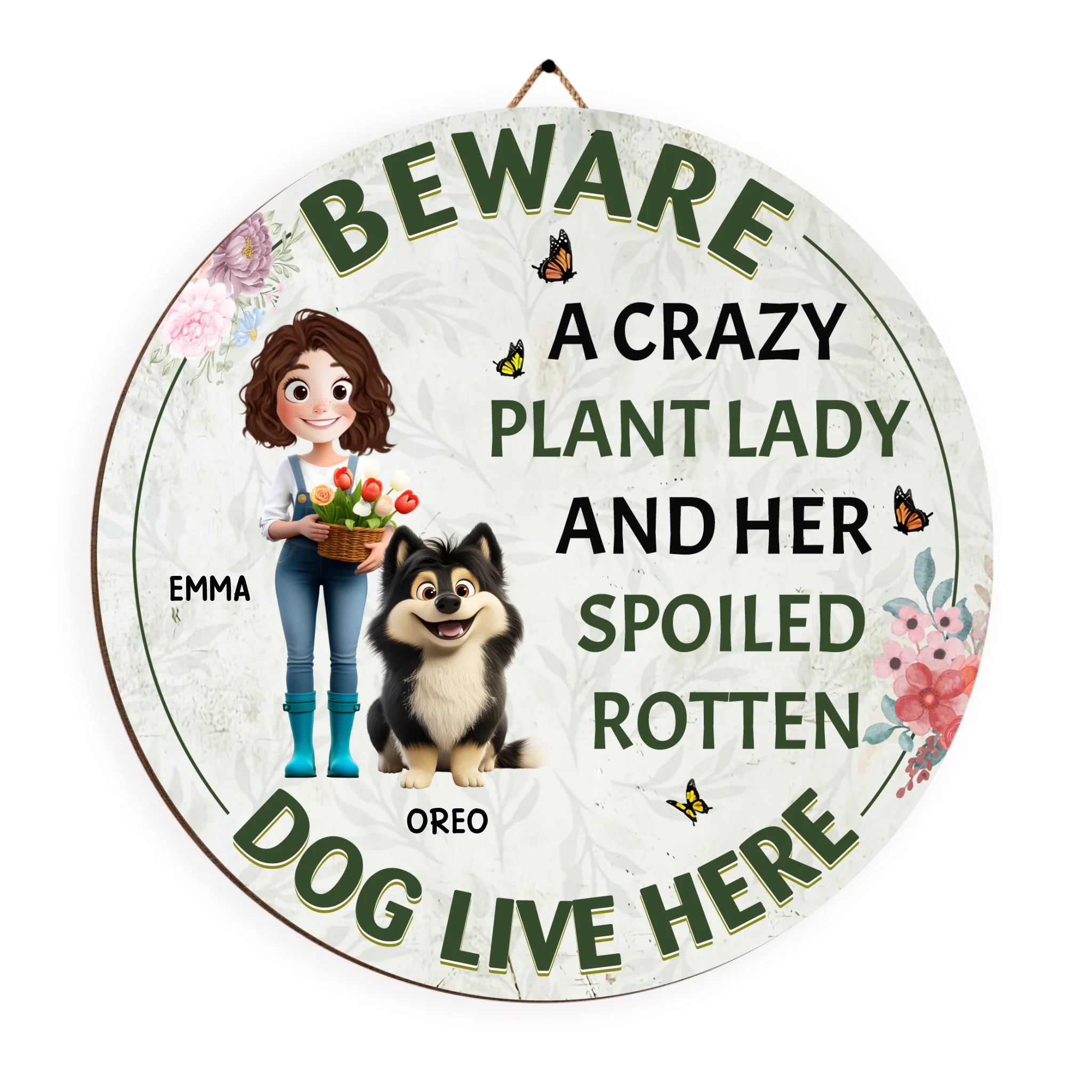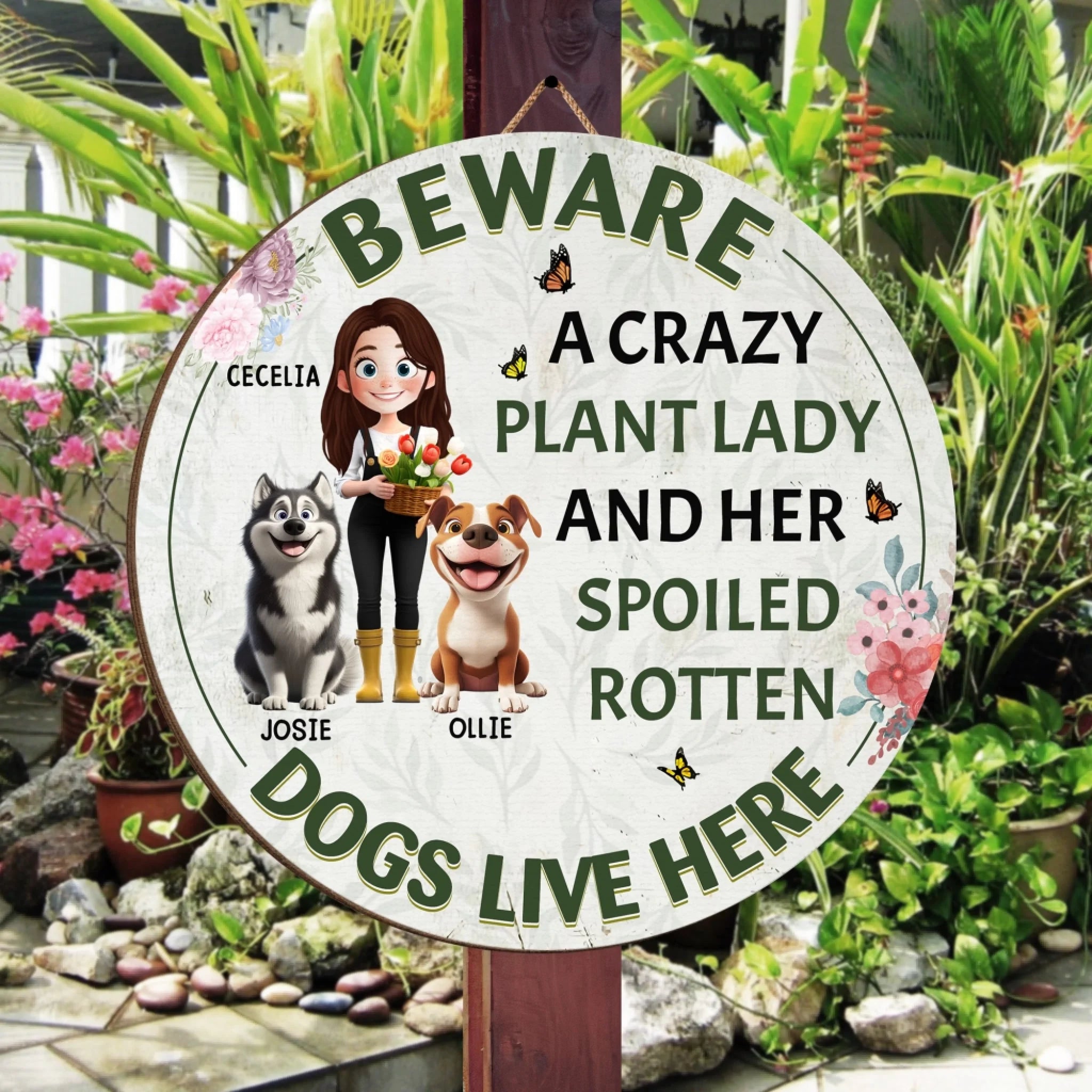 A Crazy Plant Lady And Her Spoiled Rotten Dogs Live Here - Personalized Wooden Sign, Gift for Gardener, Plant and Dog Lover Gift