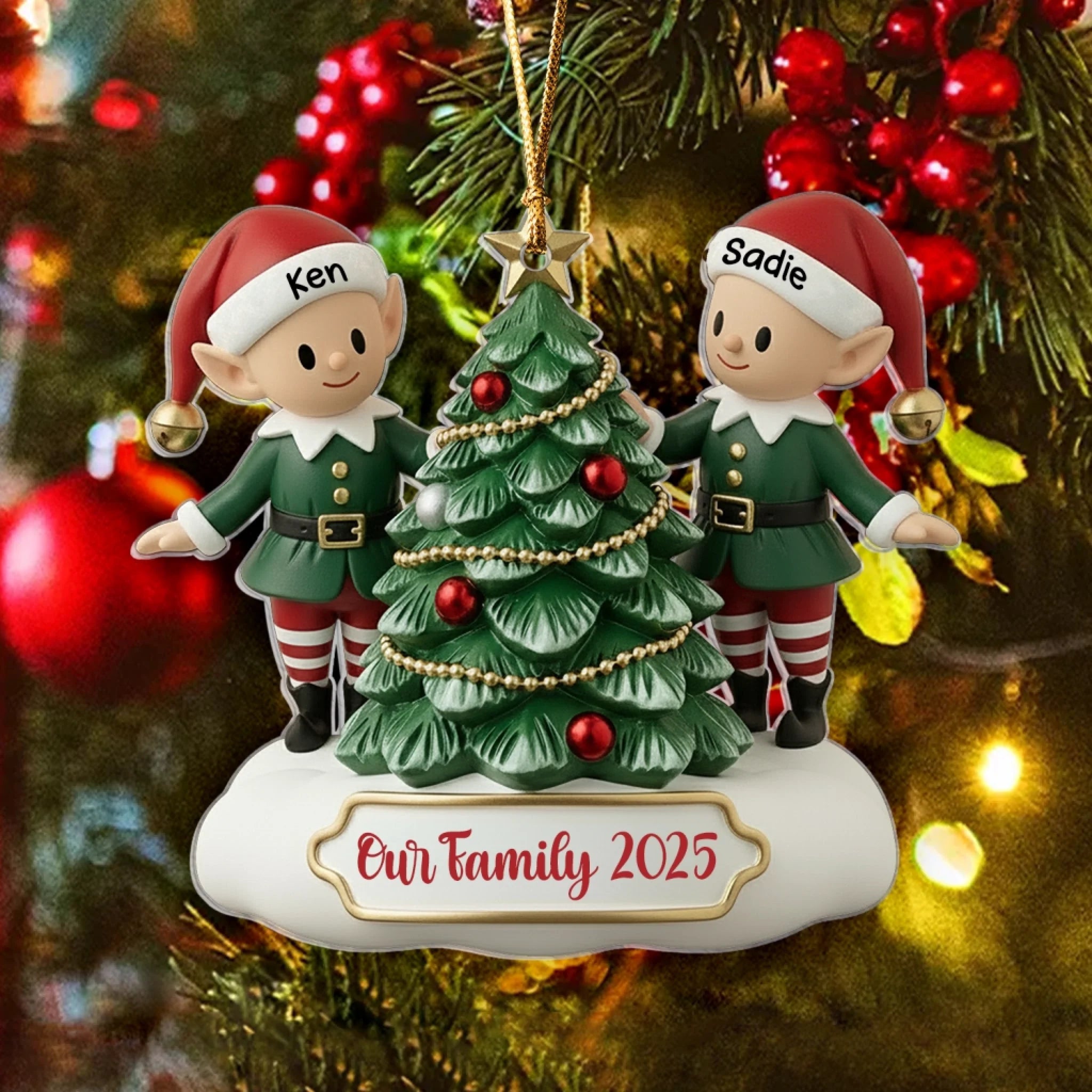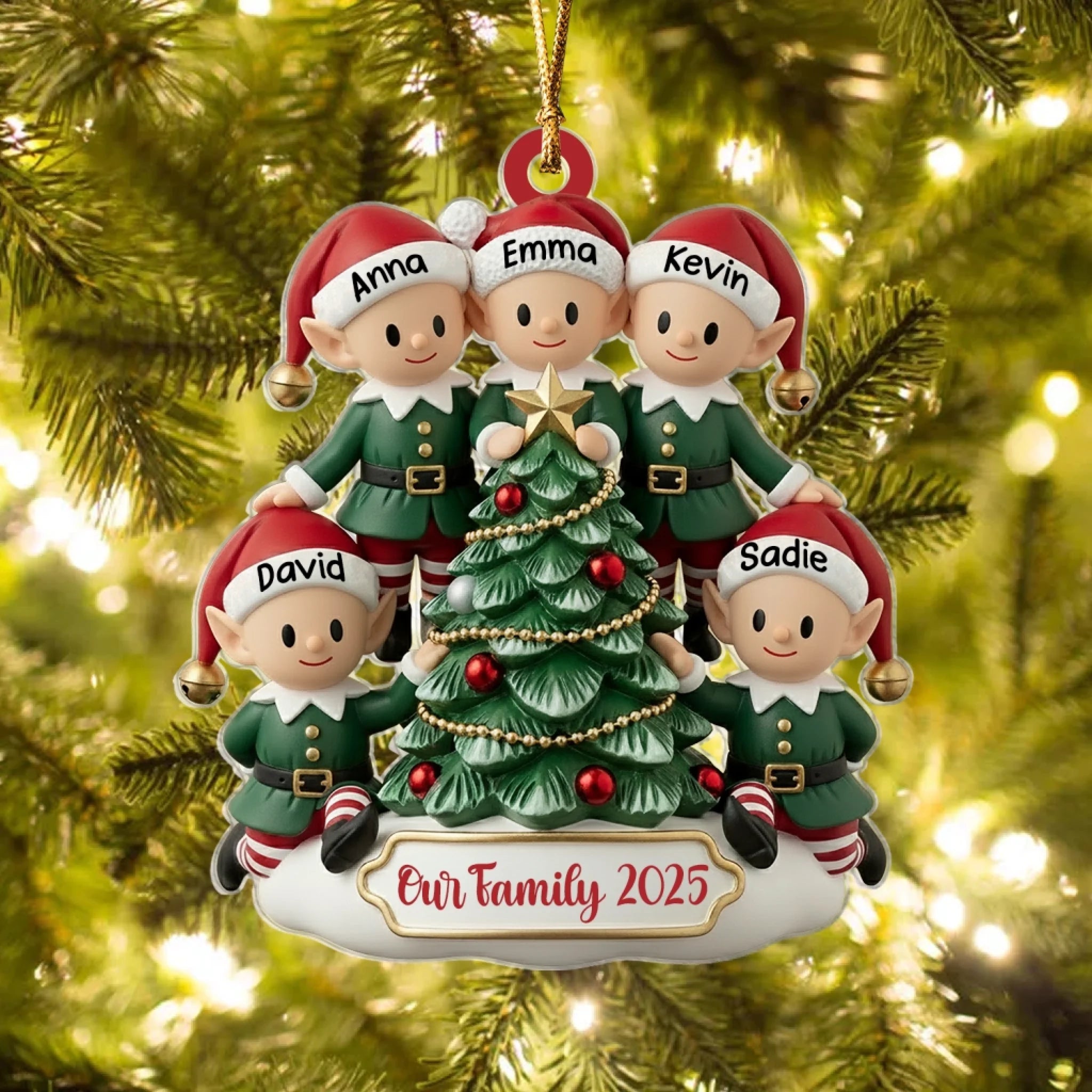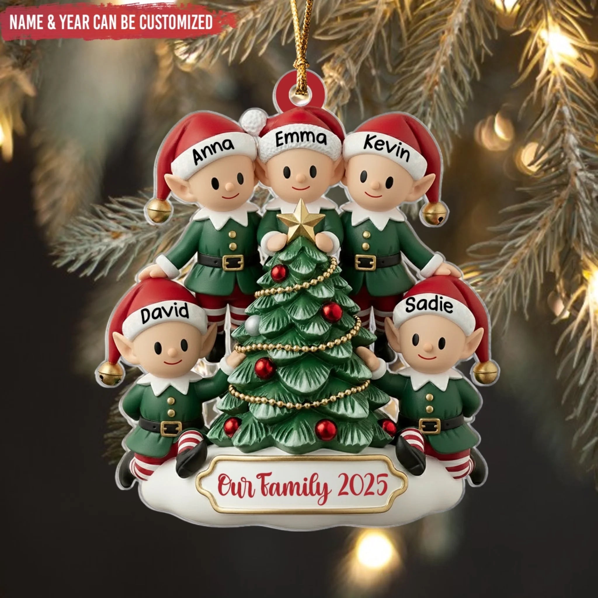 Elf Family Cute Ornament - Personalized Acrylic Ornament, Family Gift, Christmas Decor