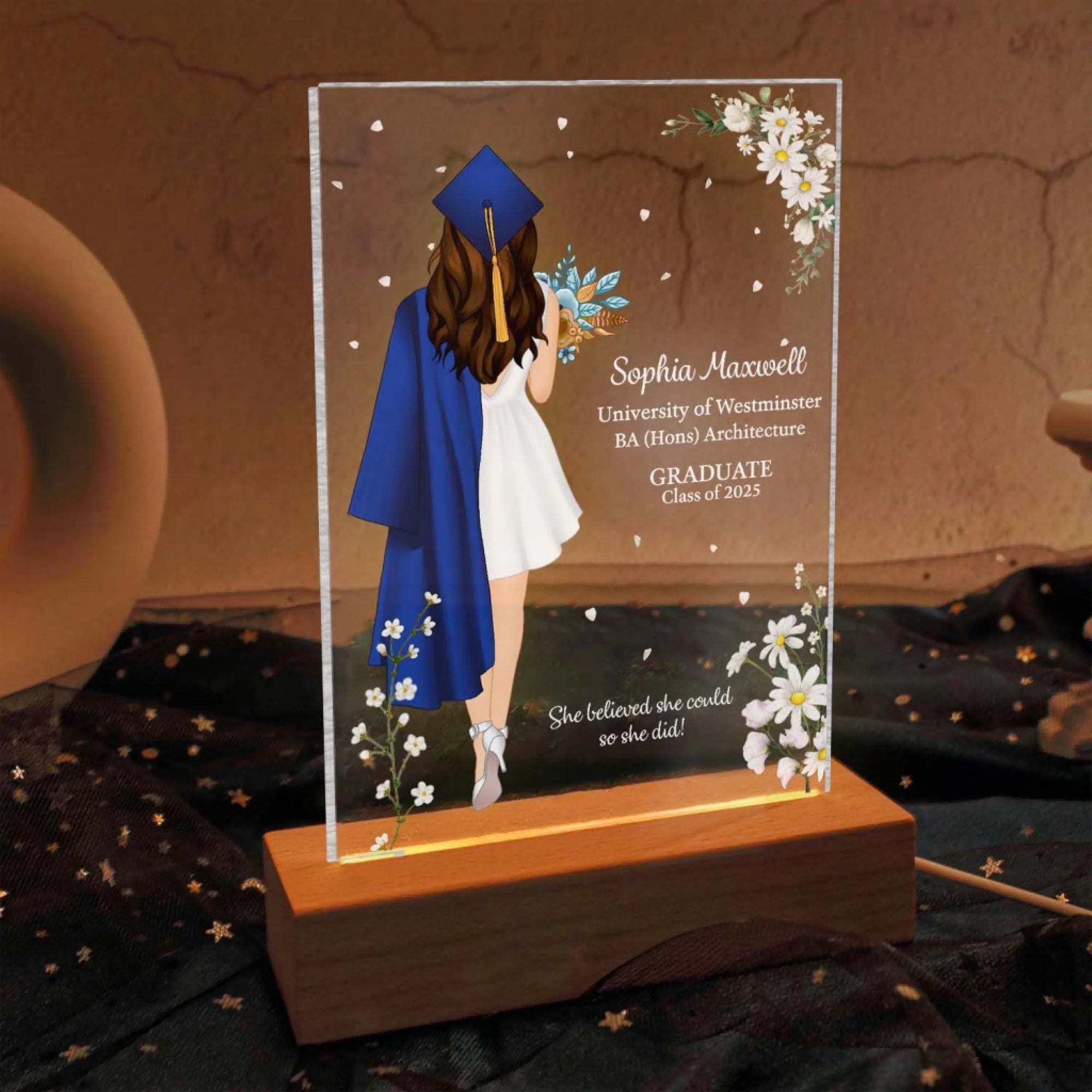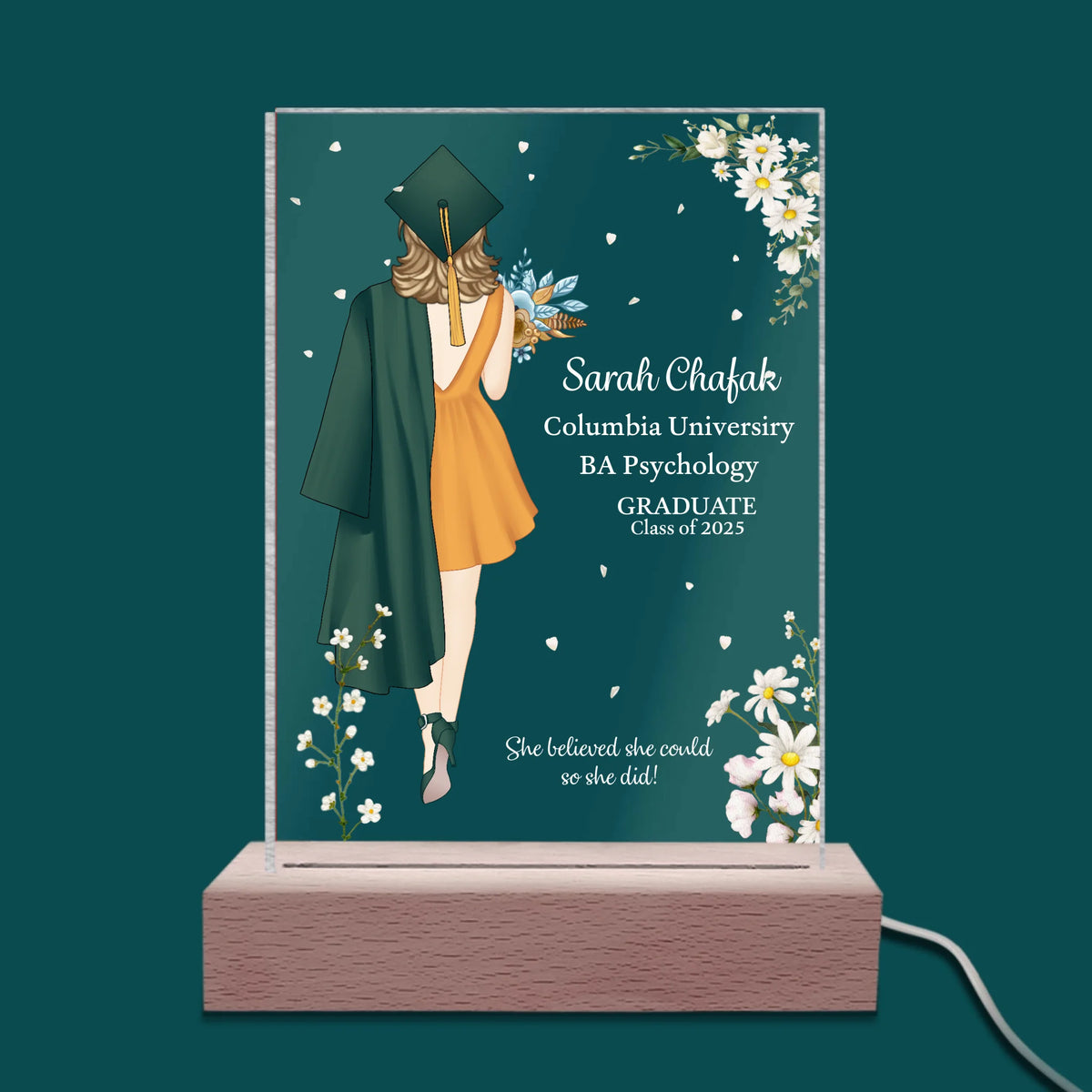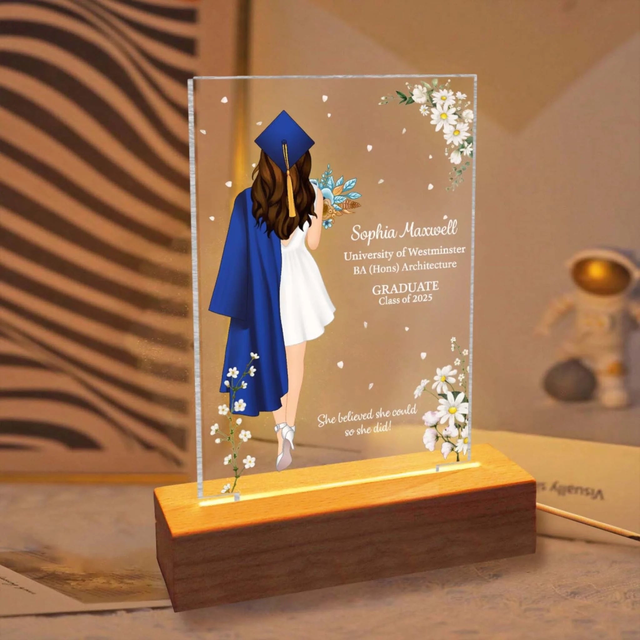 She Believed She Could So She Did - Personalized Acrylic Night Light, Custom Graduation Gift