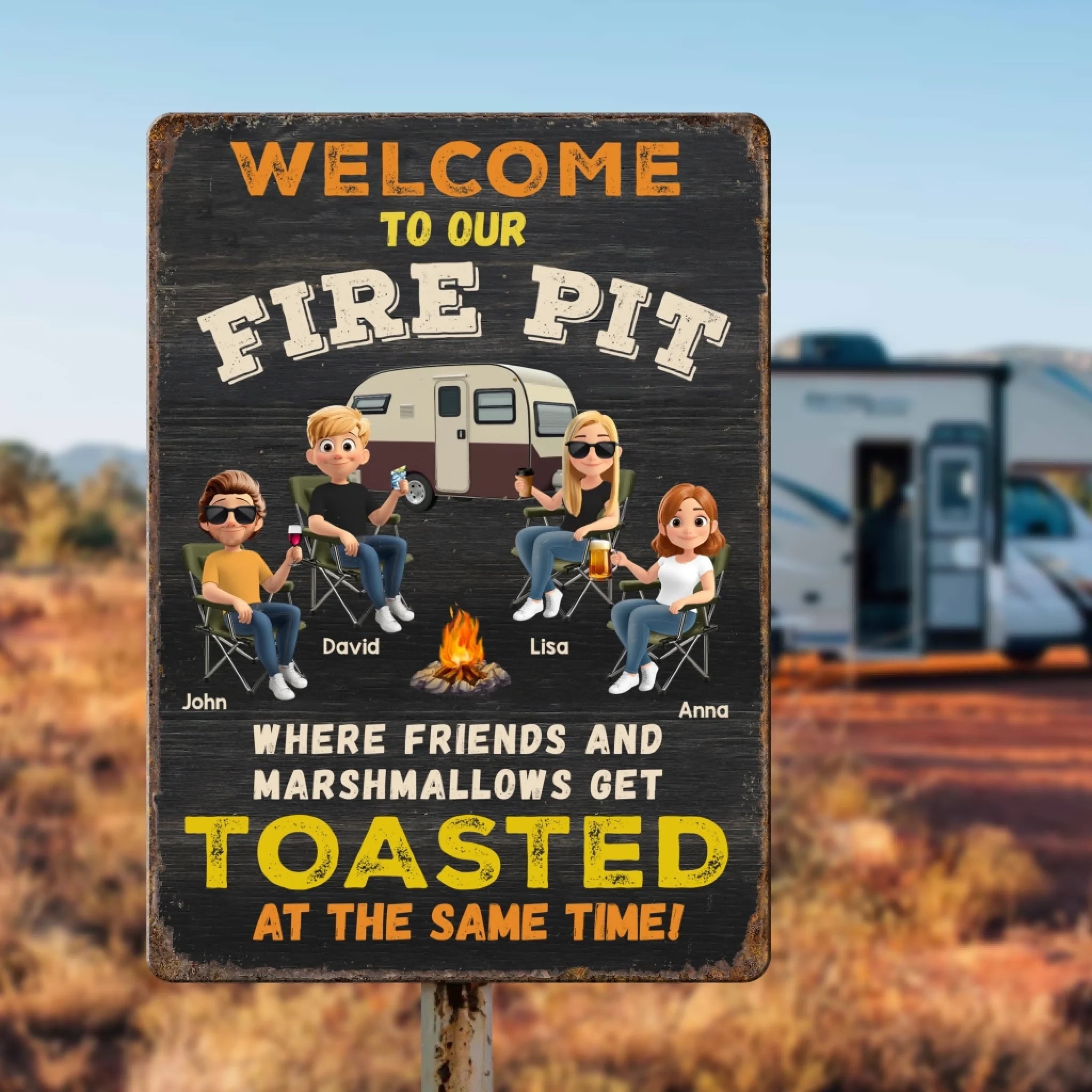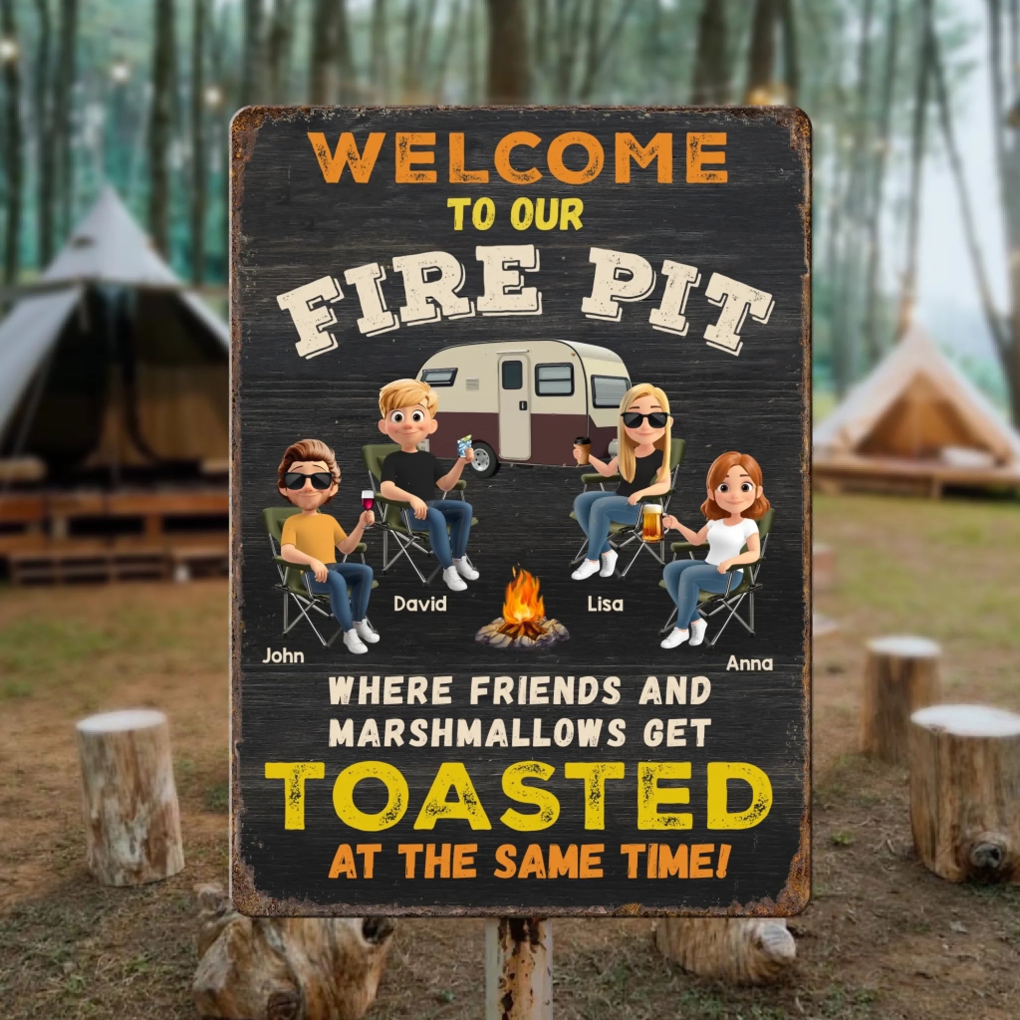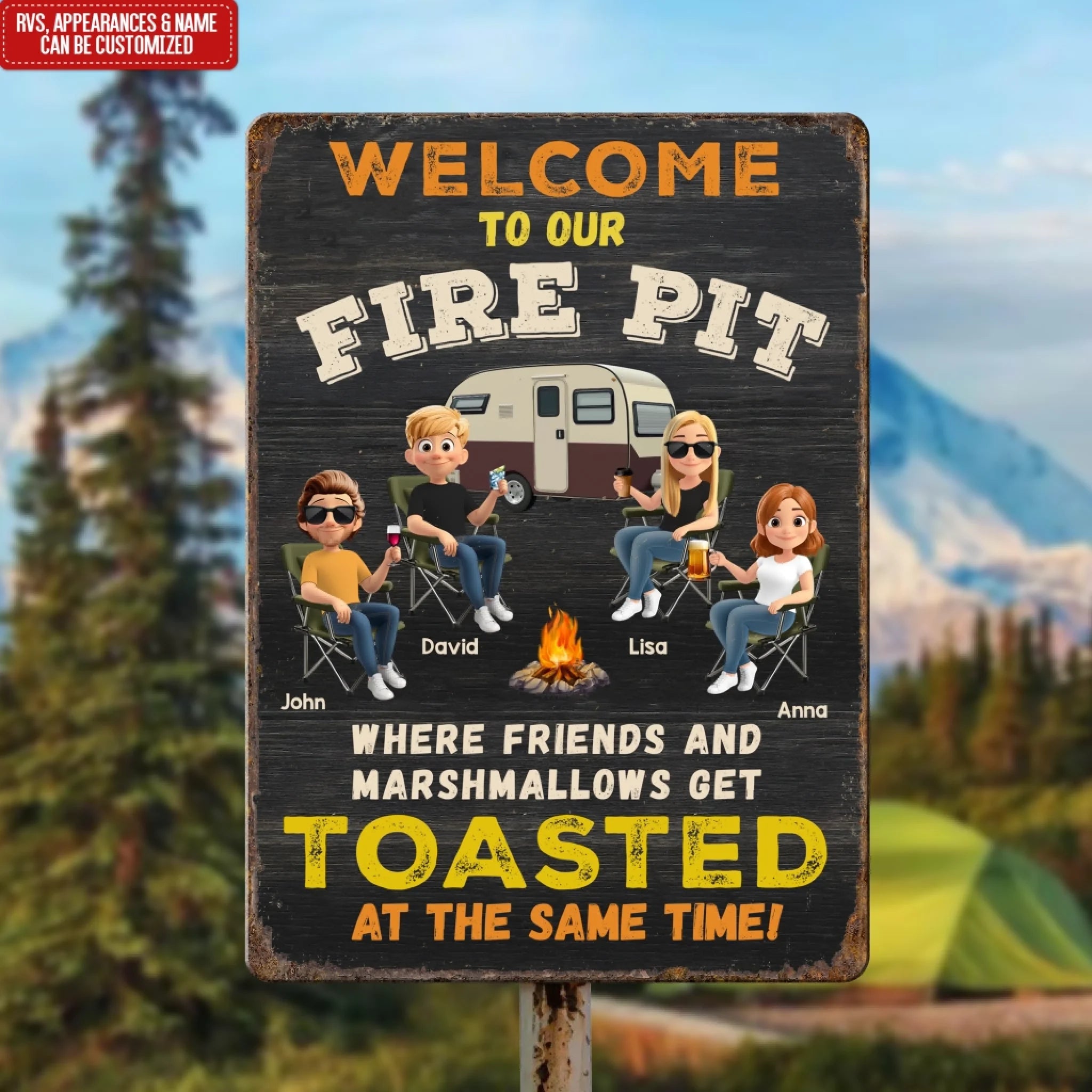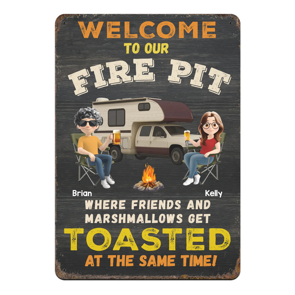 Welcome To Our Firepit Camping - Personalized Metal Sign, Camping Gift For Camping Lovers