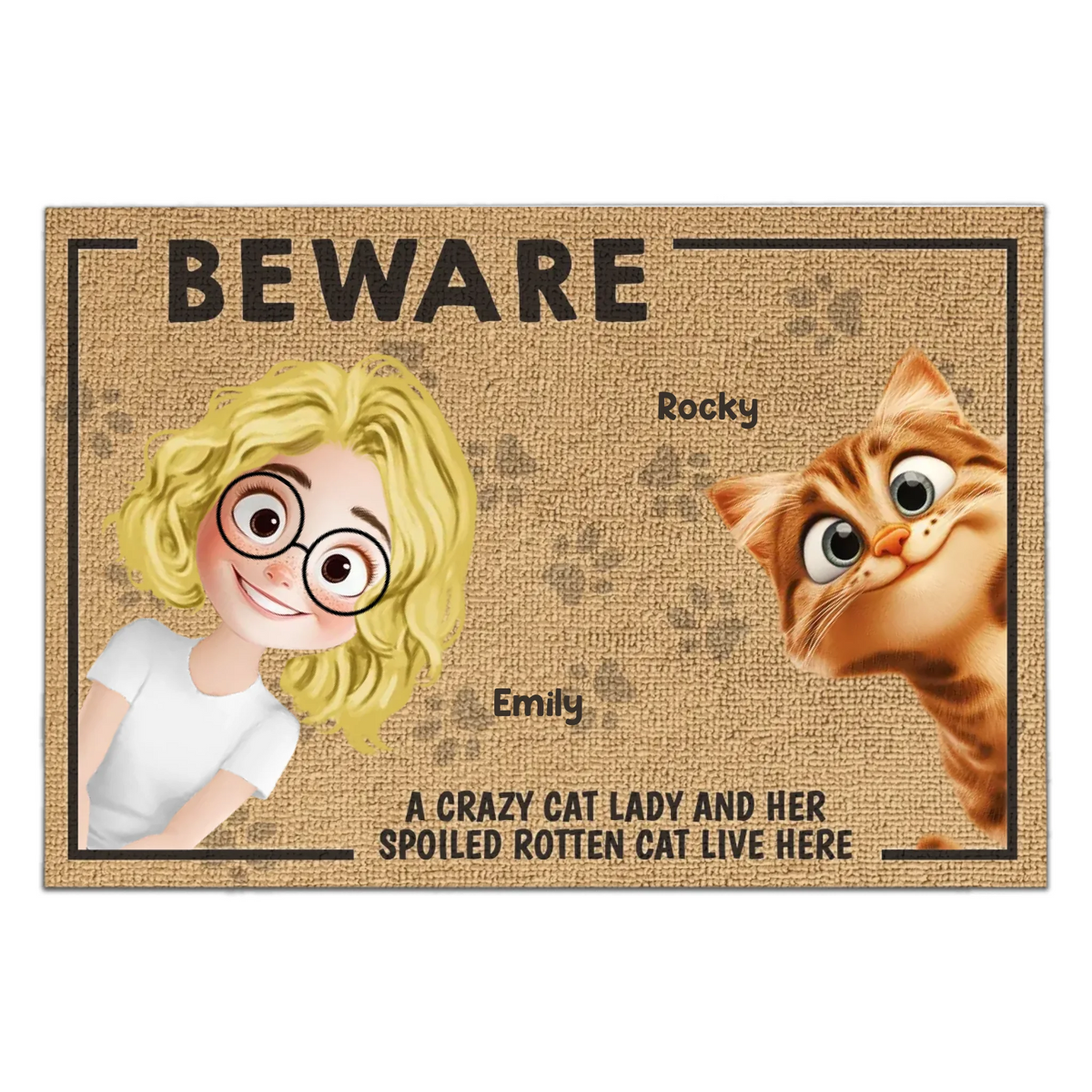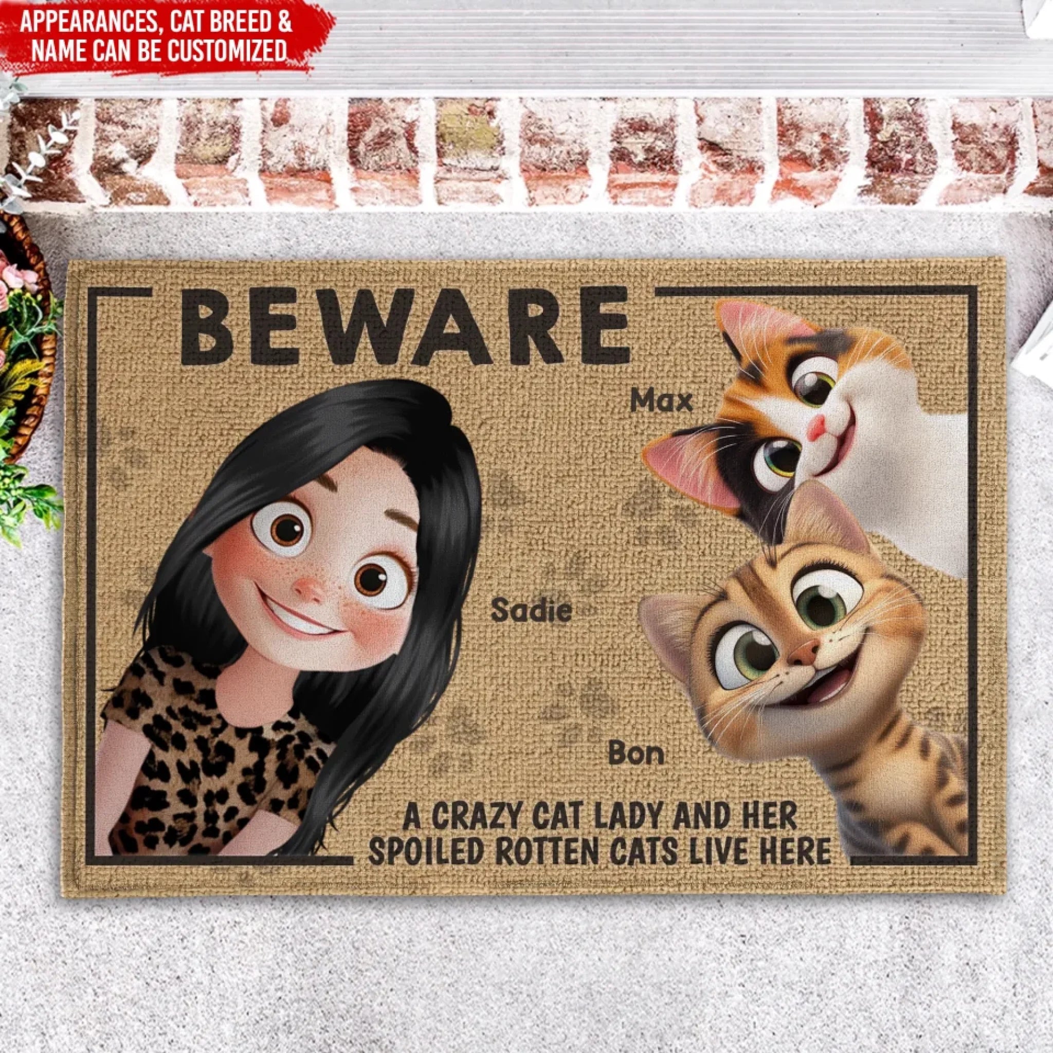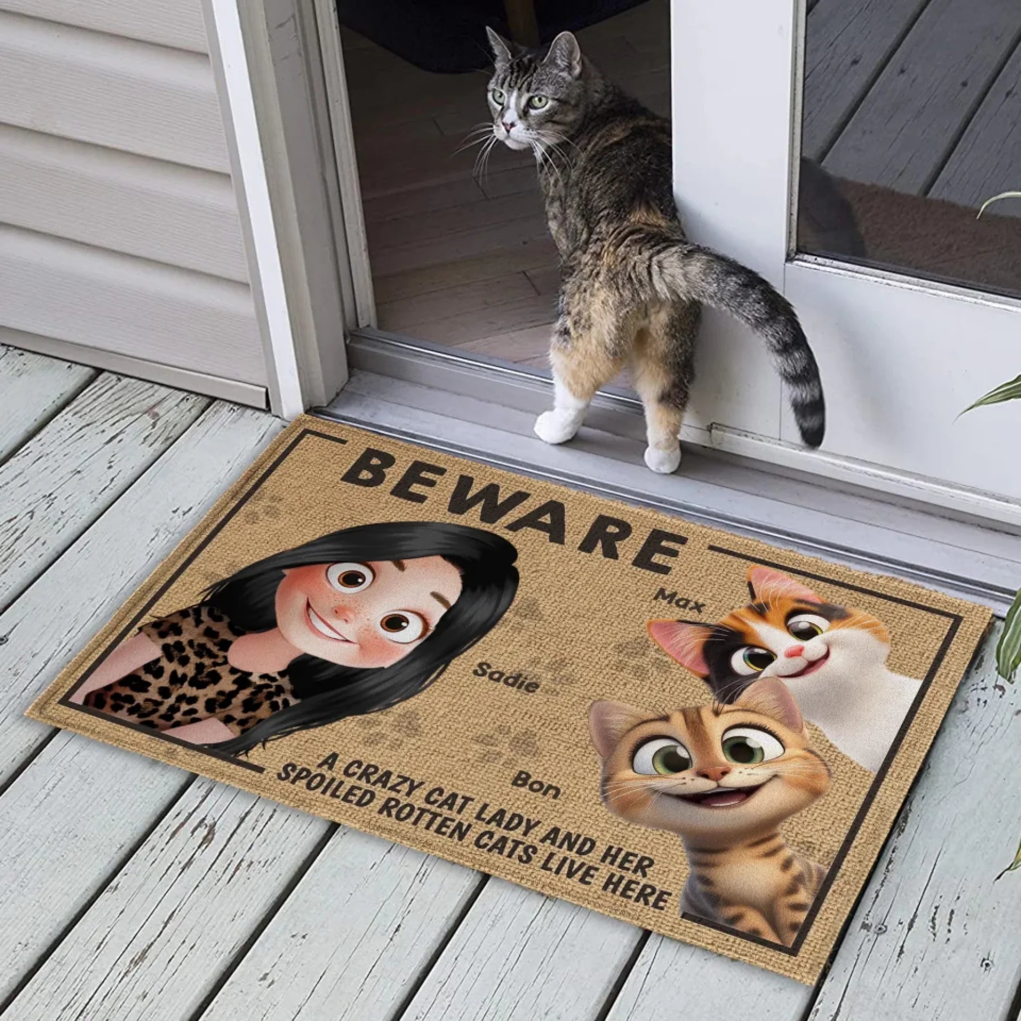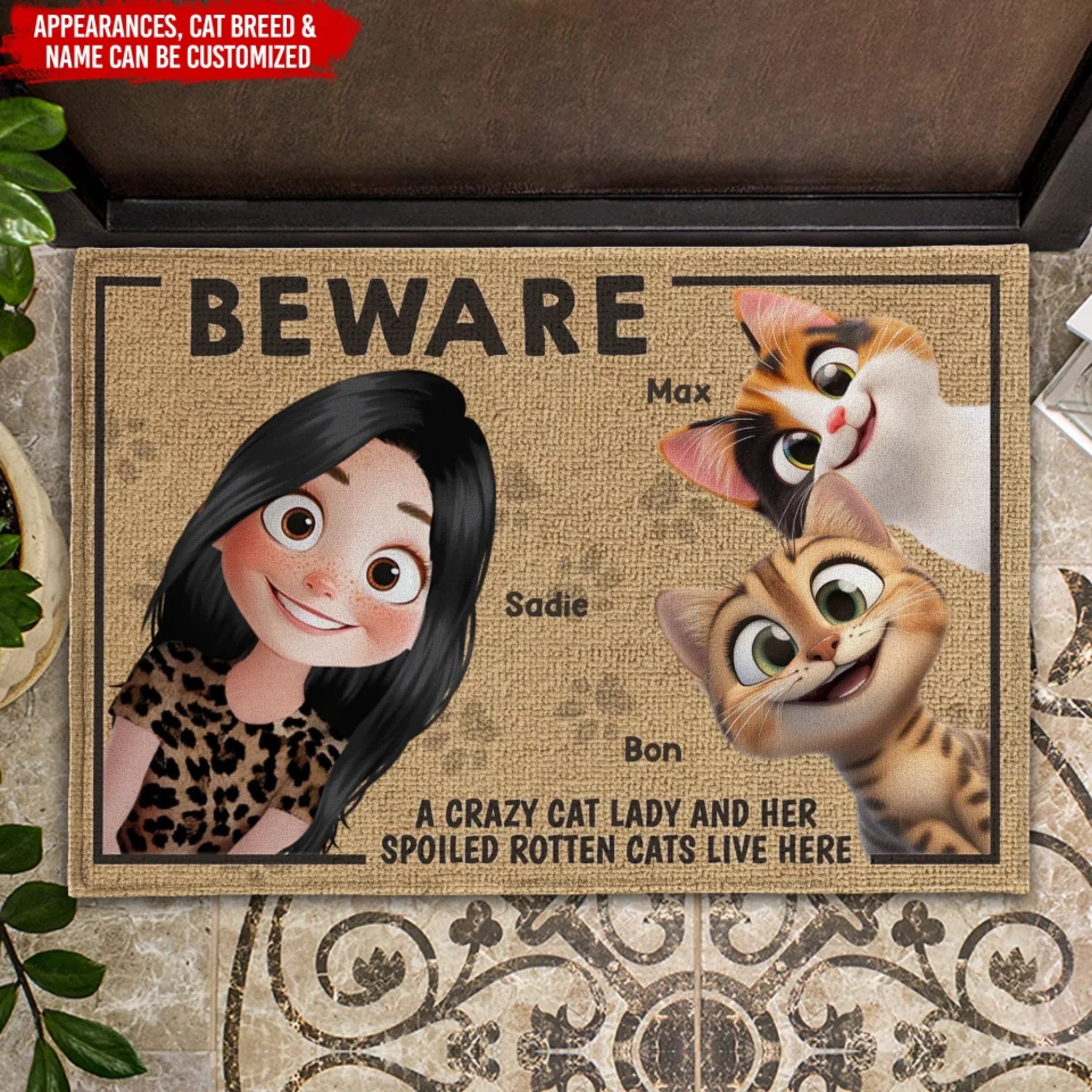 A Crazy Cat Lady And Her Spoiled Rotten Cats Live Here - Personalized Doormat, Funny Gift for Cat Lover, Cat Mom Gift