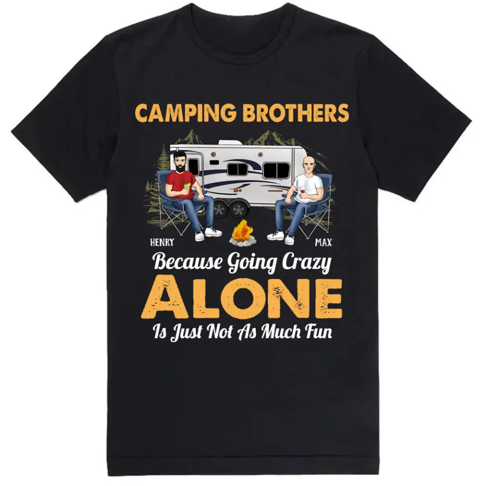 Camping Brothers Because Going Crazy Alone Is Just Not As Much Fun - Personalized T-Shirt, Gift For Brothers