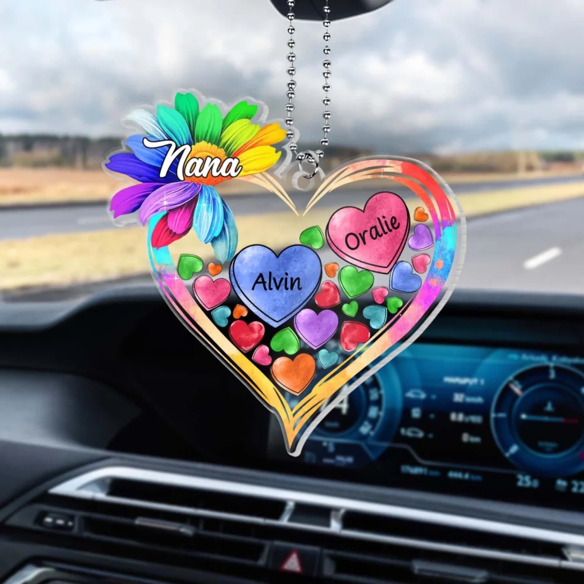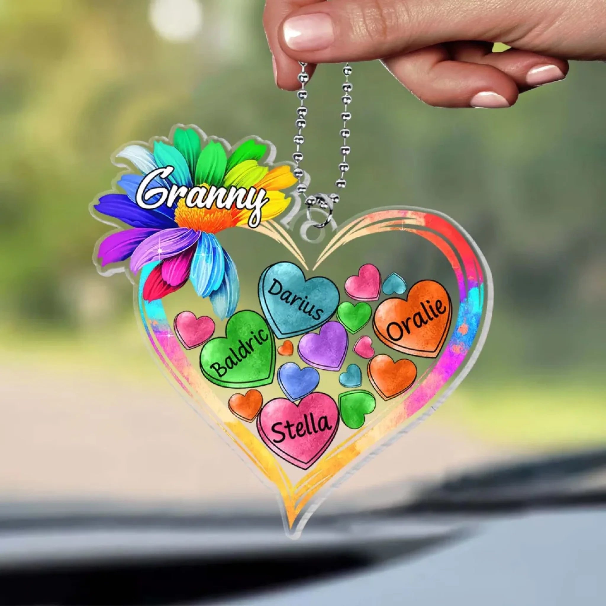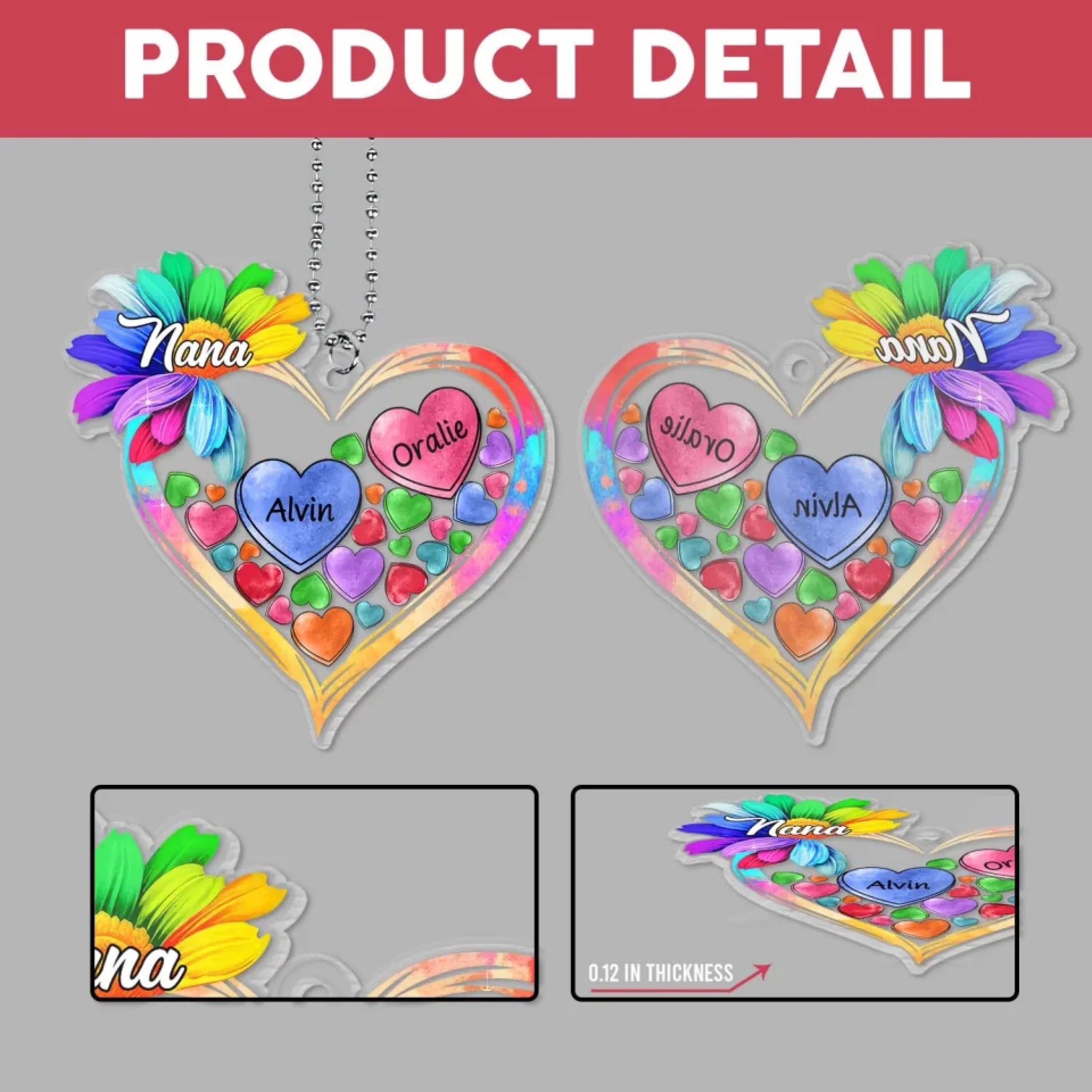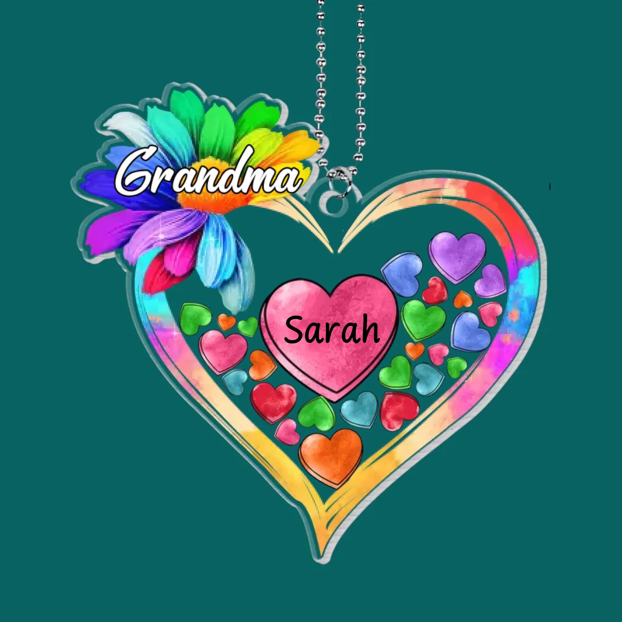 Colorful Sunflower Grandma Mom Heart Loads Of Love Personalized Acrylic Car Hanger, Gift For Grandma/ Mama