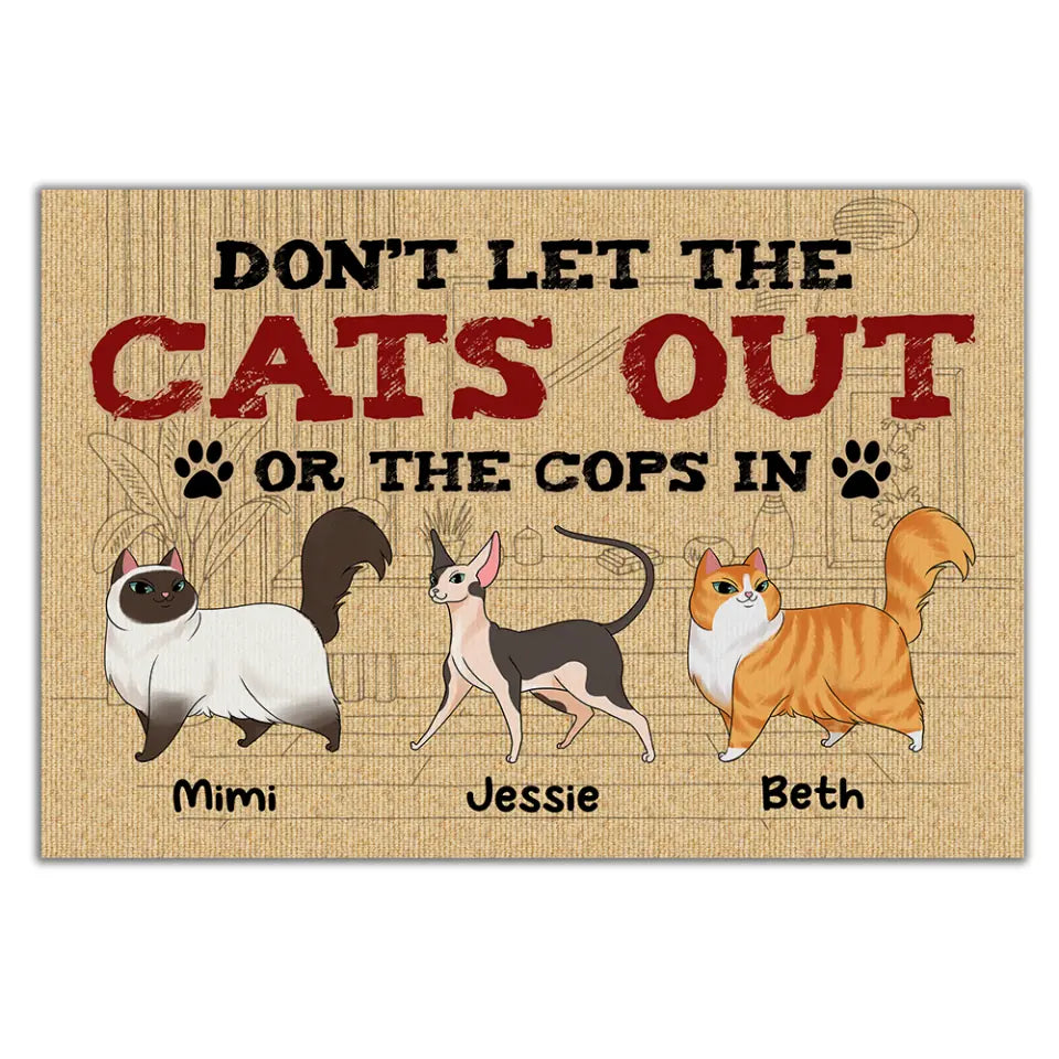 Don’t Let The Cats Out Or The Cops In - Personalized Cat Doormat - Personalized Funny Doormat - Cat Lovers Gift