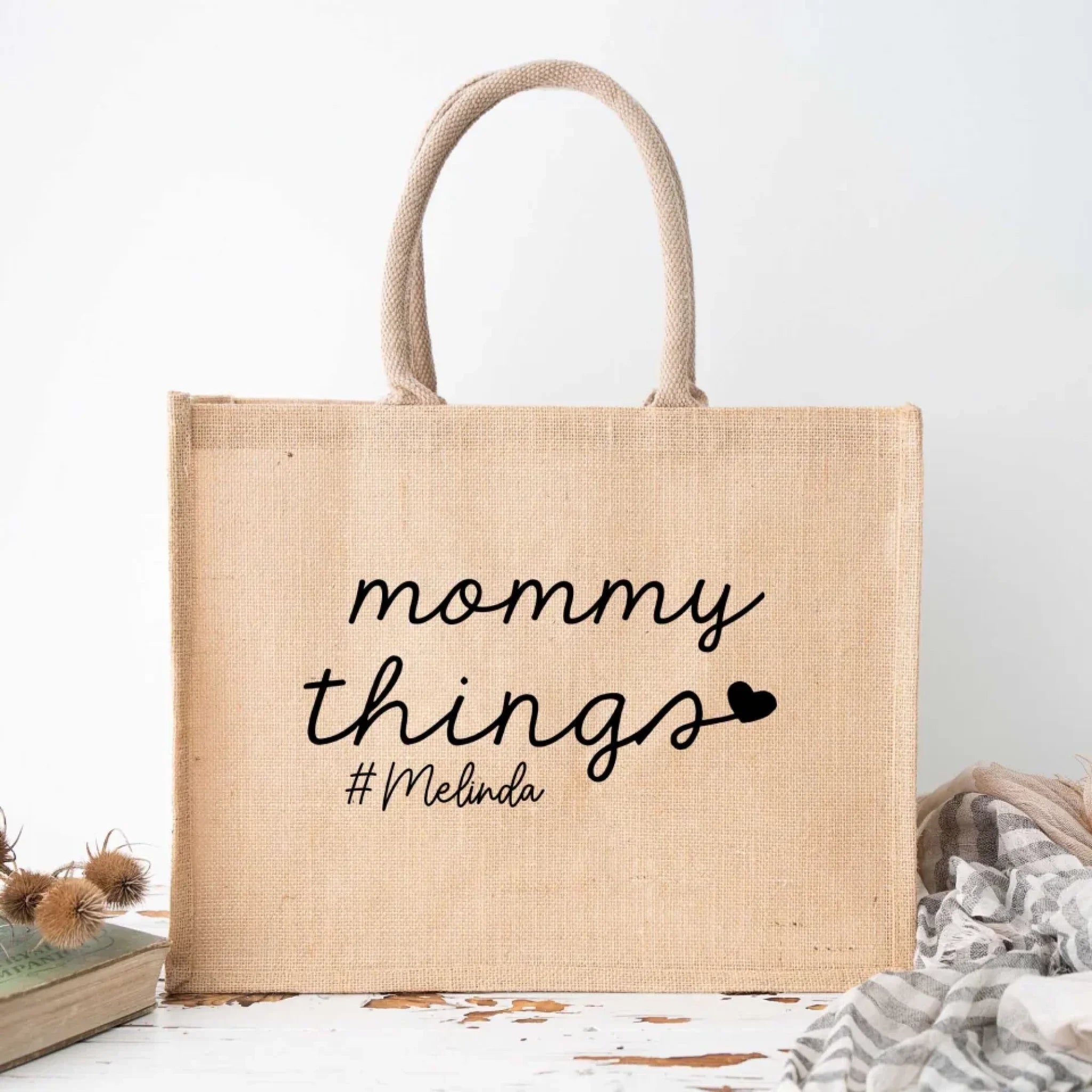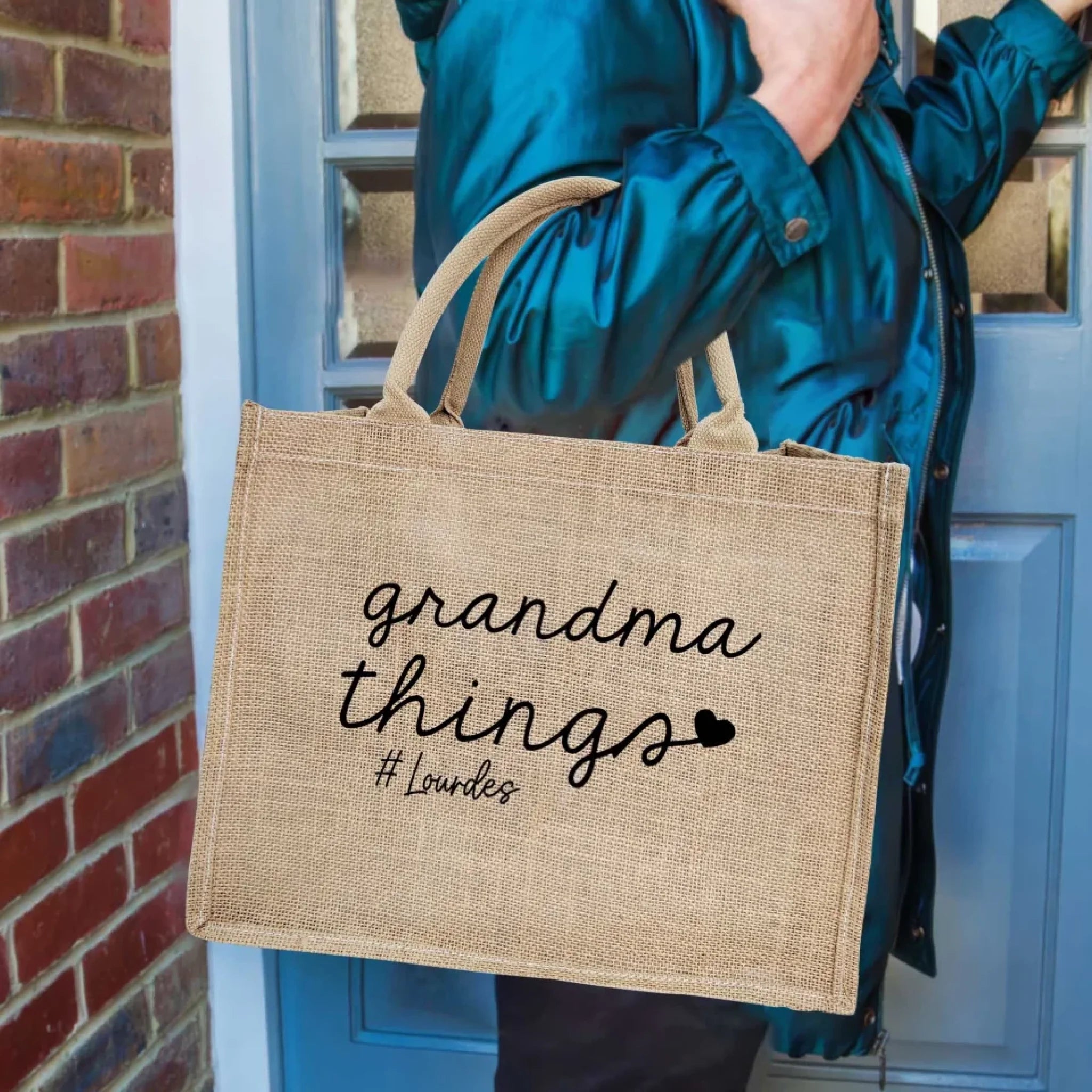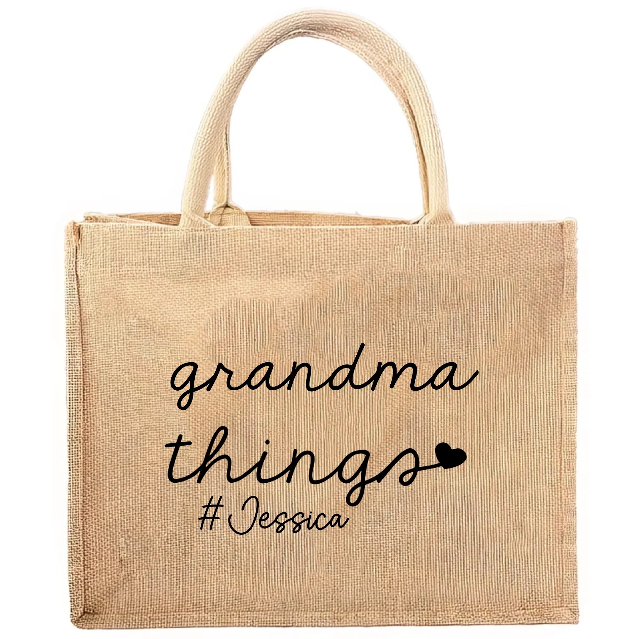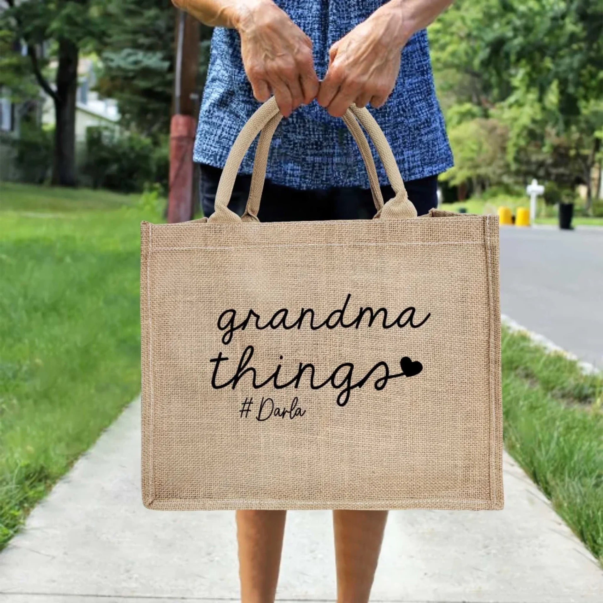 Grandma Things - Personalized Jute Tote Bag, Gift For Mom/Grandma, Mother's Day Gift