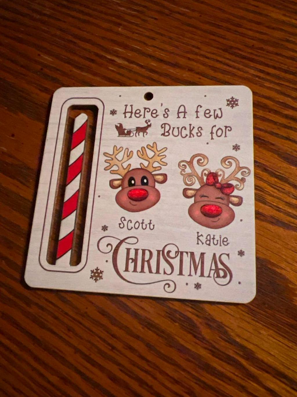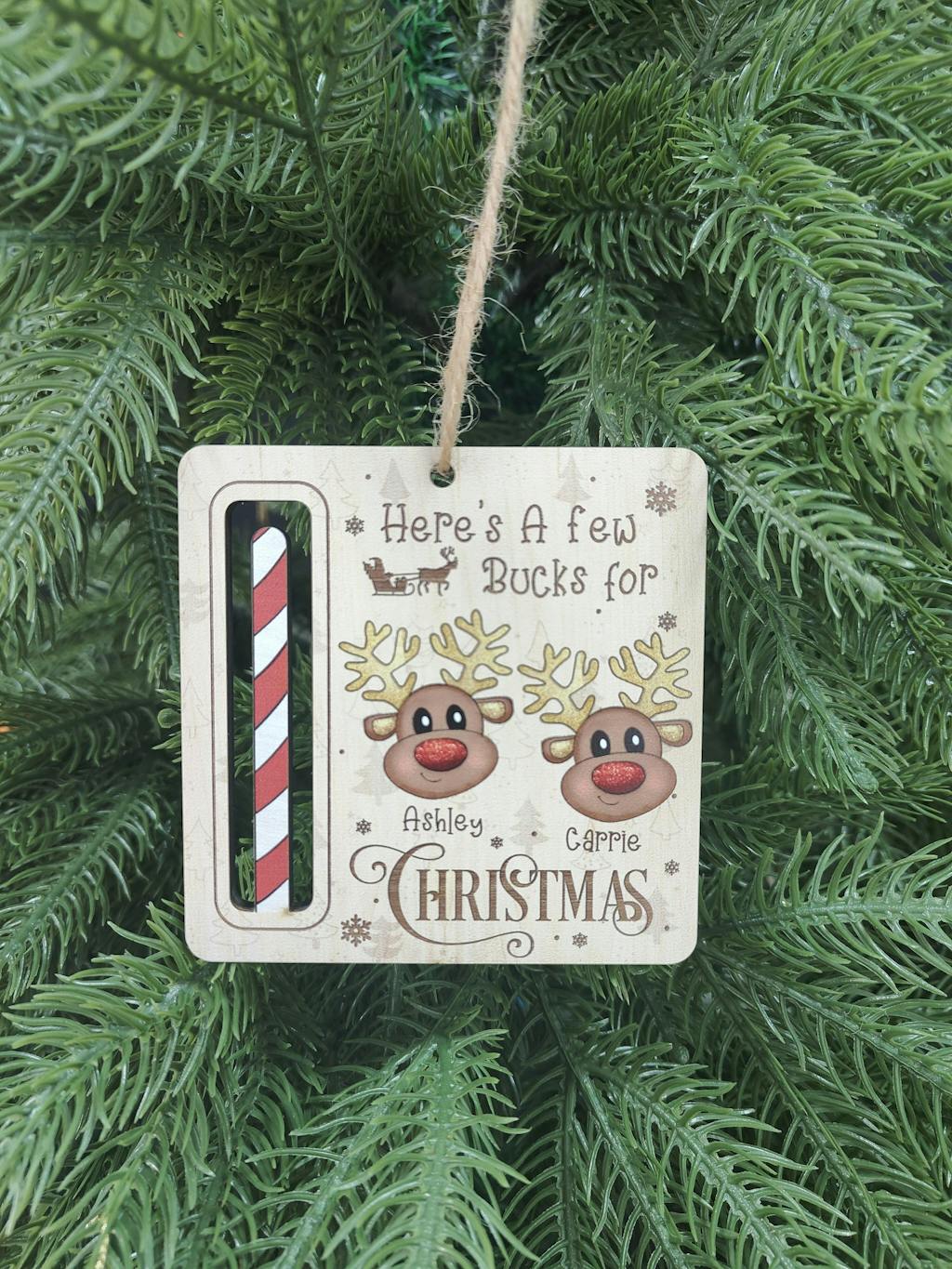 Here's A Few Bucks For Christmas - Personalized Wooden Ornament, Gift