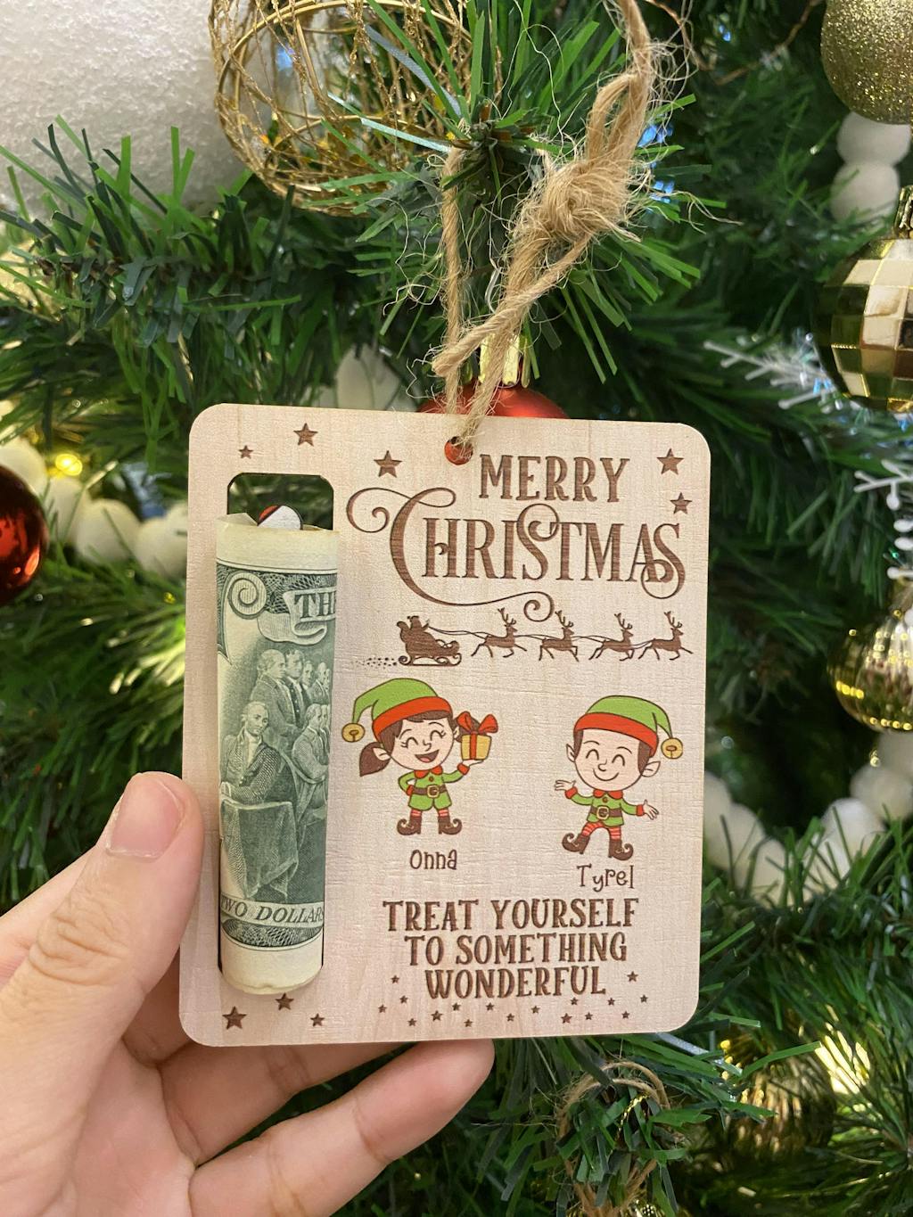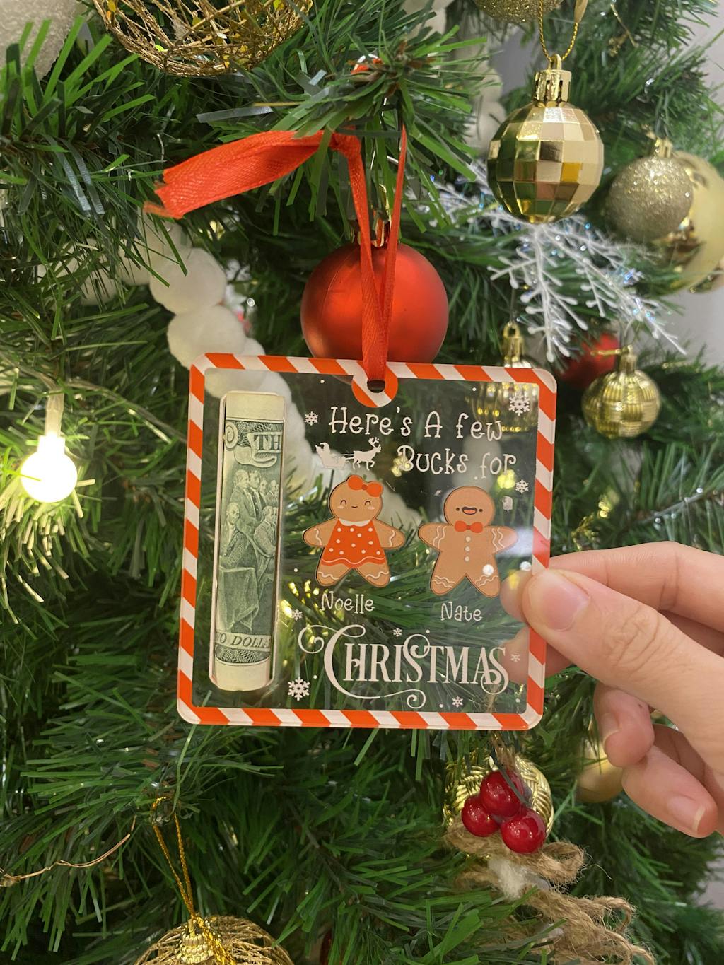 This ornament brings a thoughtful and meaningful twist to traditional gift-giving by presenting money in a unique way.