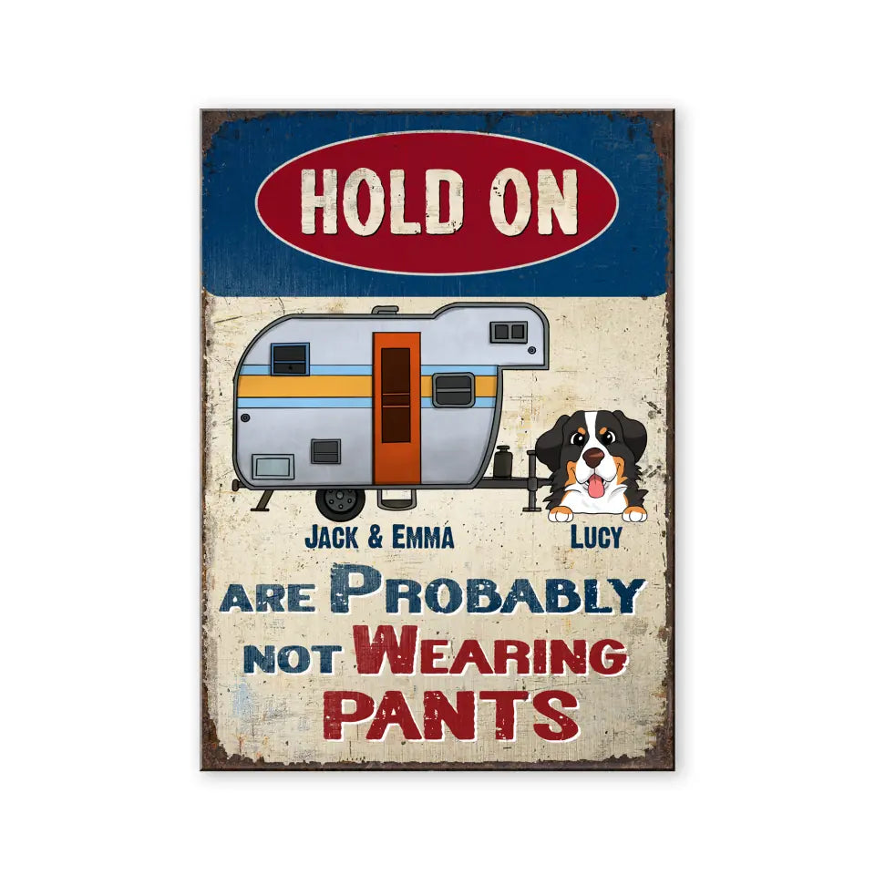 Hold On We Are Probably Not Wearing Pants - Personalized Camping Metal Sign