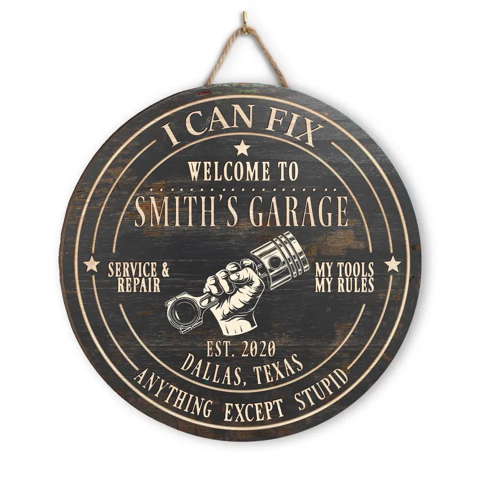 I Can Fixe Anything Except Stupid - Custom Garage Wood Sign, Gifts For Family