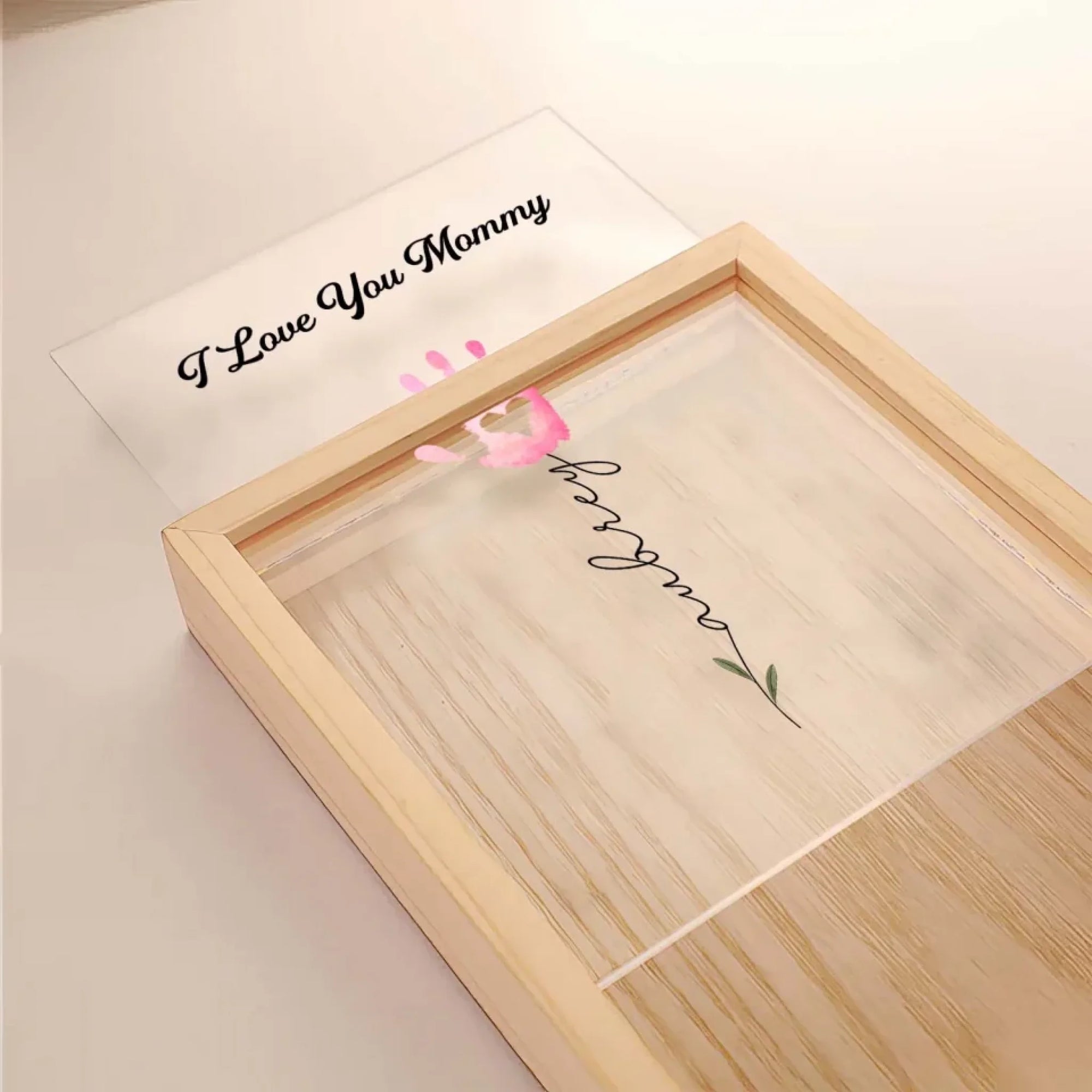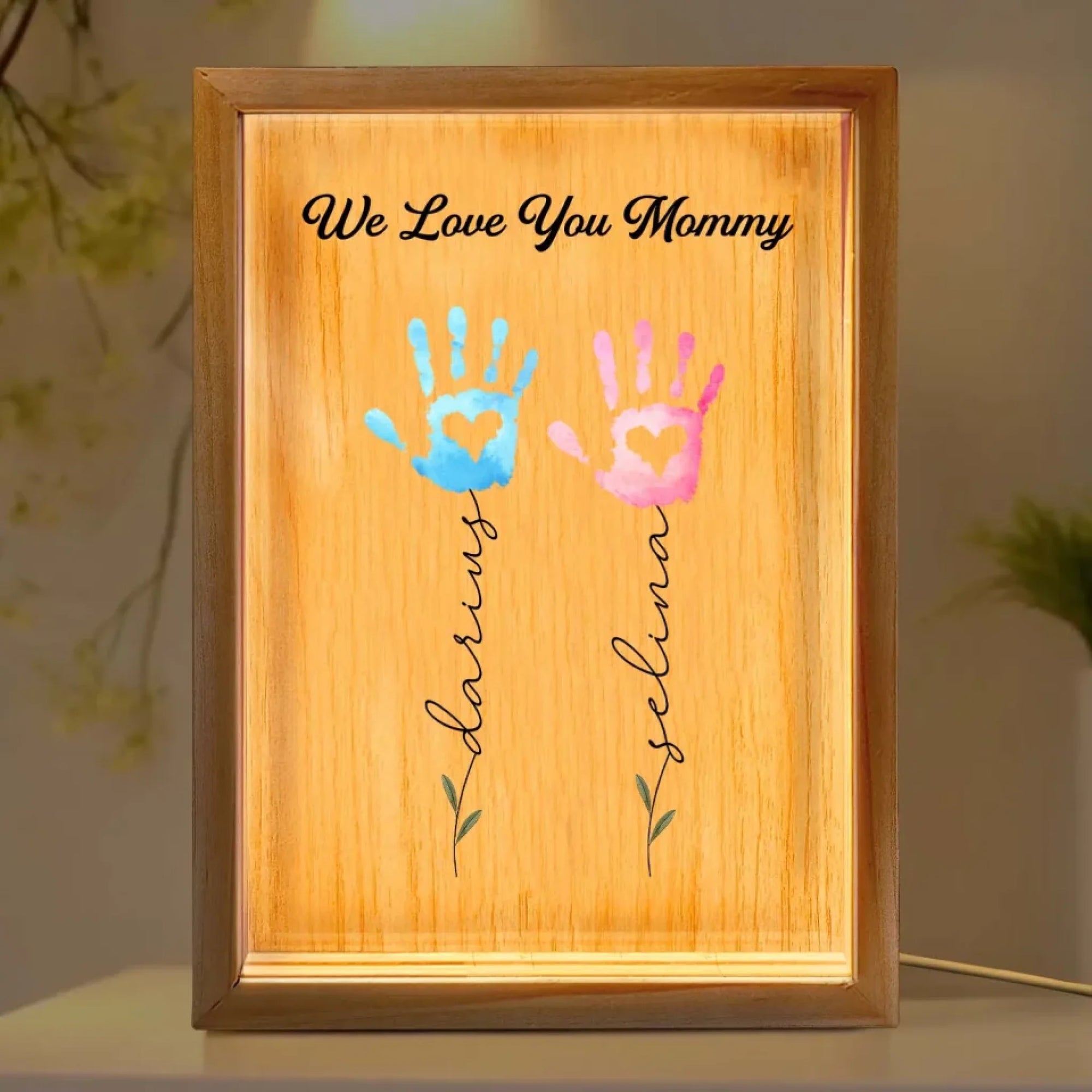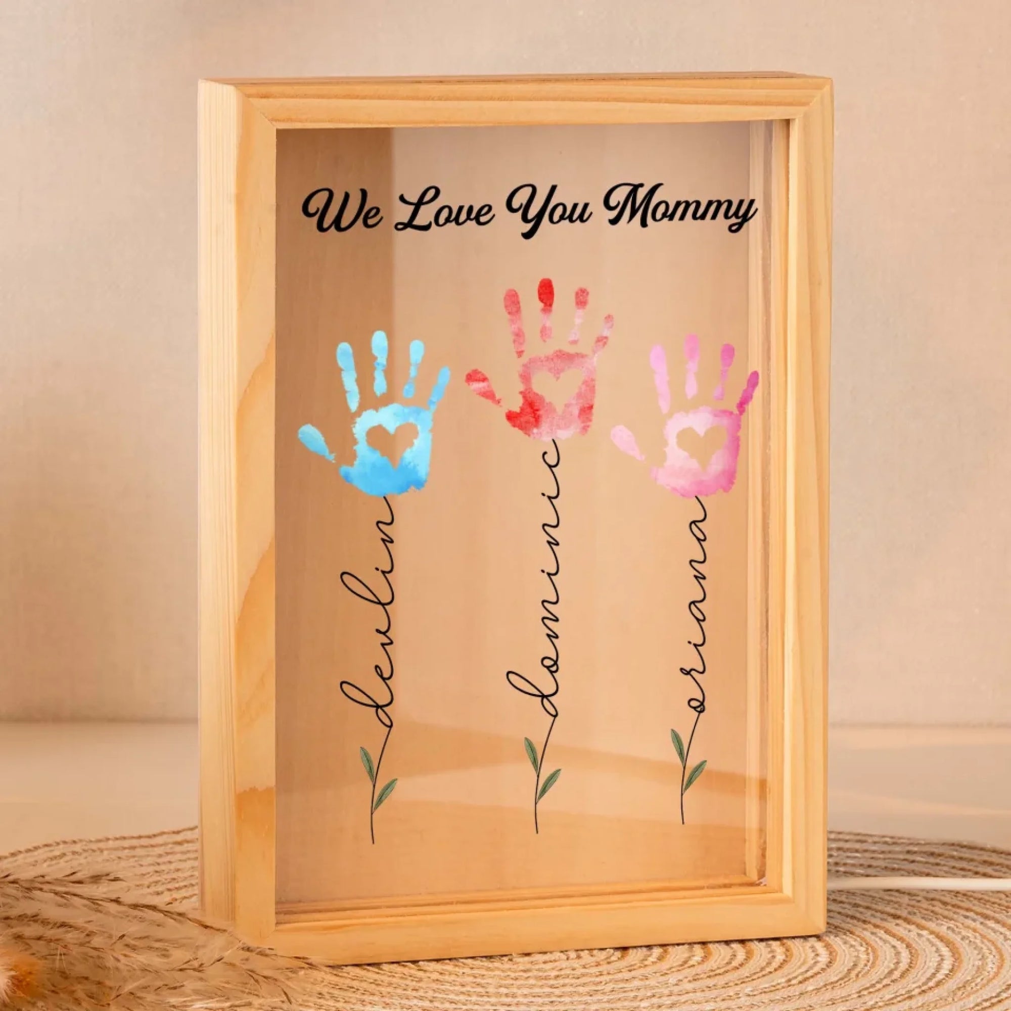 We Love You Mommy - Personalized Frame Light Box, Flower Handprint Custom Name, Gift for Mo/Grandma