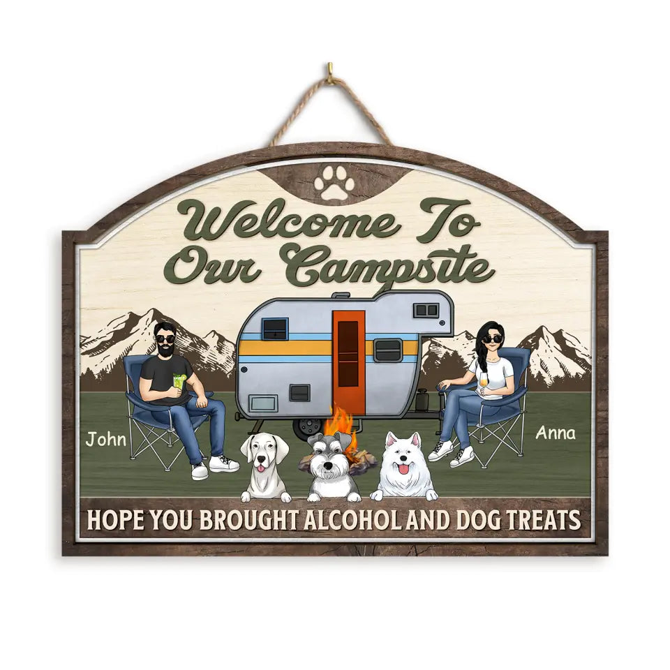 Welcome To Our Campsite Hope you Brought Alcohol And Dog Treats - Personalized Wood Sign