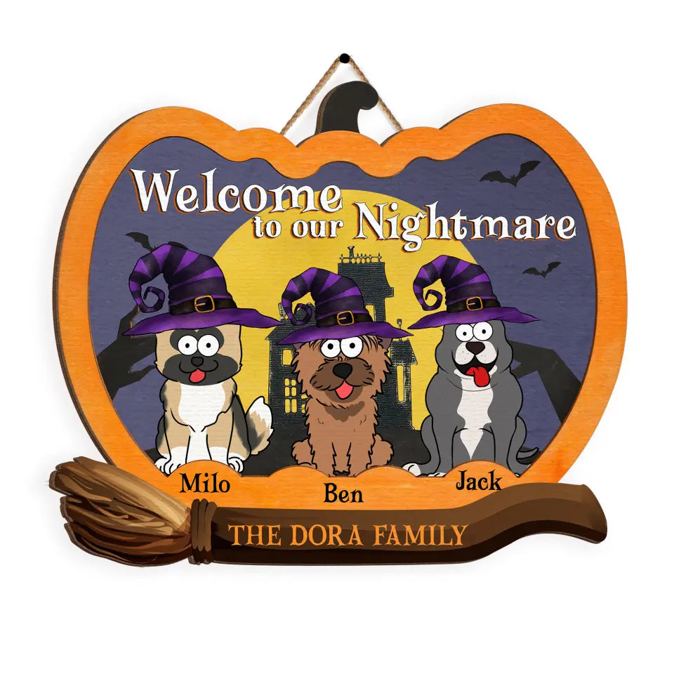 Welcome To Our Nightmare - Personalized Wood Sign, Gift For Halloween