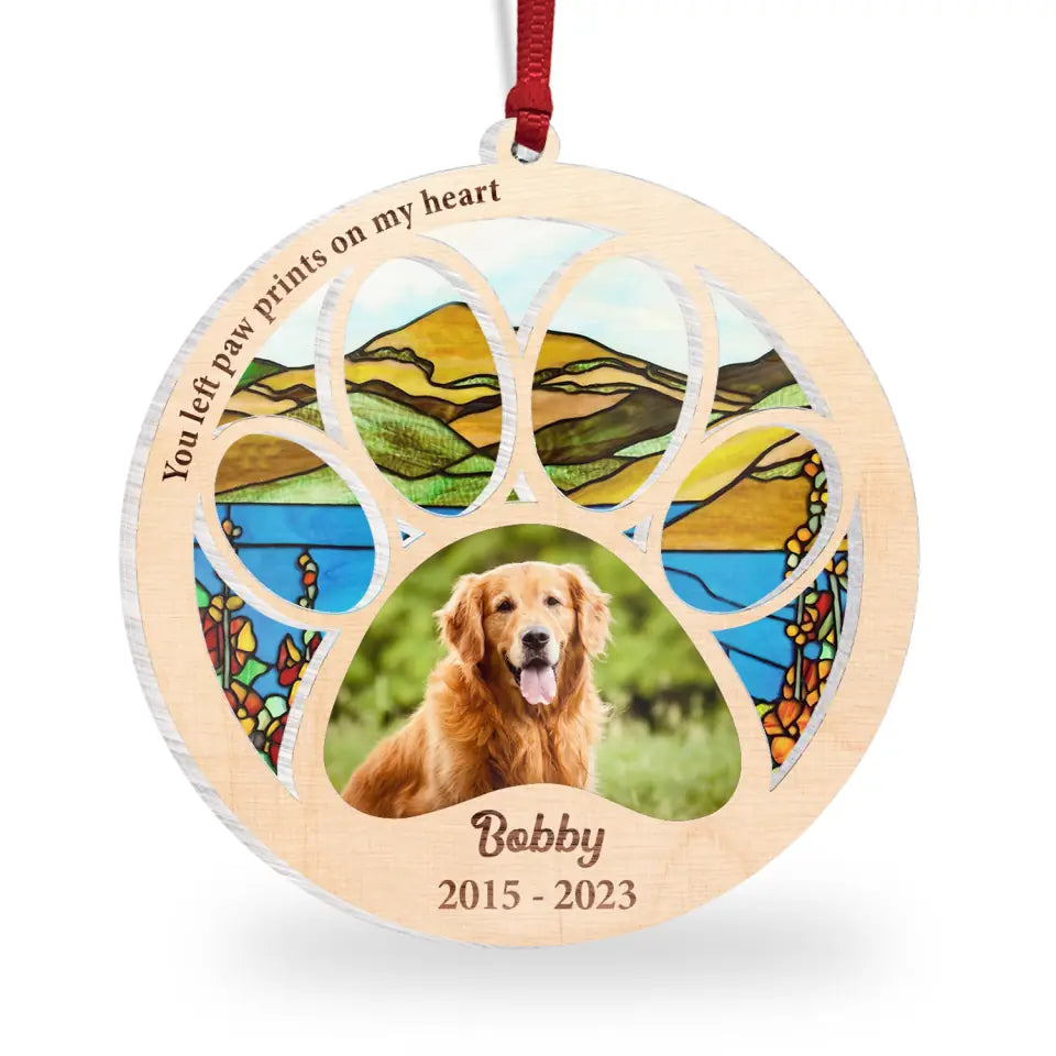 You Left Paw Prints On My Heart - Personalized Suncatcher Ornament 2 Layer, Memorial Gift