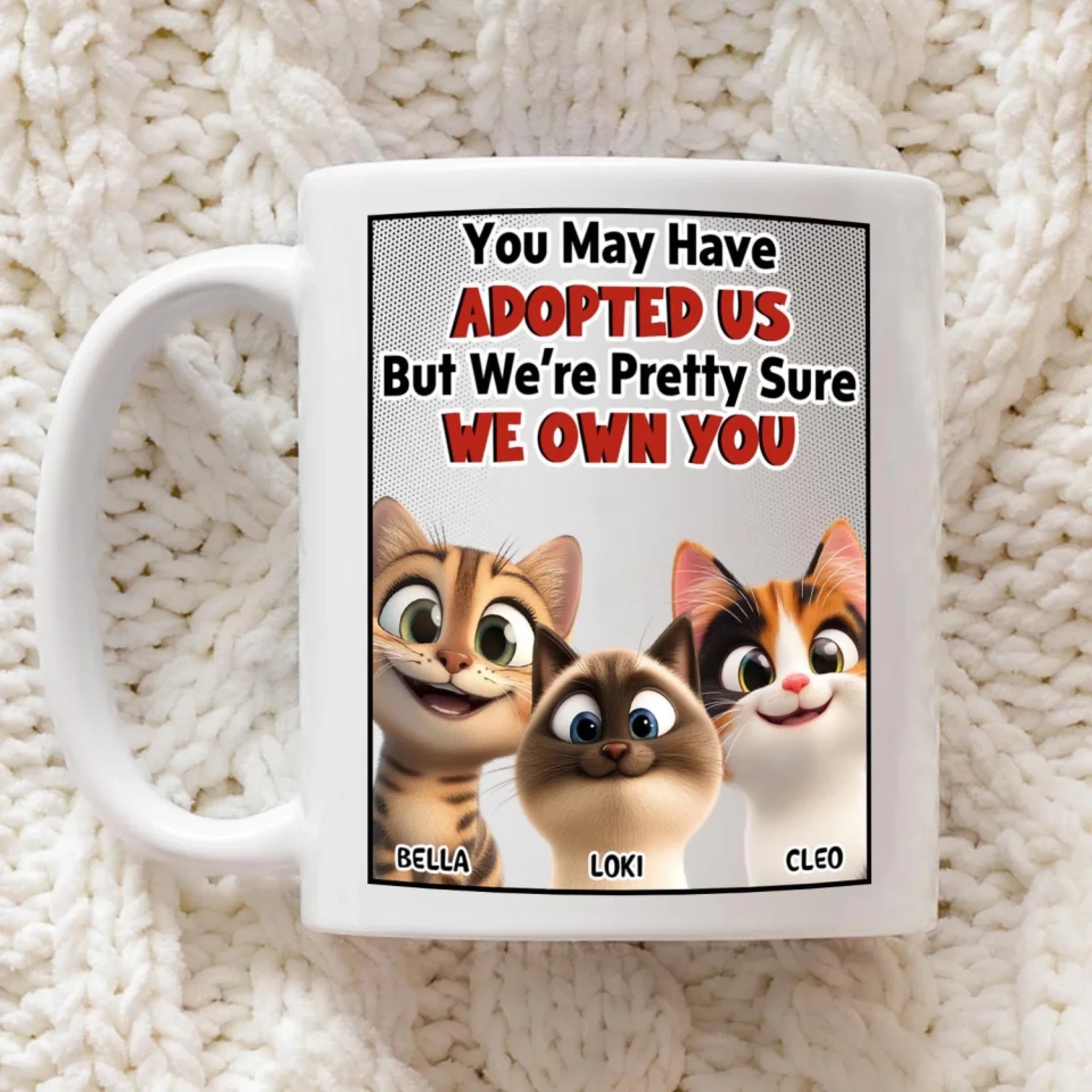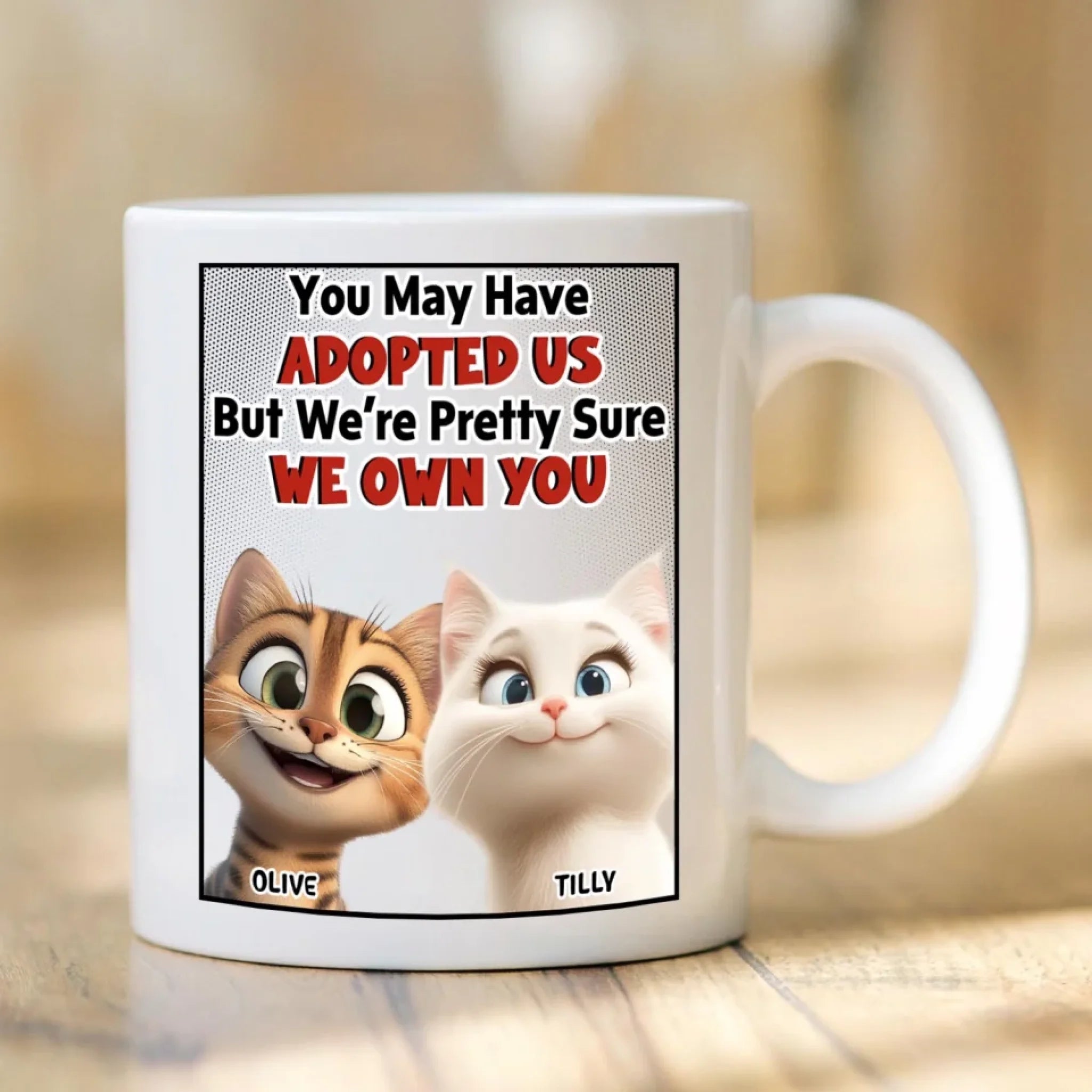 You May Have Adopted Us But Pretty Sure We Own You - Personalized Mug, Funny Coffee Mug For cat Lover, Cat Mom Gift, Cat Dad Gift