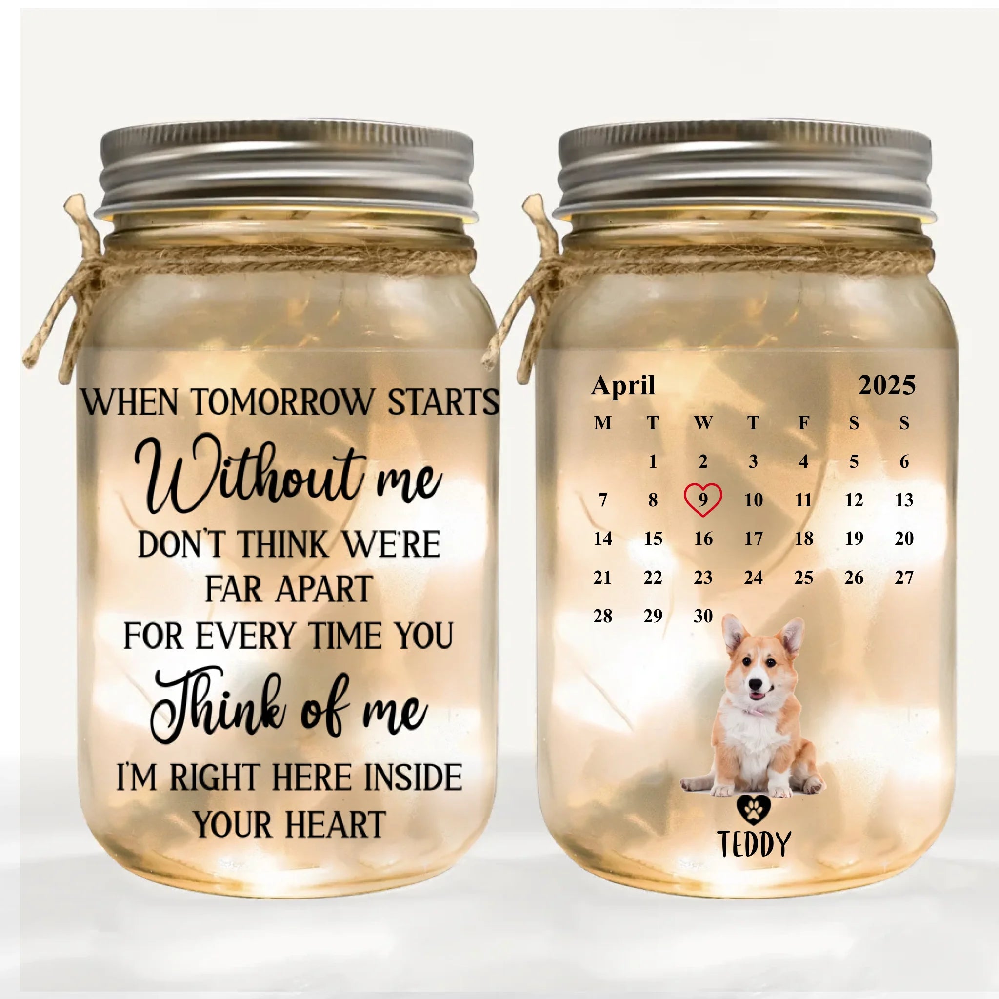 I'm Right Here Inside Your Heart - Personalized Mason Jar Light, Memorial Gift For Loss Of Pet