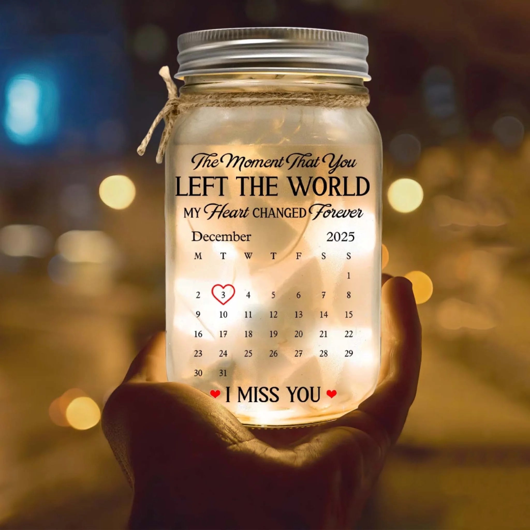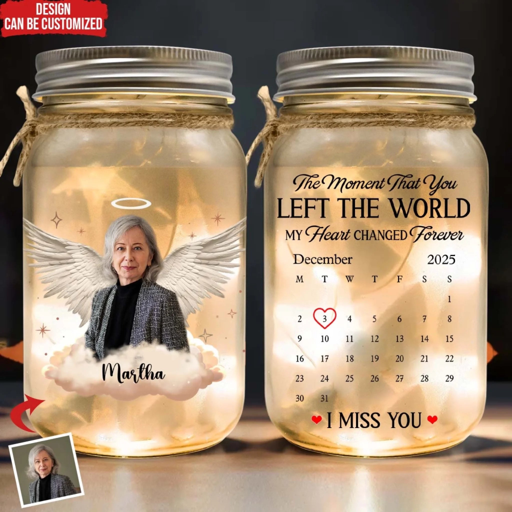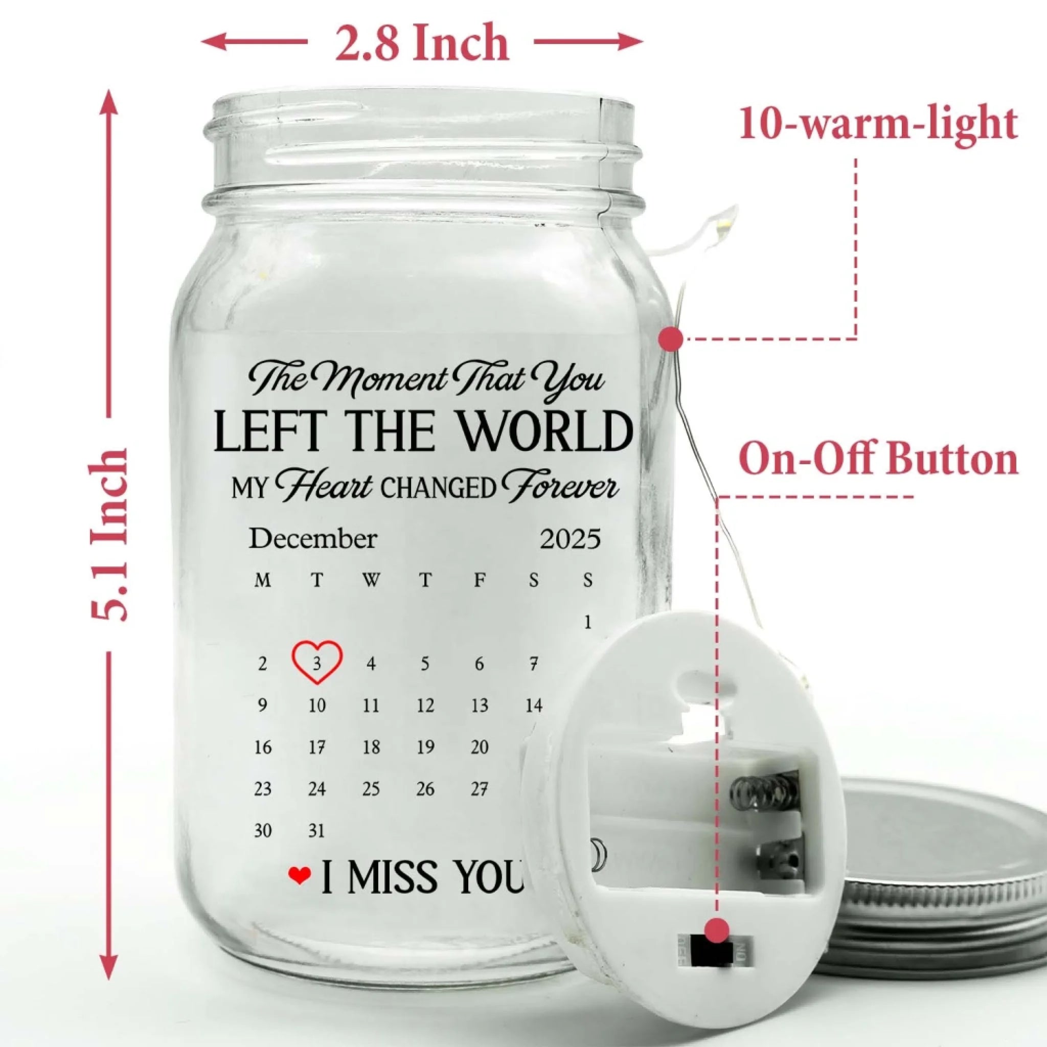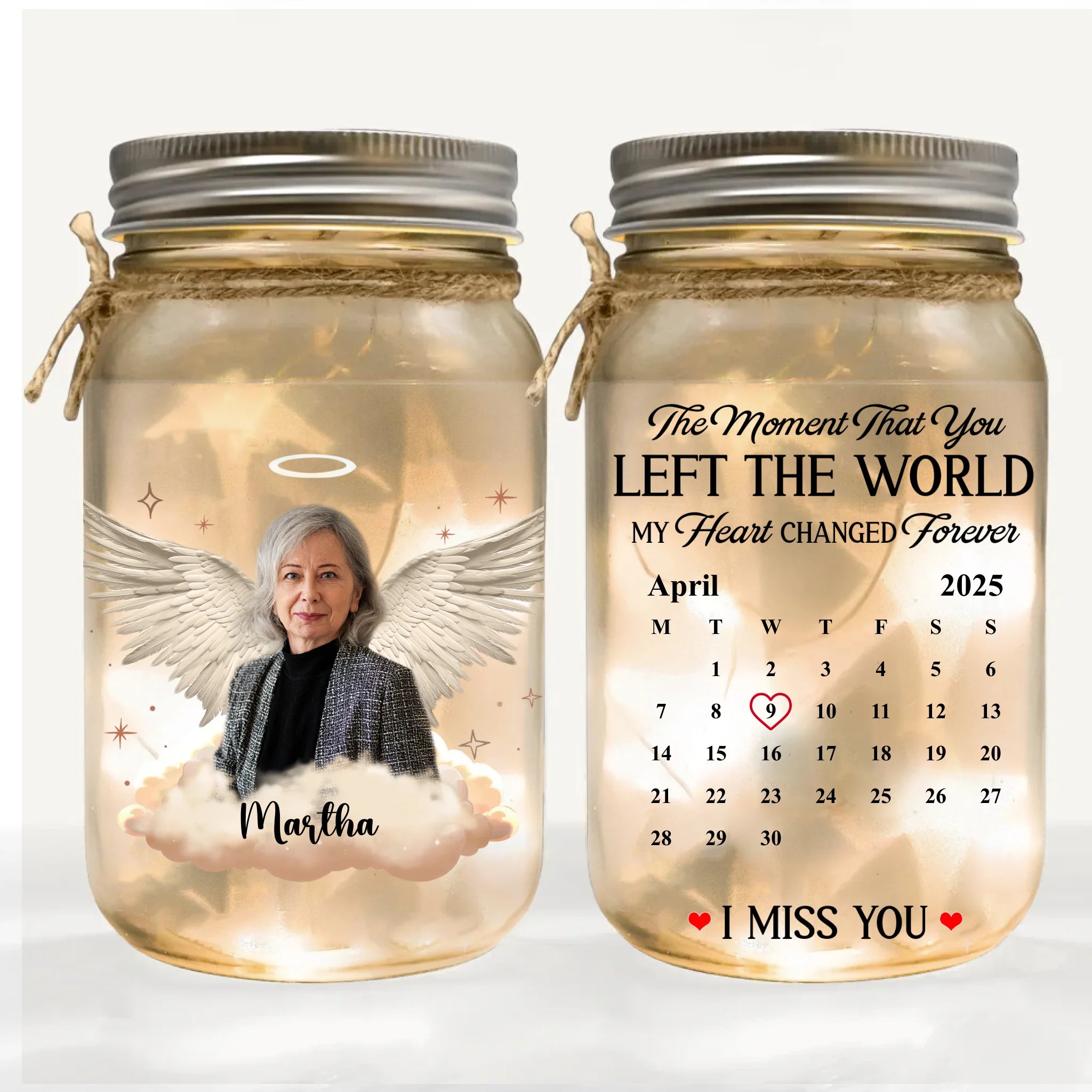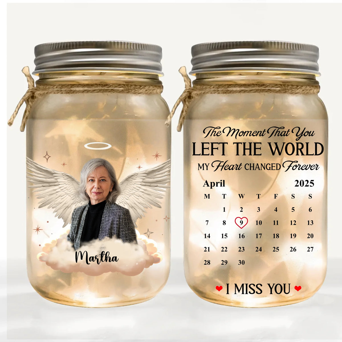 The Moment That You Left The World My Heart Changed Forever - Personalized Mason Jar Light, Memorial Gift