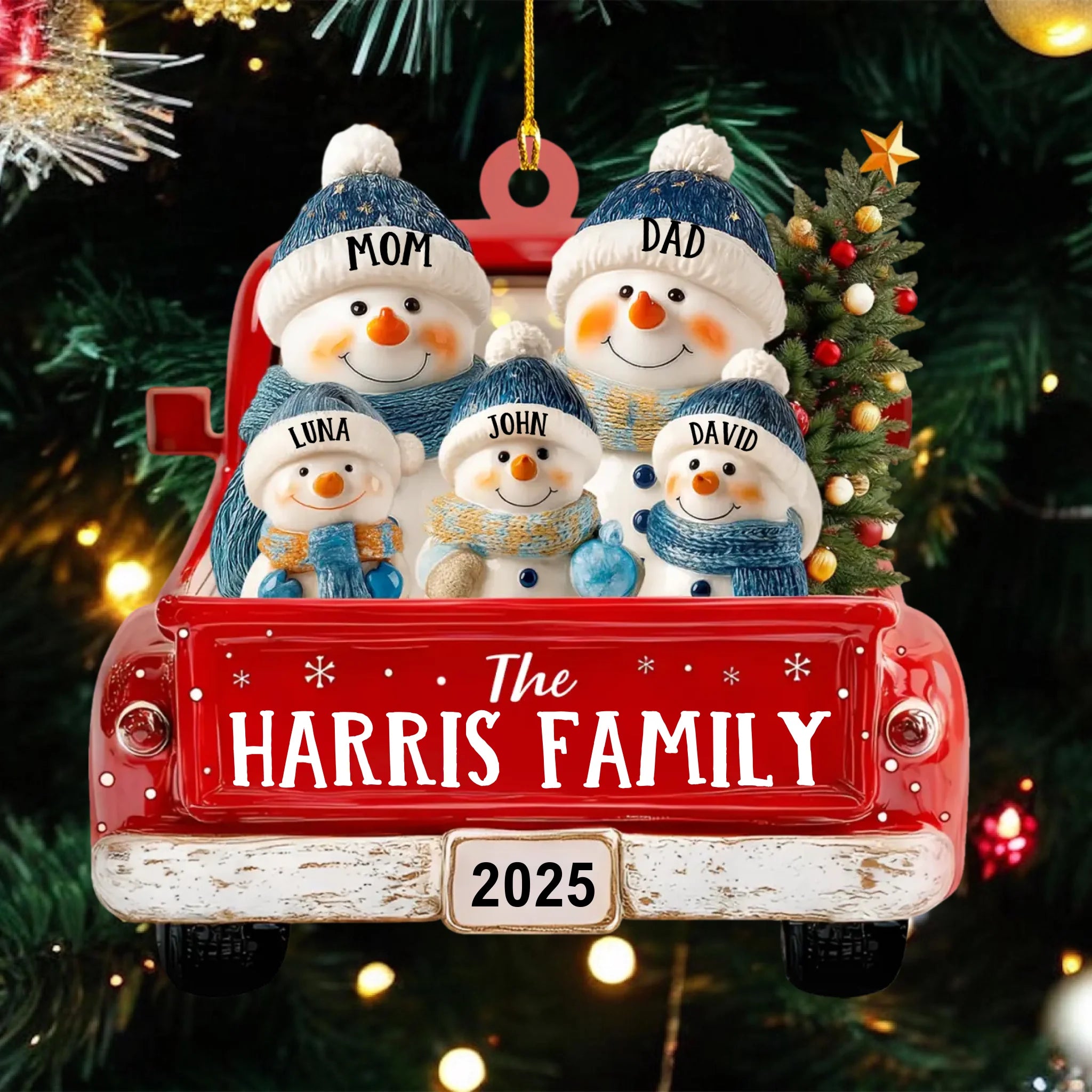 Red Truck Christmas With Snowman Family - Personalized Acrylic Ornament, Gift For Family, Christmas Tree Decor