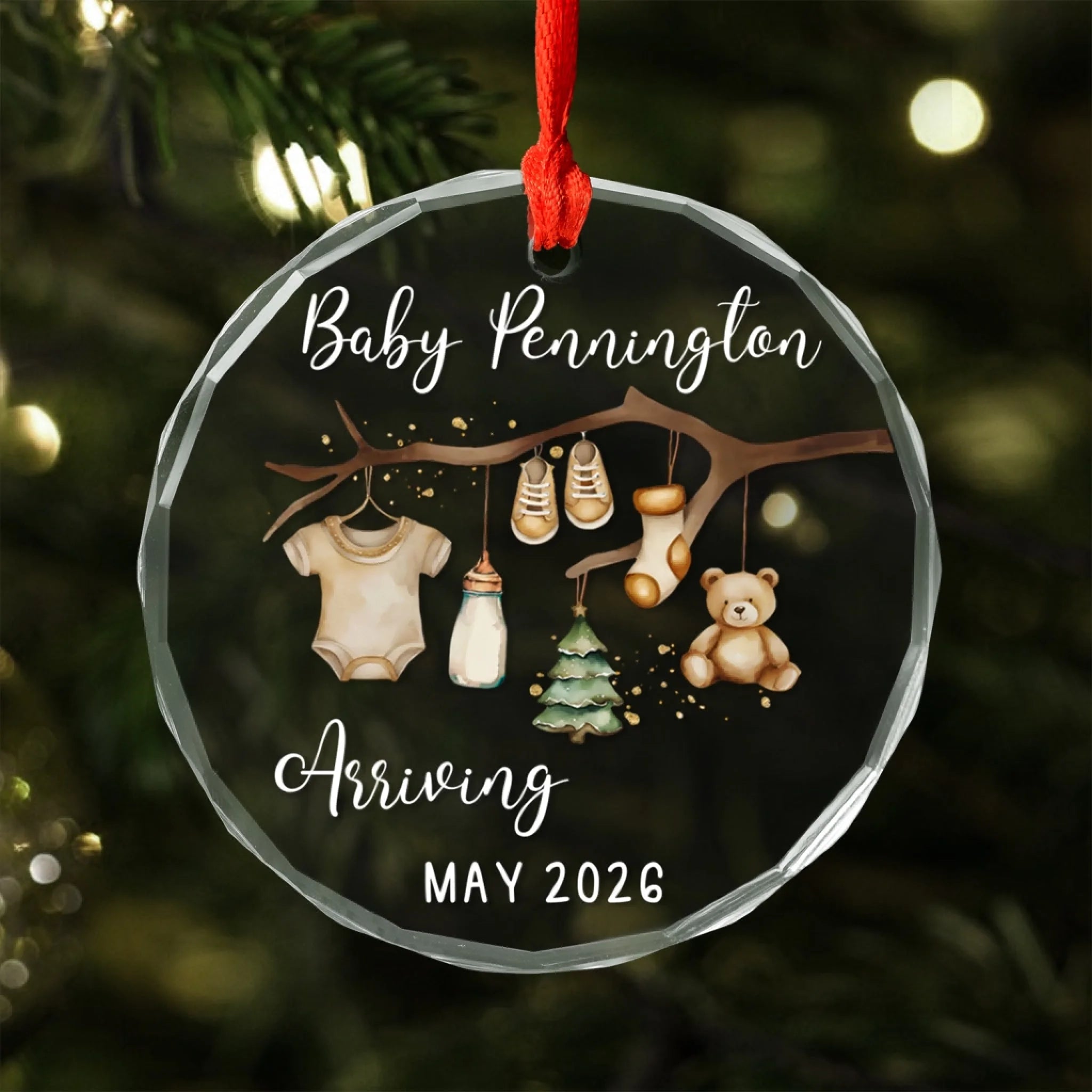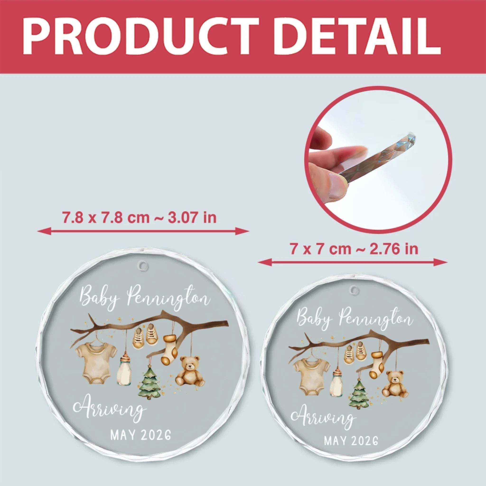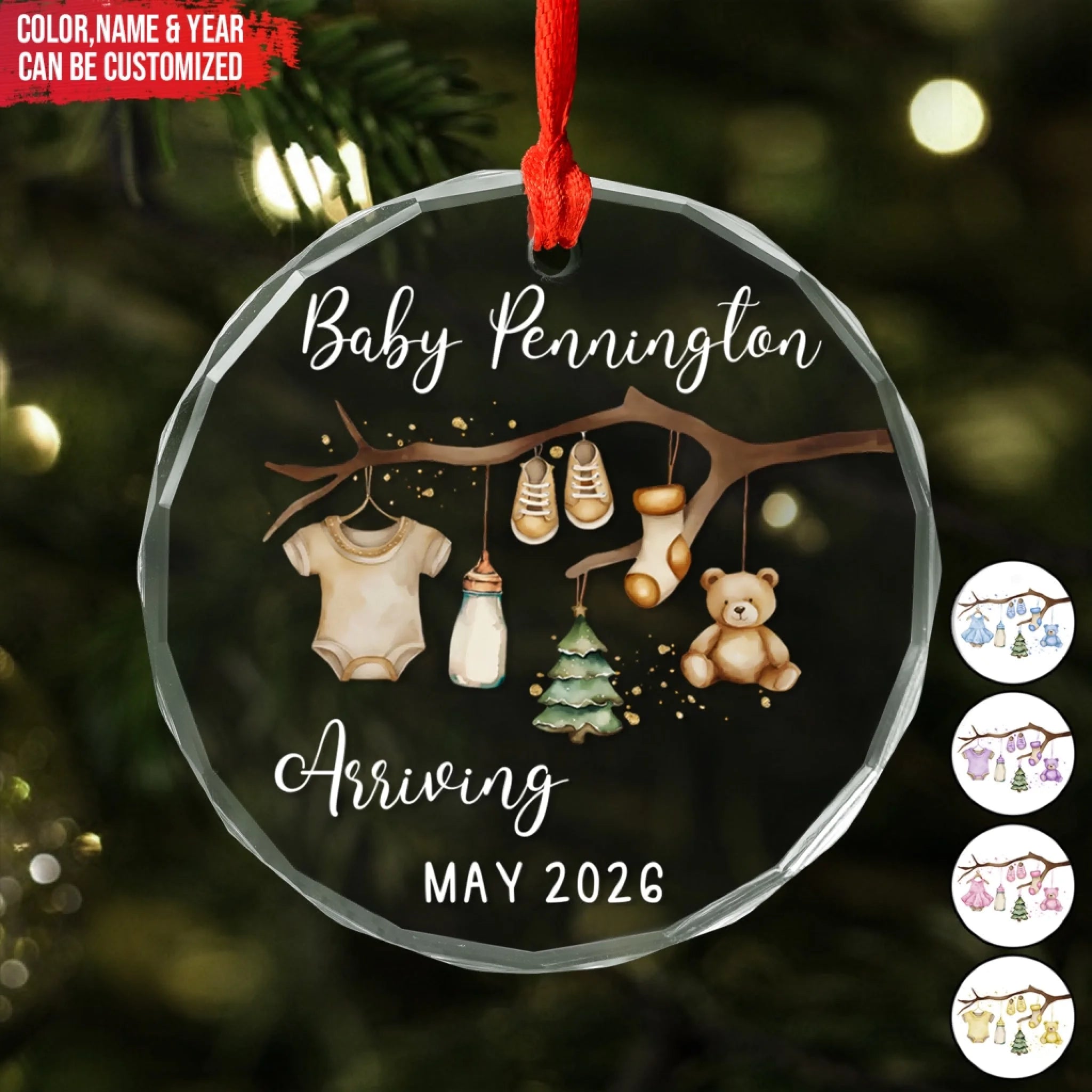 Baby Arriving - Personalized Glass Ornament, Baby's First Christmas Gift, Pregnancy Reveal Gift, Baby Shower Ornament