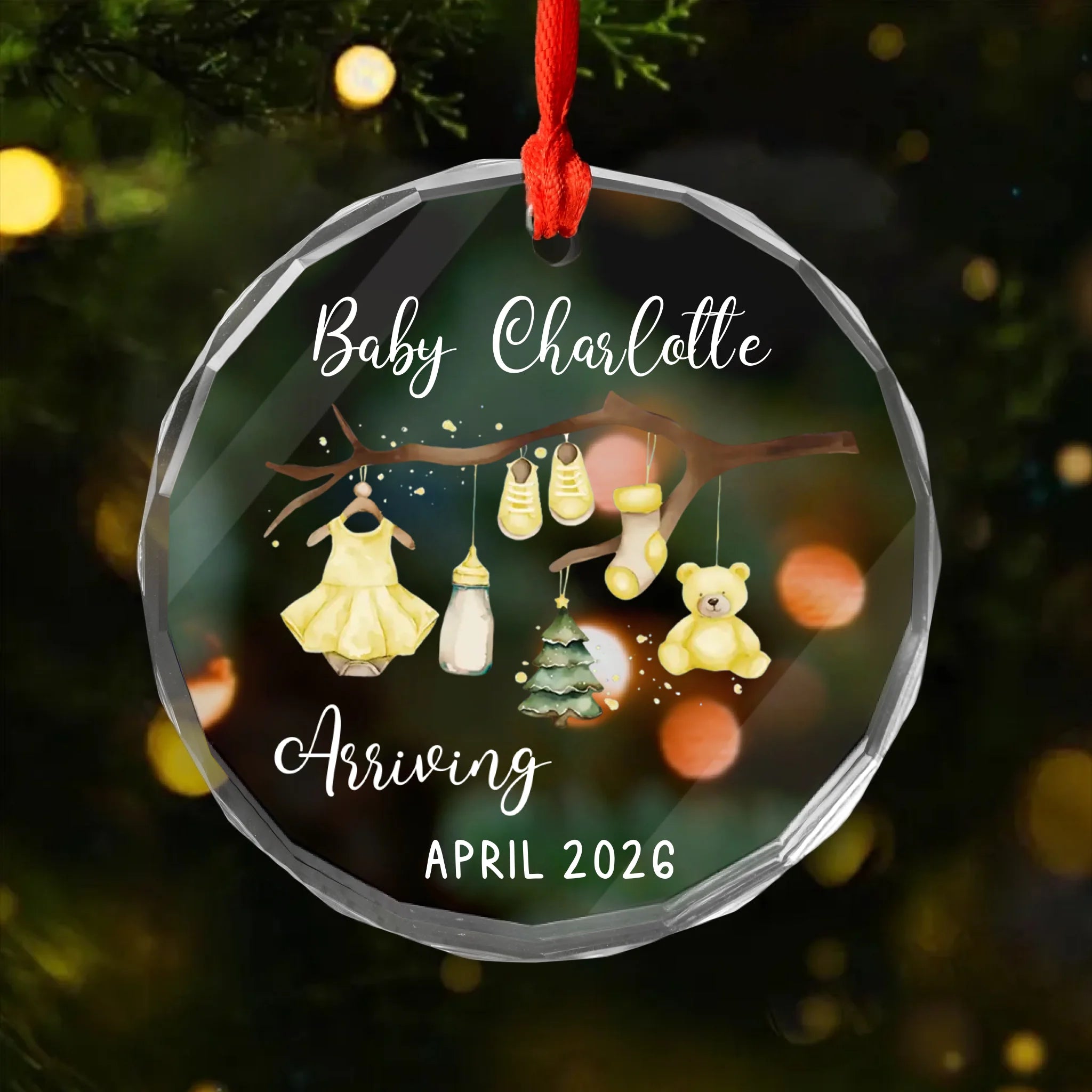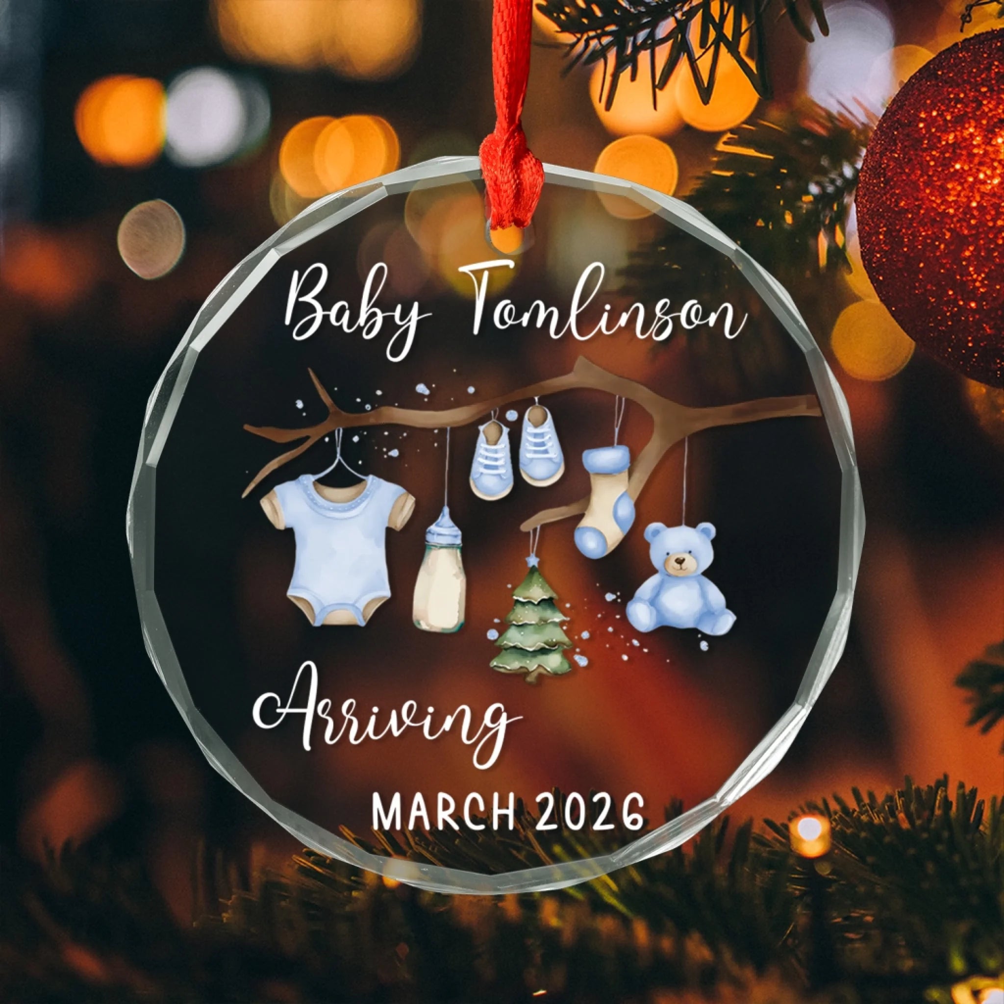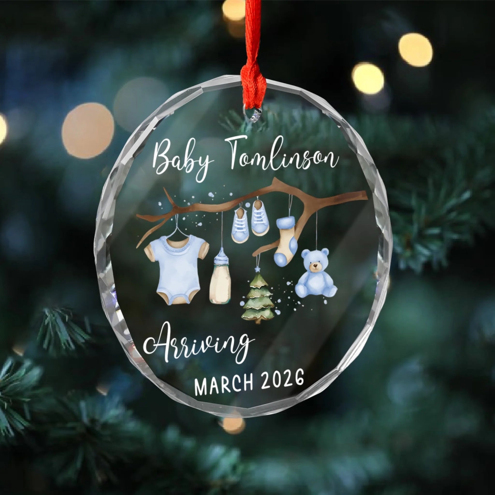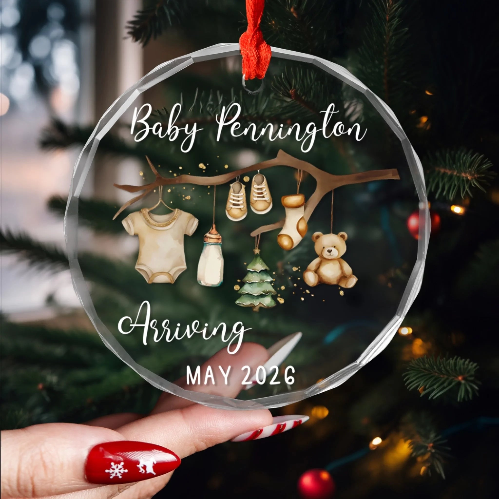 Baby Arriving - Personalized Glass Ornament, Baby's First Christmas Gift, Pregnancy Reveal Gift, Baby Shower Ornament