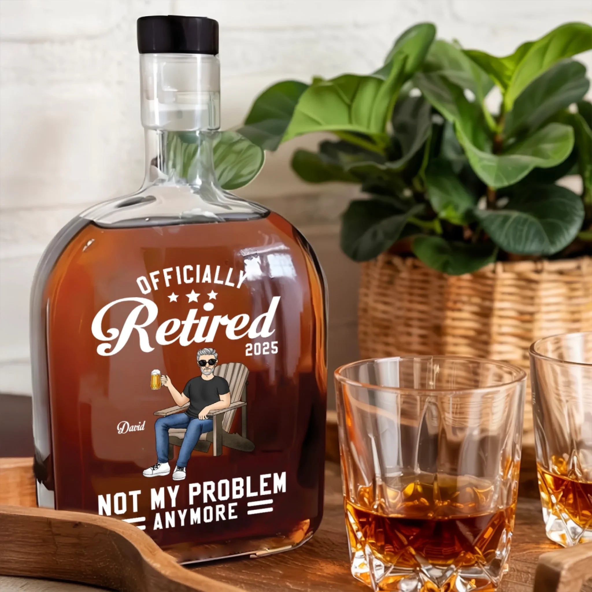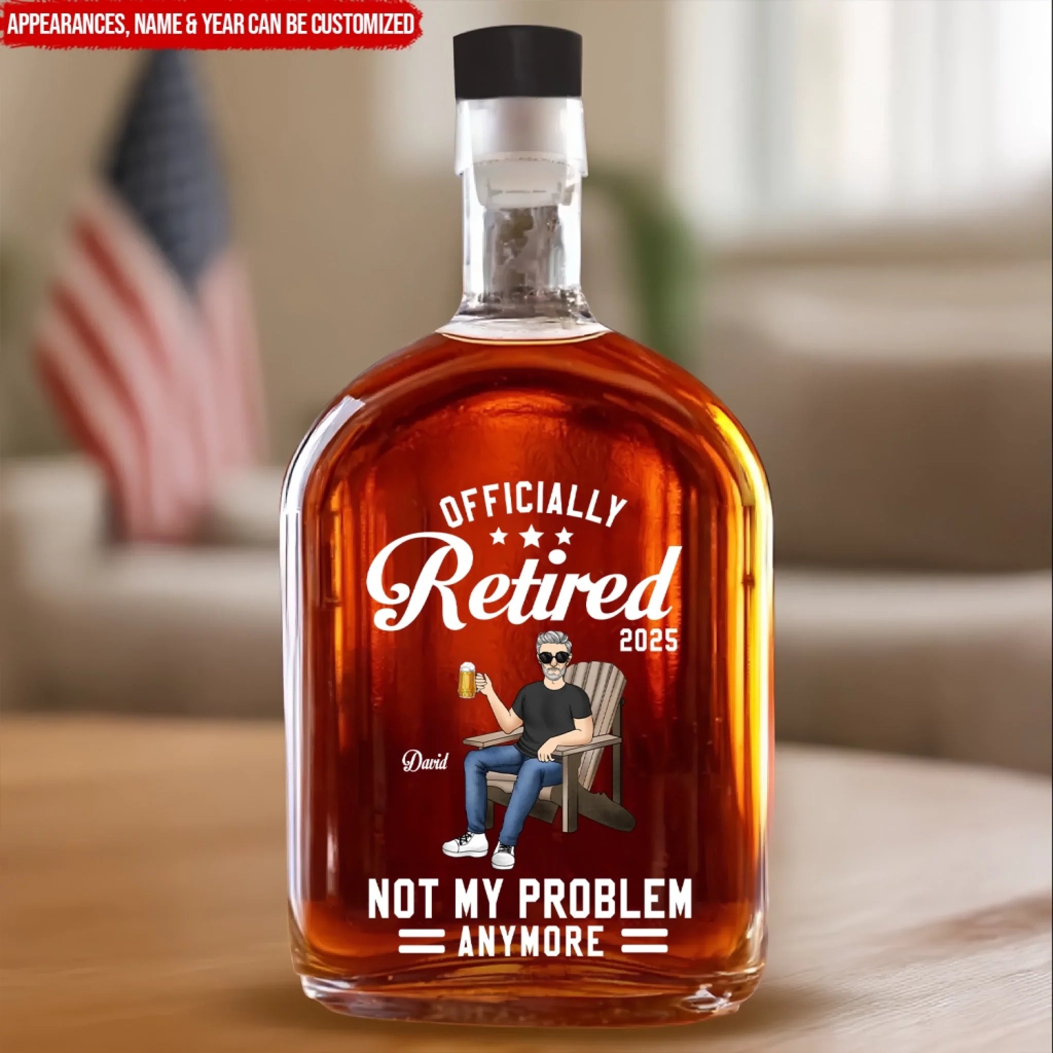 Officially Retired - Personalized Whiskey Bottle, Retirement Gift