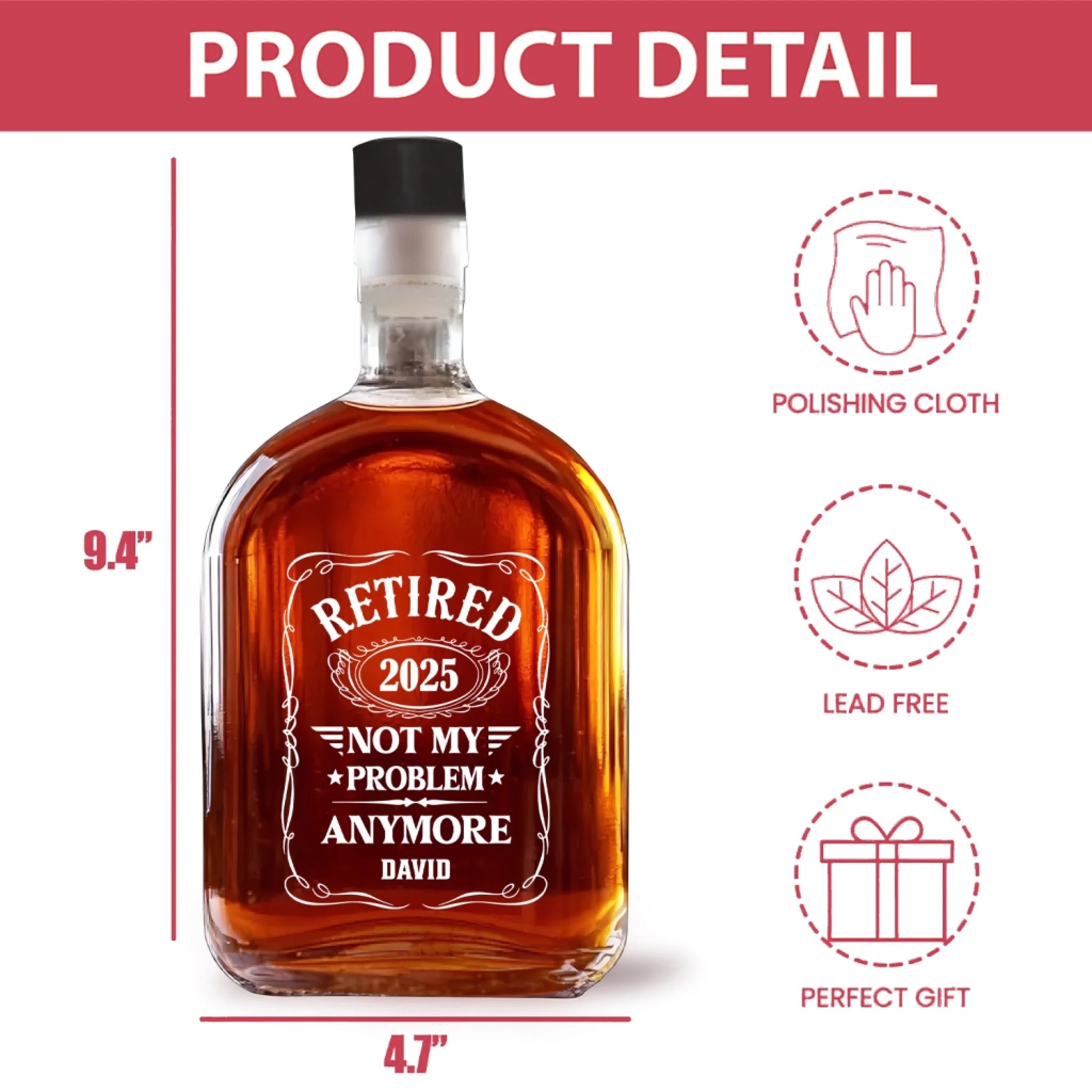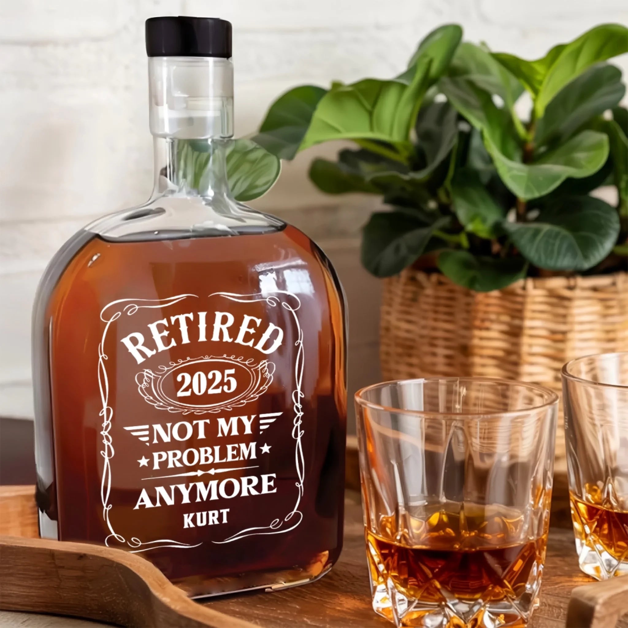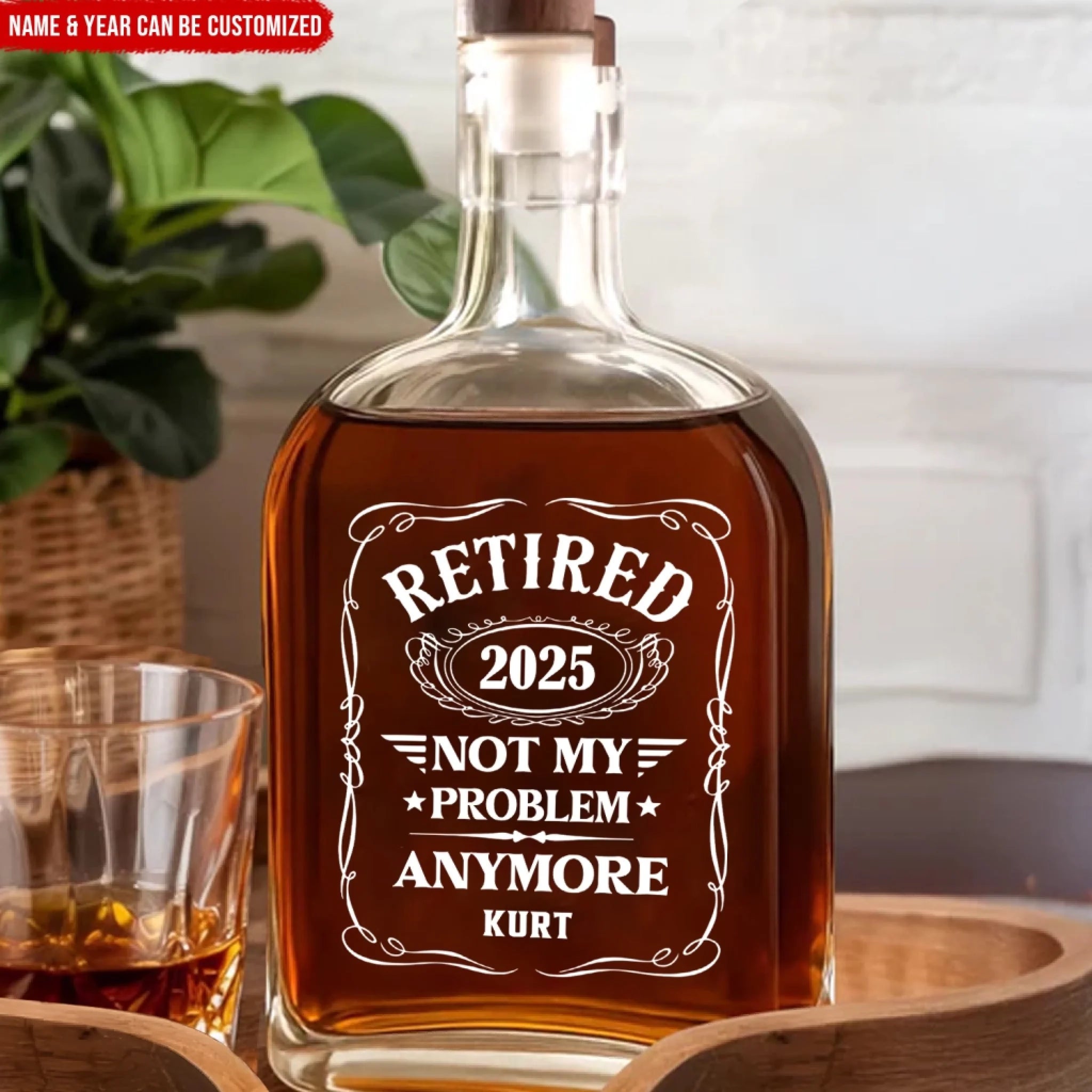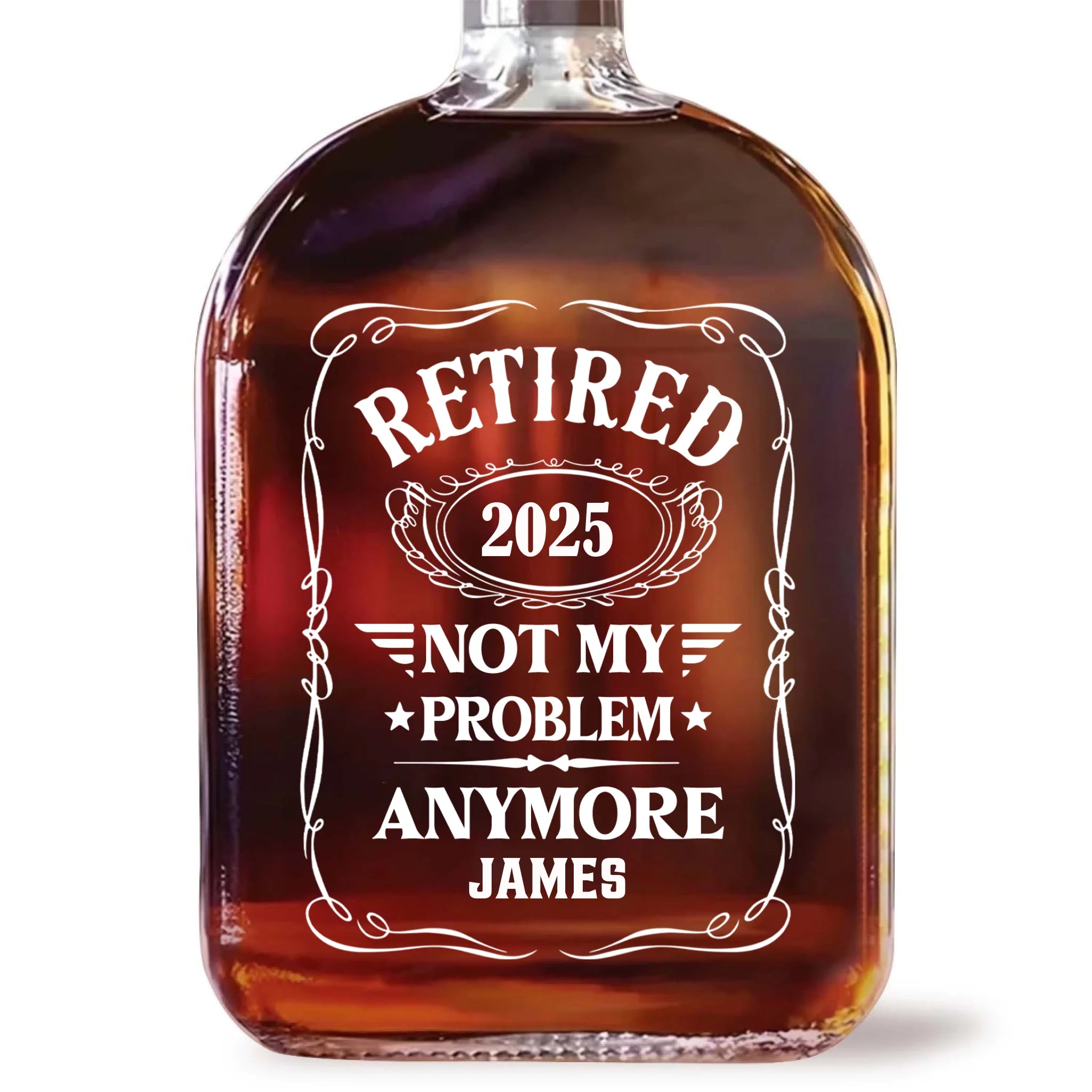 Retired Not My Problem Anymore - Personalized Whiskey Bottle, Retirement Gift For Him