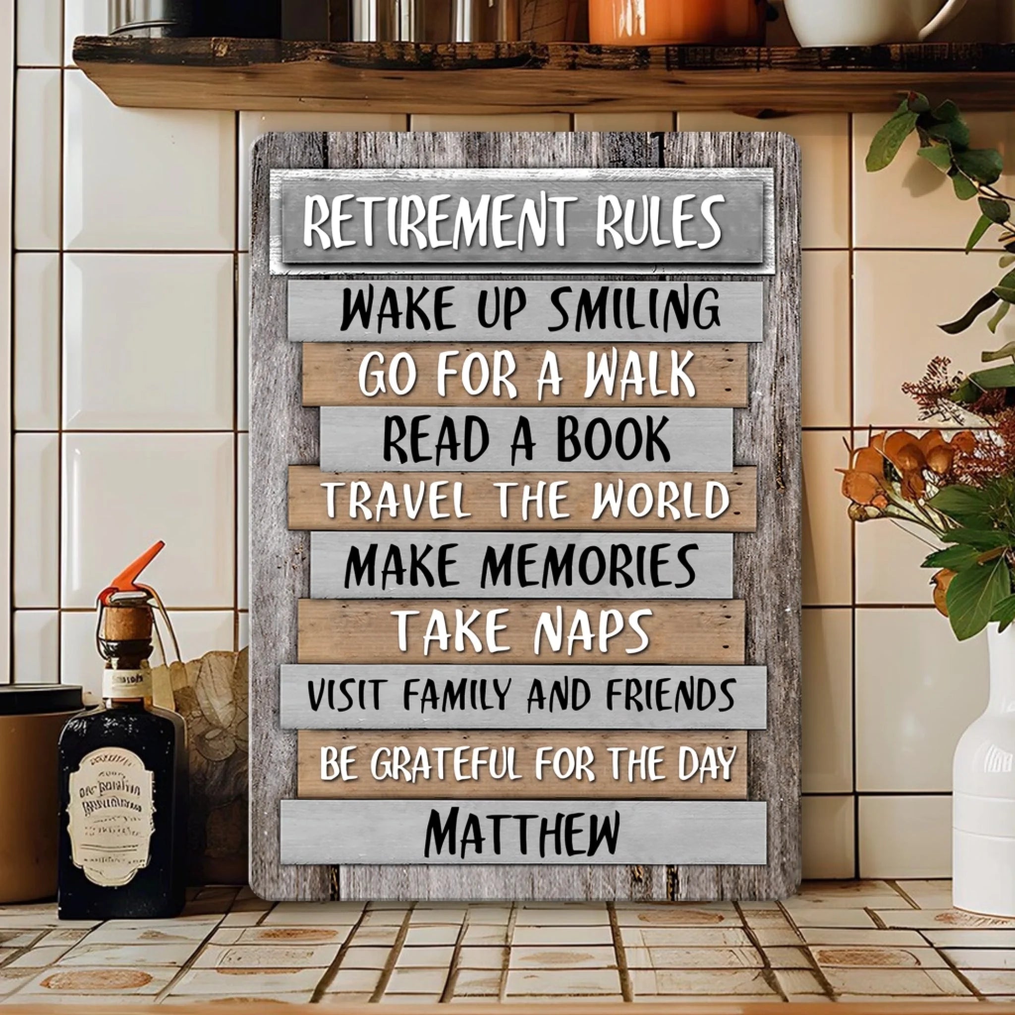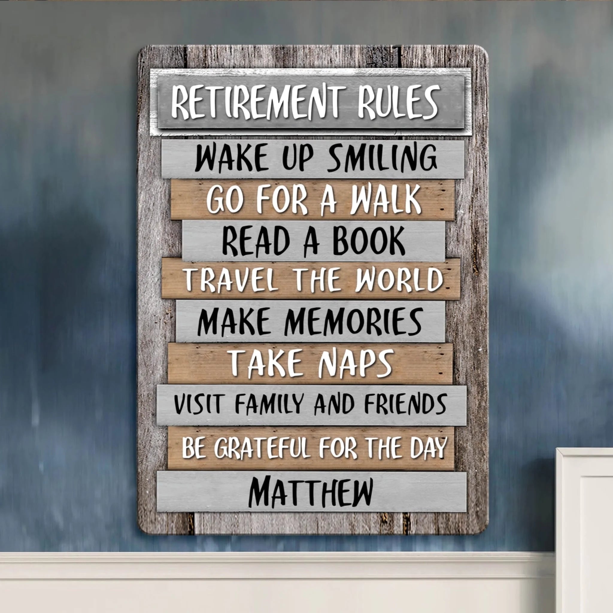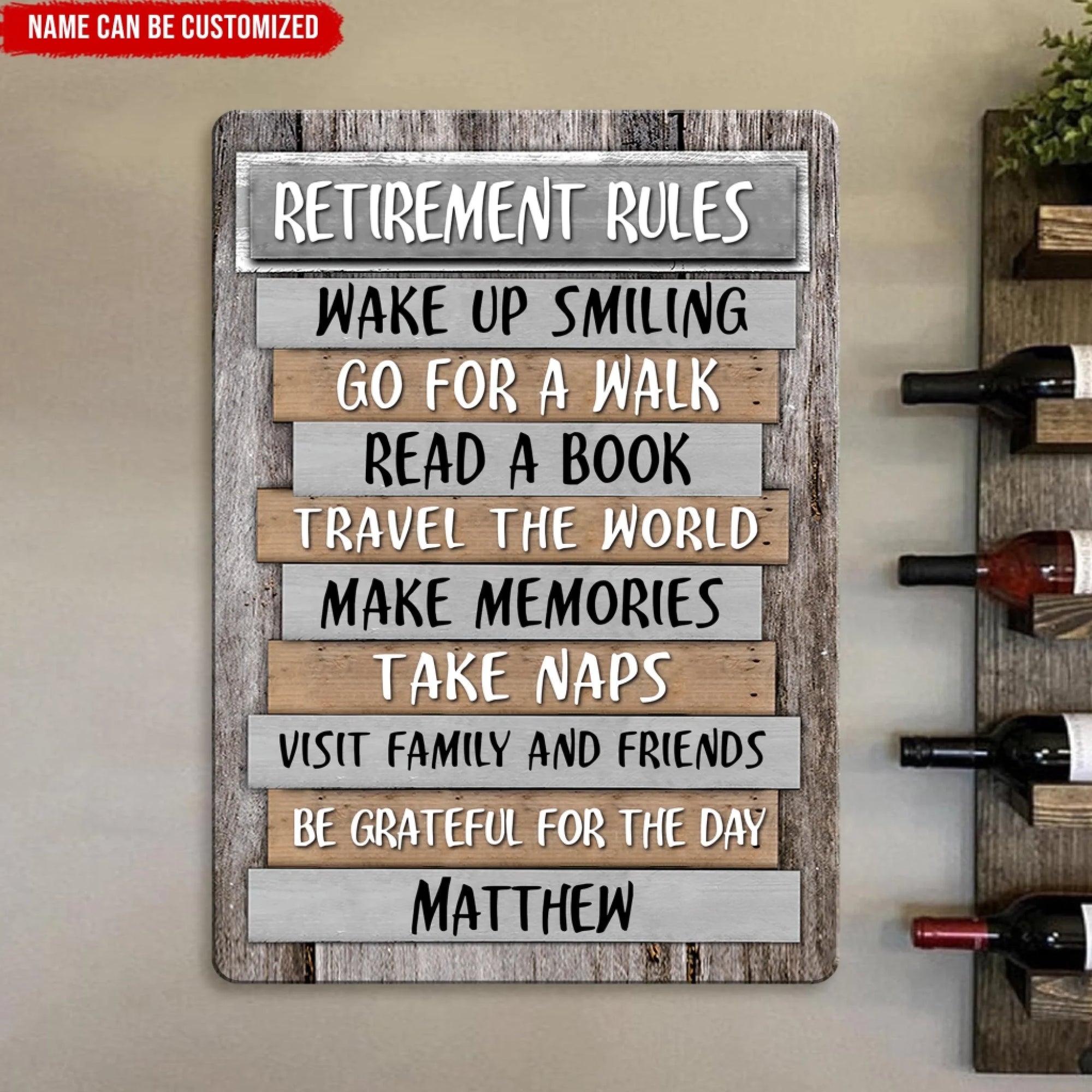 Retirement Rules Be Grateful For The Day - Personalized Metal Sign