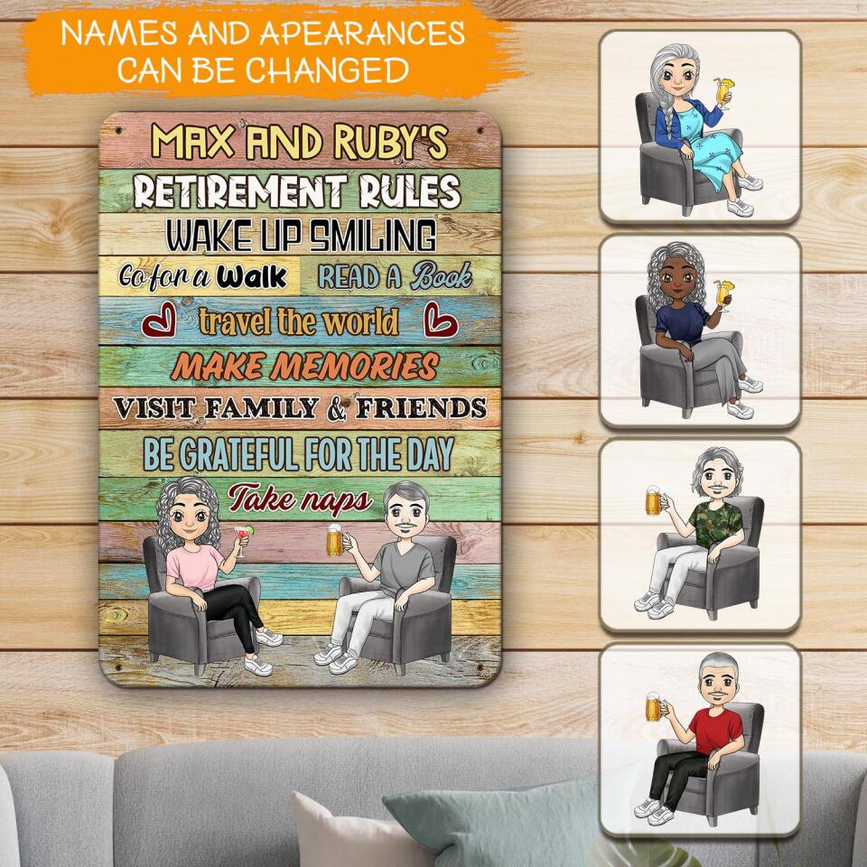 Retirement Rules - Personalized Metal Sign - Retirement, Funny Gift For Couple